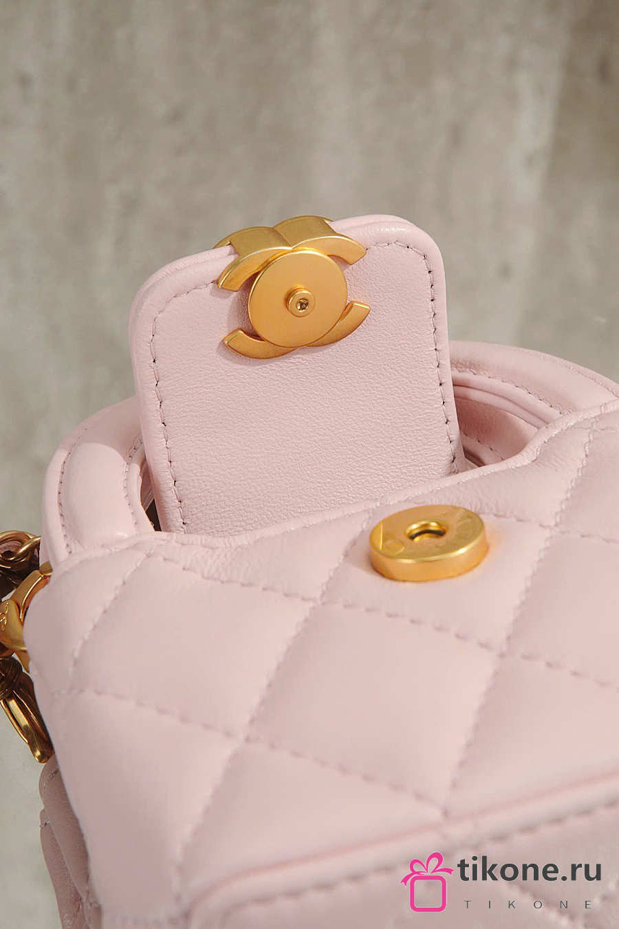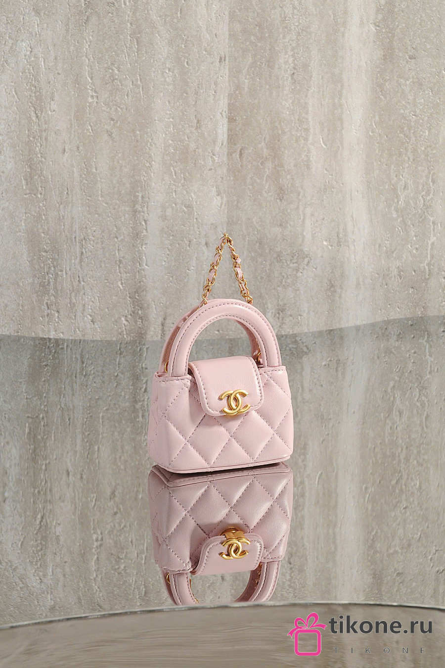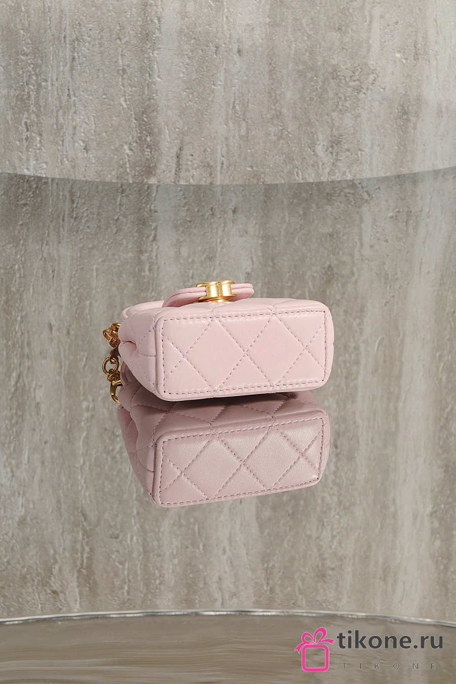 Chanel Mini Bag Charm Shiny Lambskin & Gold Tone Metal Light Pink - 11.5x10x4cm