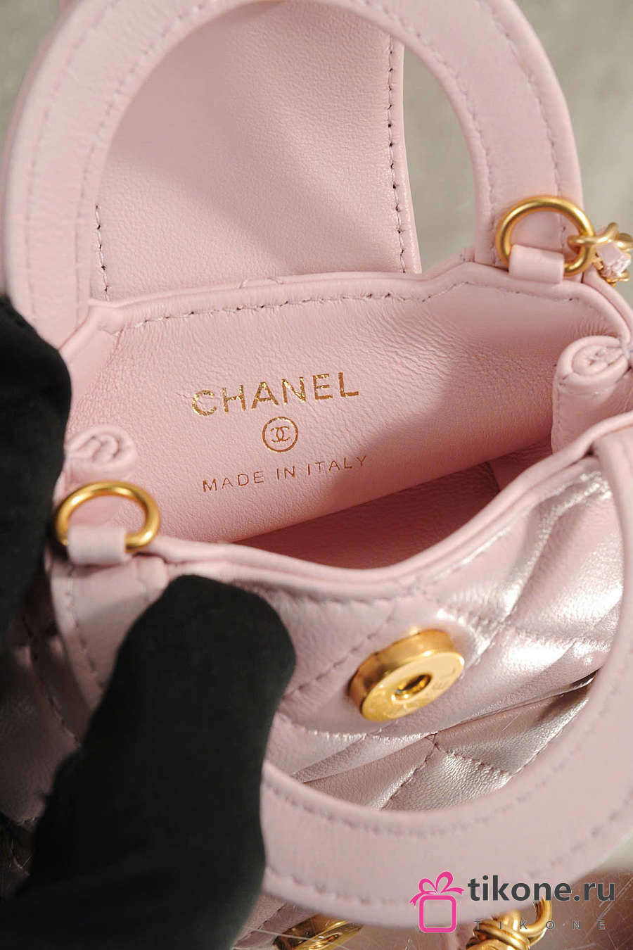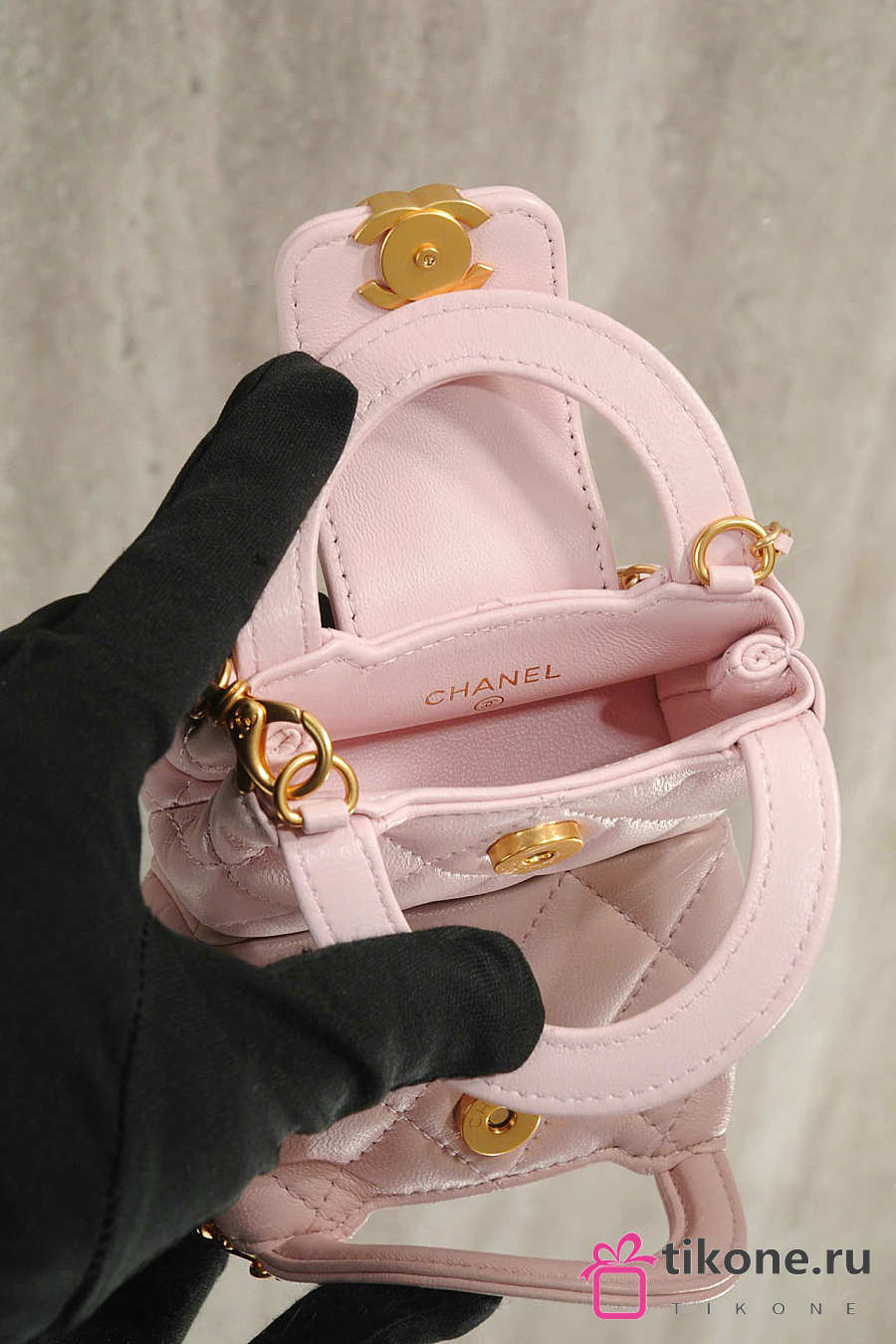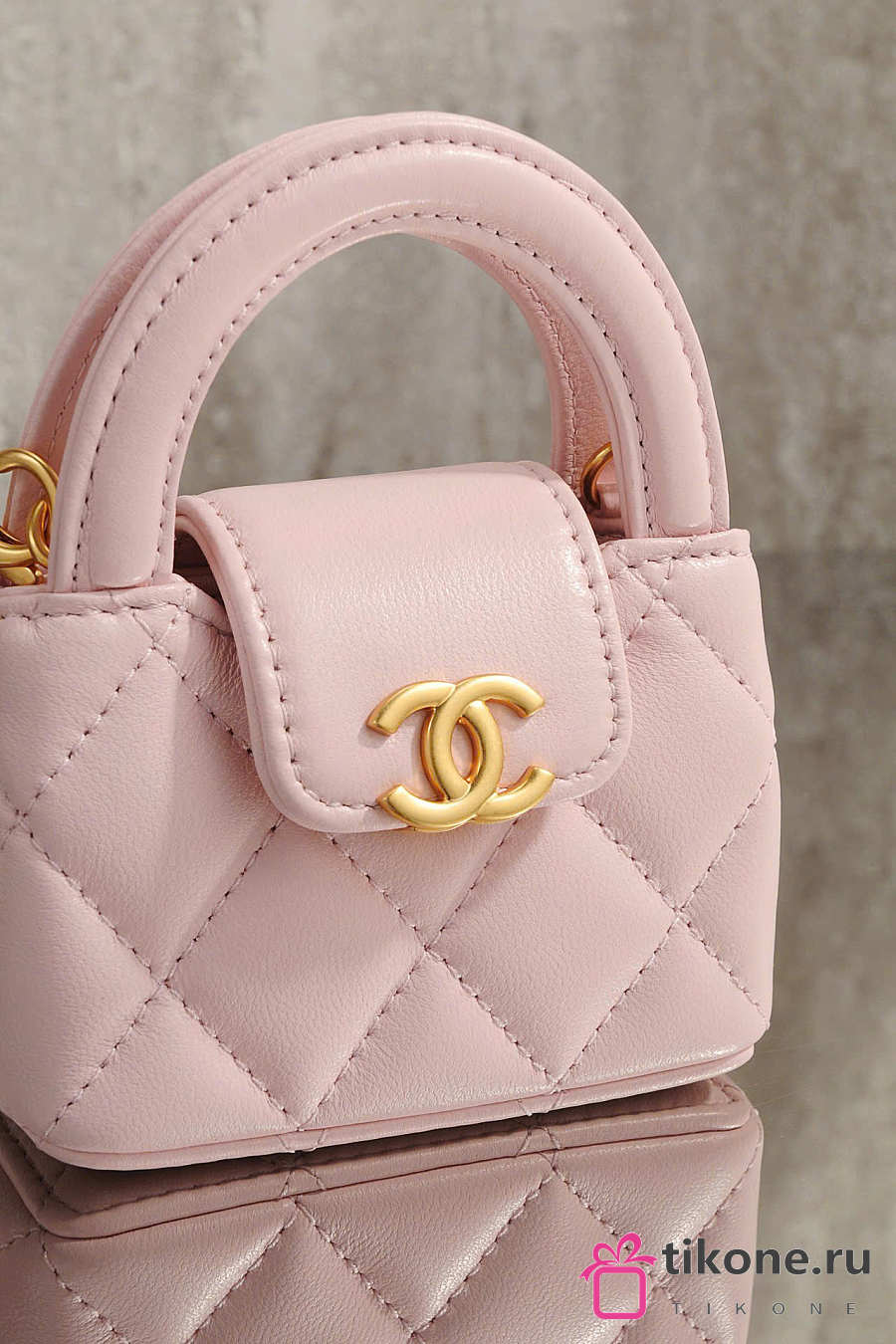 Chanel Mini Bag Charm Shiny Lambskin & Gold Tone Metal Light Pink - 11.5x10x4cm