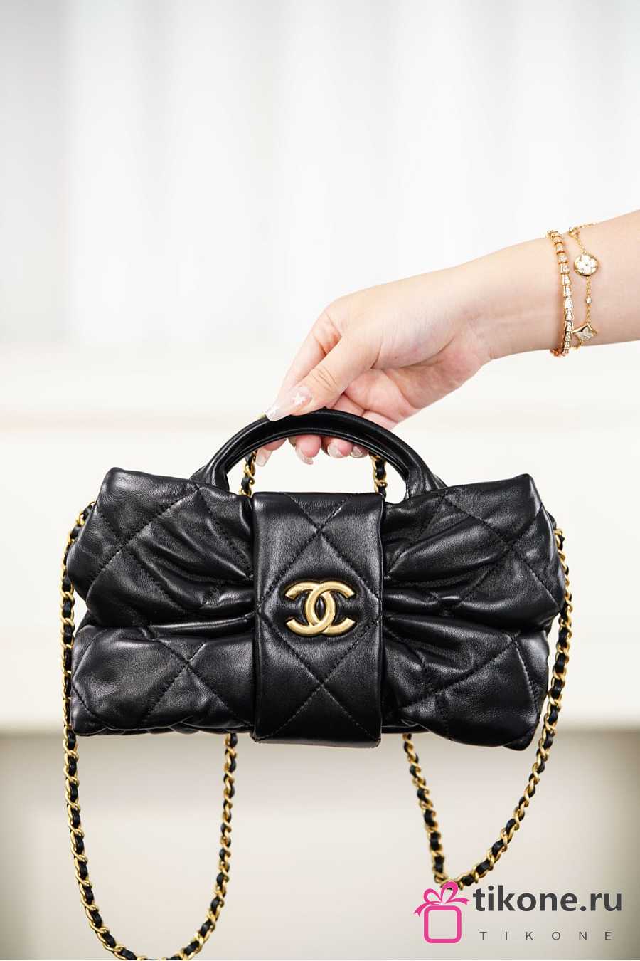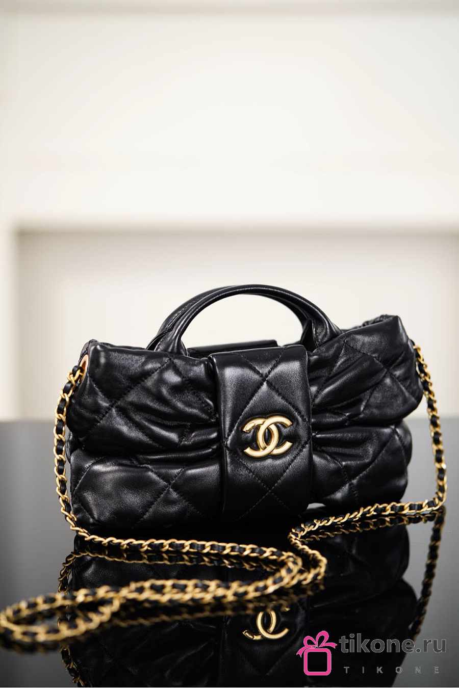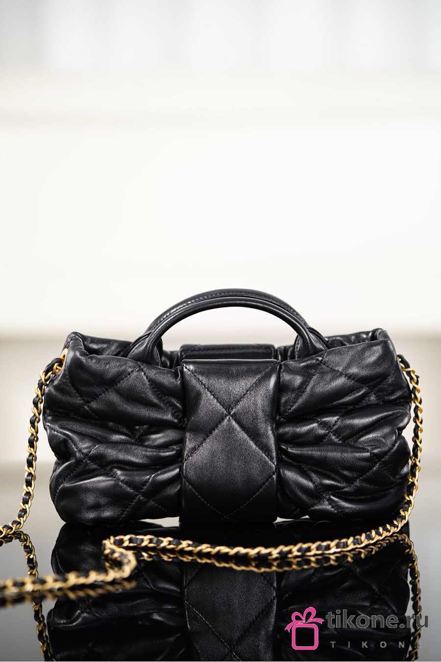 Chanel Mini Bow Bag Shiny Lambskin & Gold Tone Metal Black - 26x18x5cm