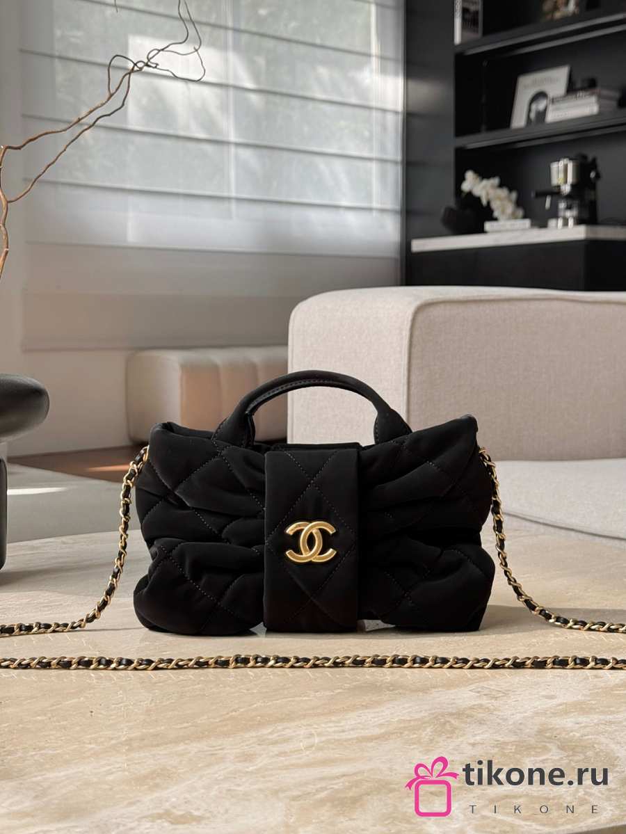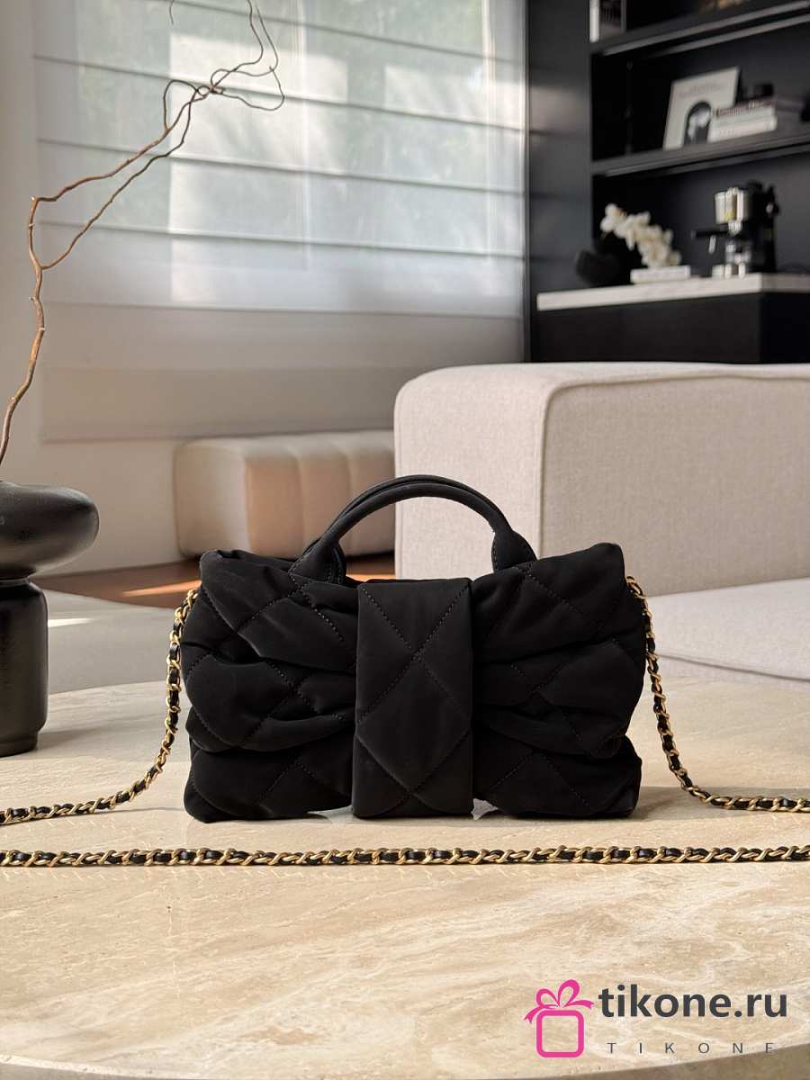 Chanel Mini Bow Bag Velvet Effect Nylon & Gold Tone Metal Black - 26x18x5cm