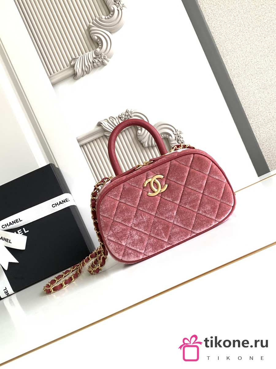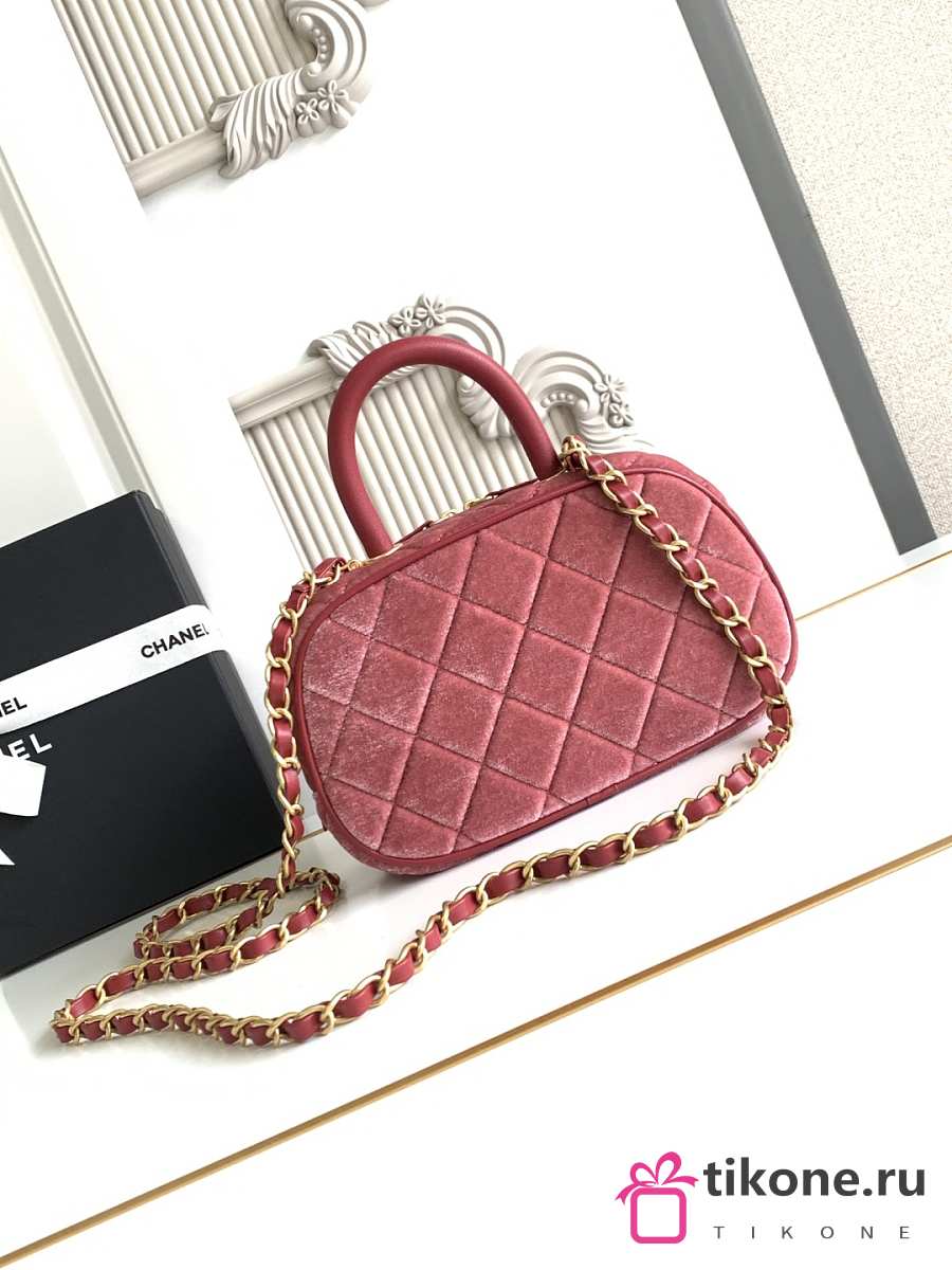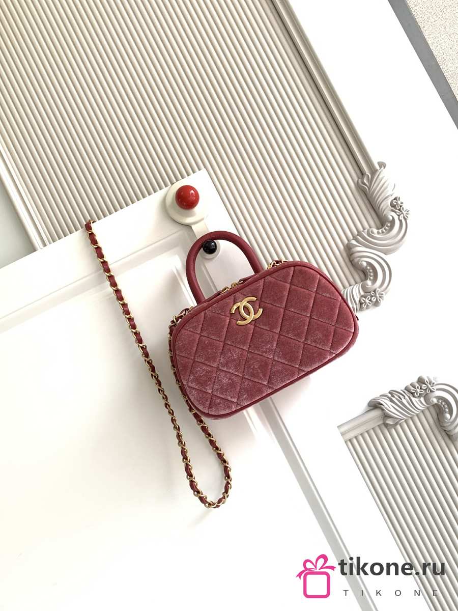 Chanel Mini Bowling Bag Velvet Calfskin & Gold Tone Metal Burgundy - 20x11.5x8.5cm