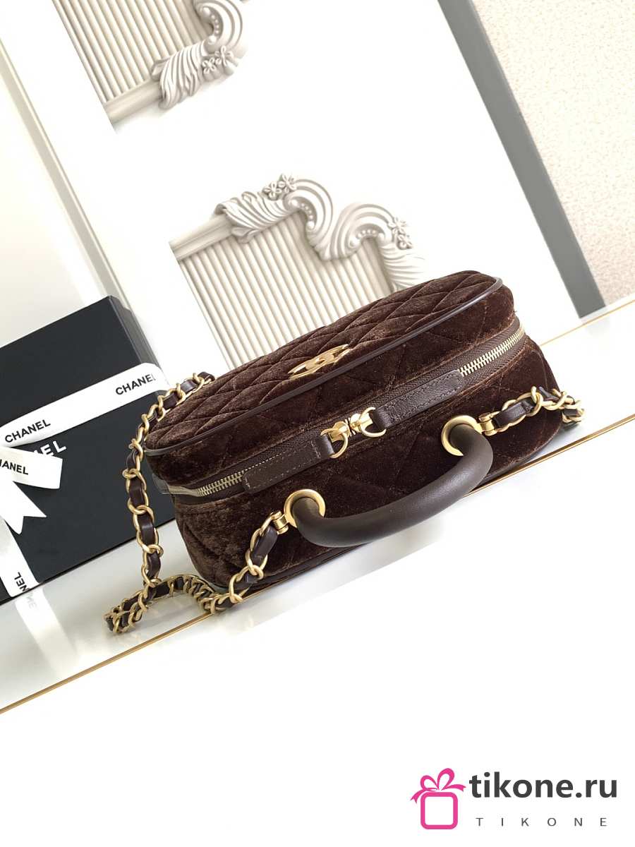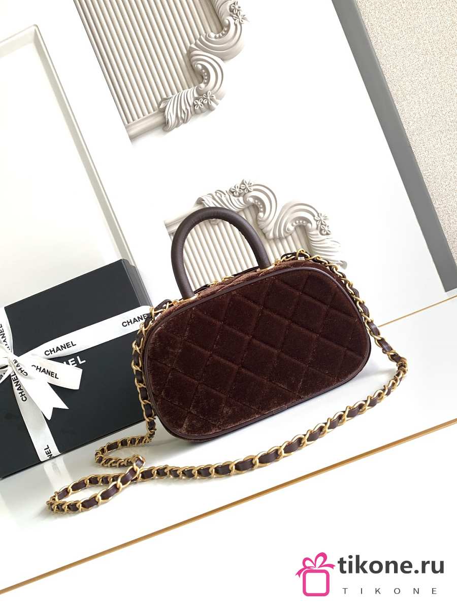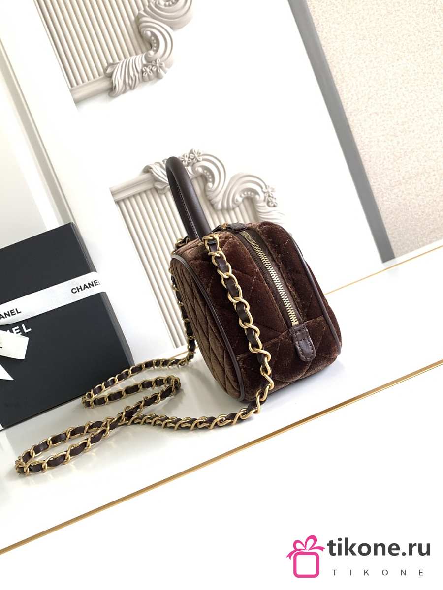Chanel Mini Bowling Bag Velvet Calfskin & Gold Tone Metal Dark Brown - 20x11.5x8.5cm