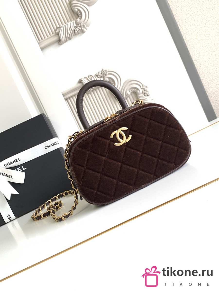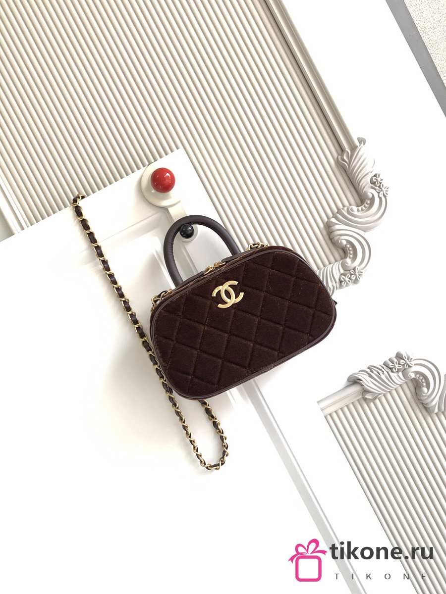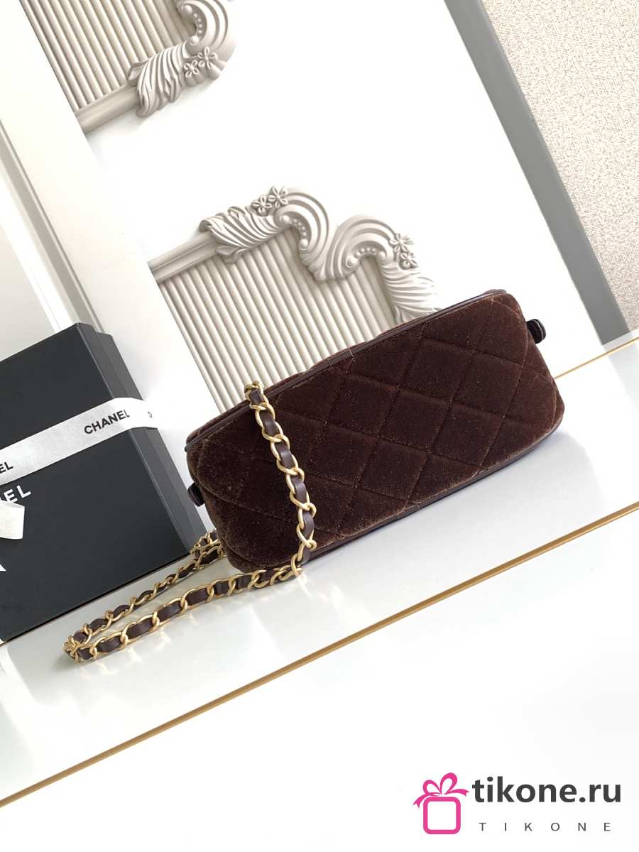 Chanel Mini Bowling Bag Velvet Calfskin & Gold Tone Metal Dark Brown - 20x11.5x8.5cm