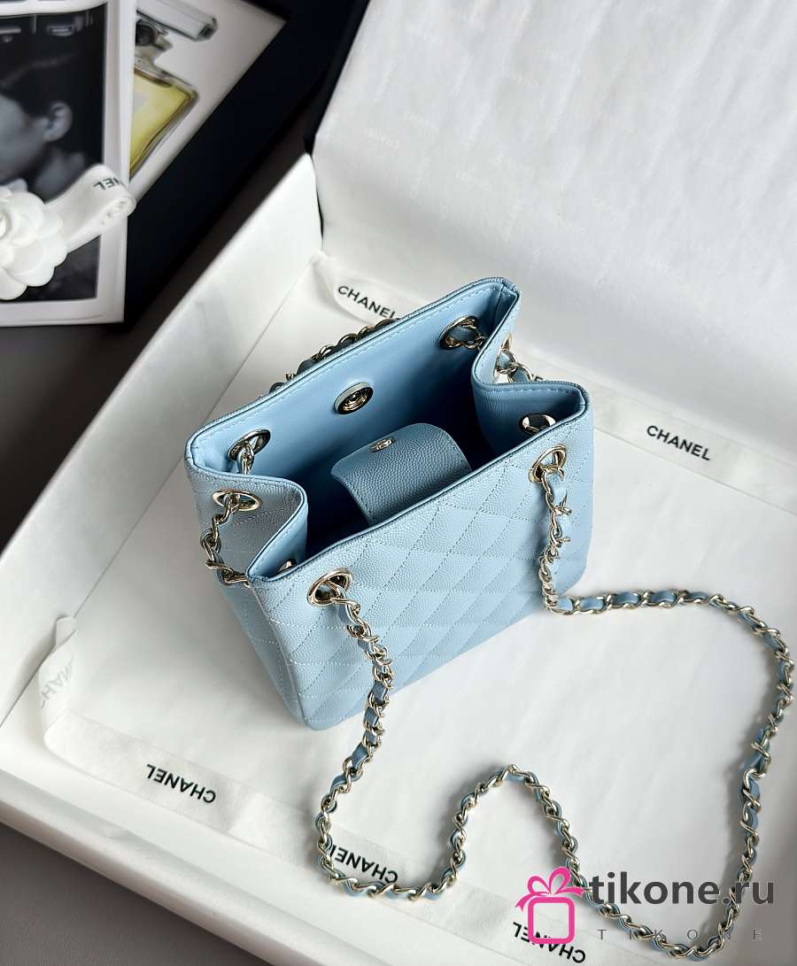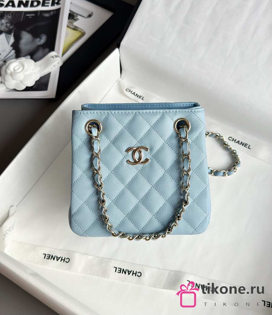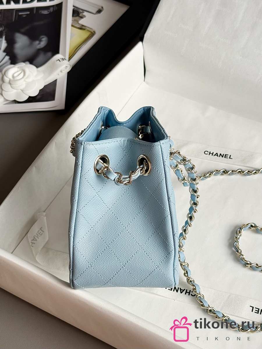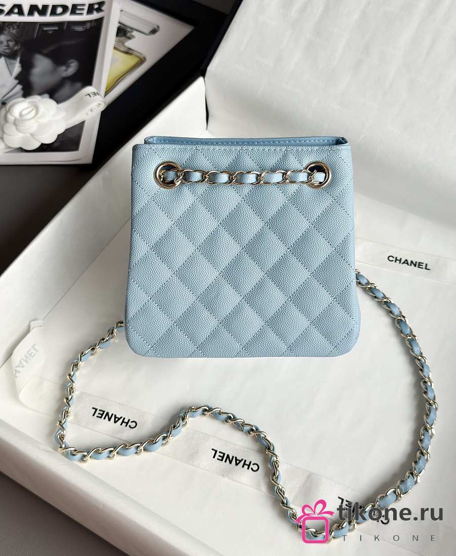 Chanel Mini Bucket Bag in Caviar & Light Gold-Tone Metal Light Blue - 16x15x10cm