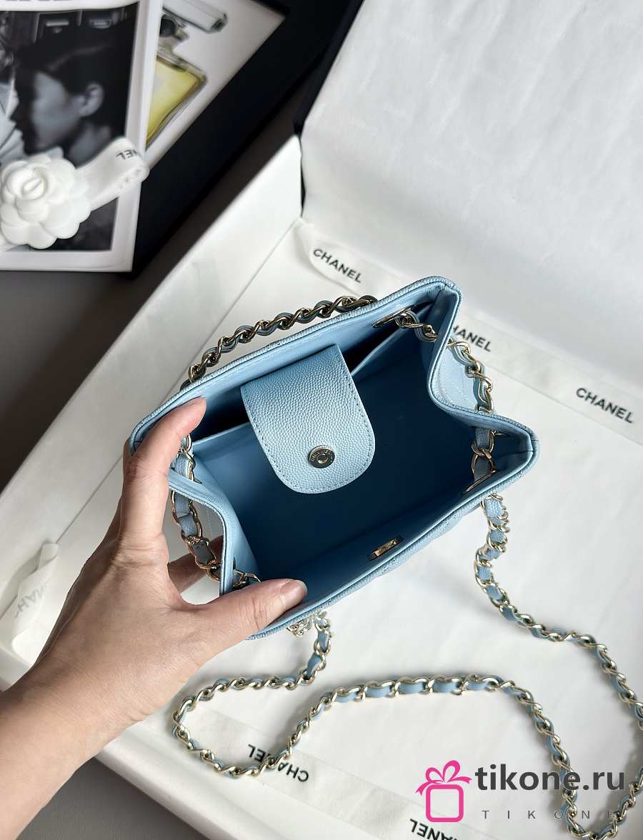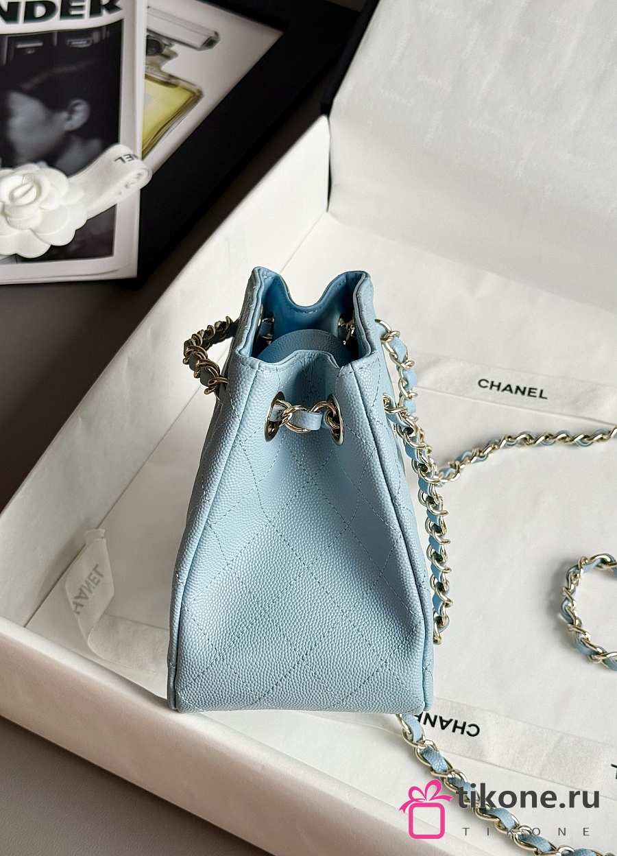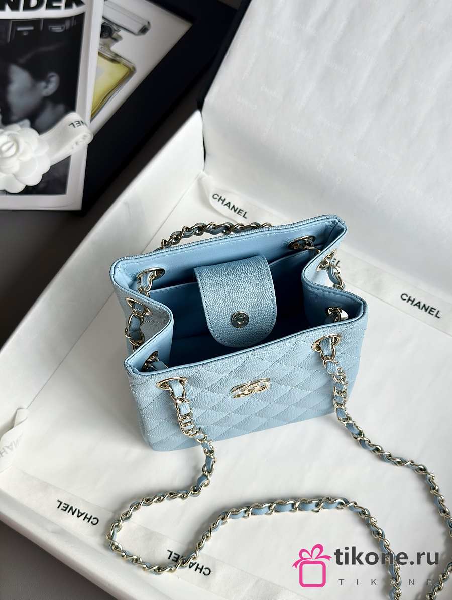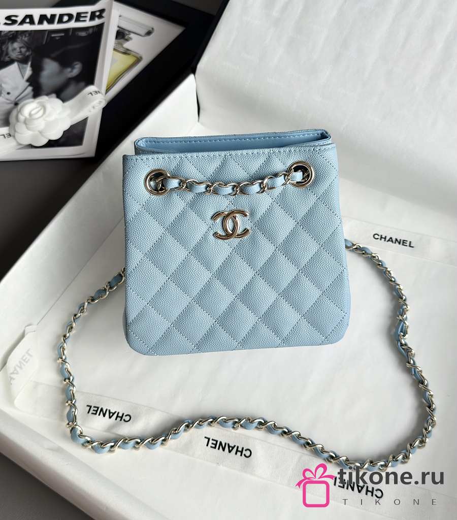 Chanel Mini Bucket Bag in Caviar & Light Gold-Tone Metal Light Blue - 16x15x10cm