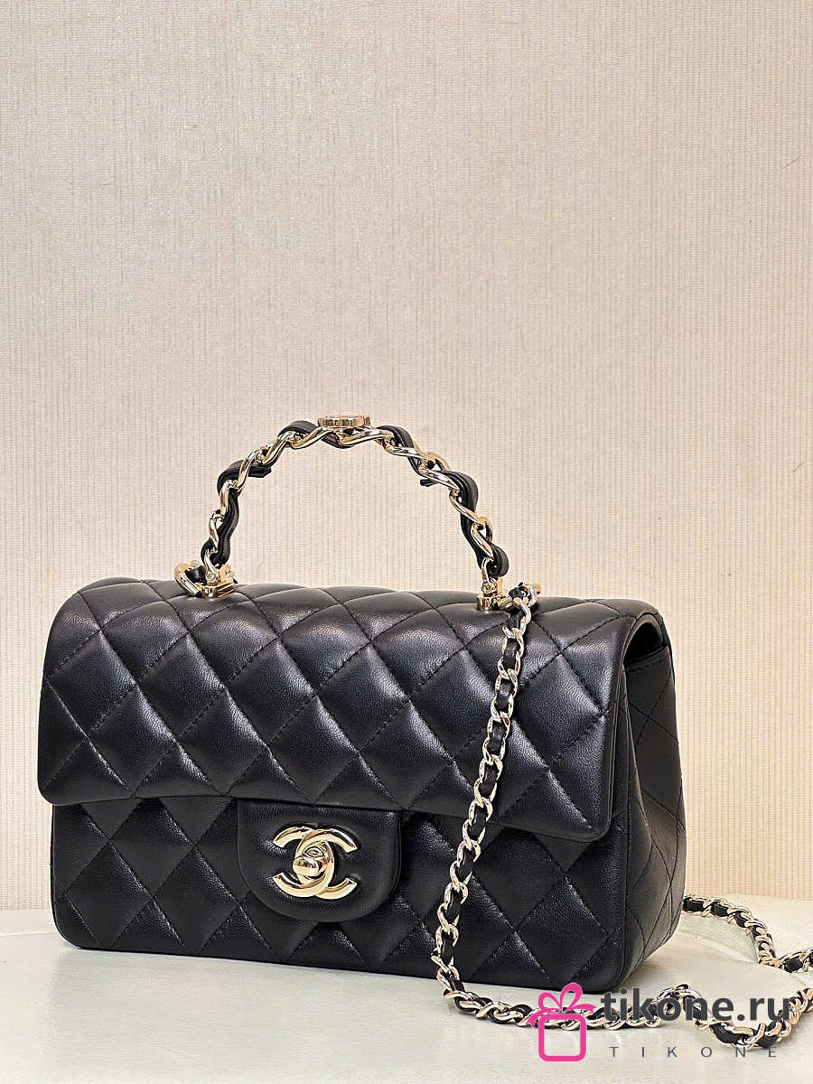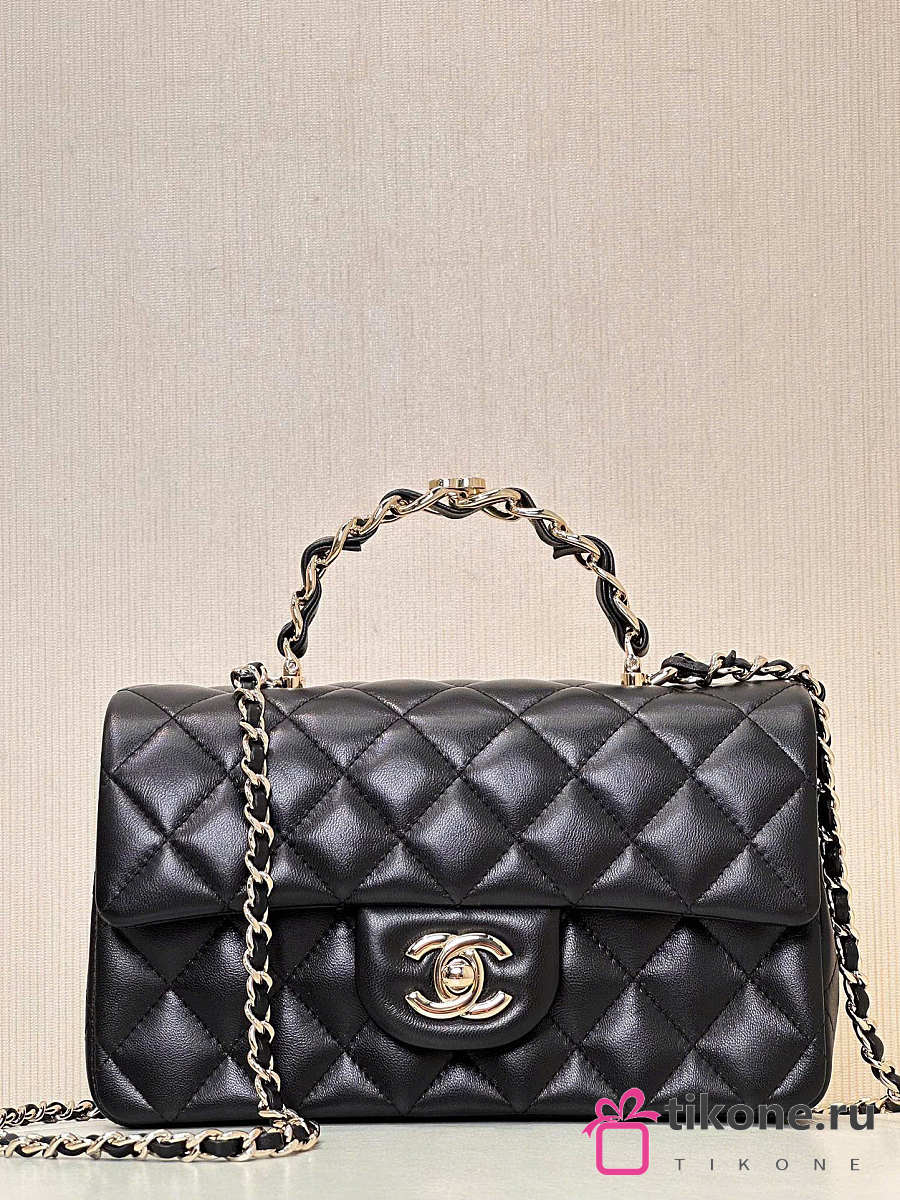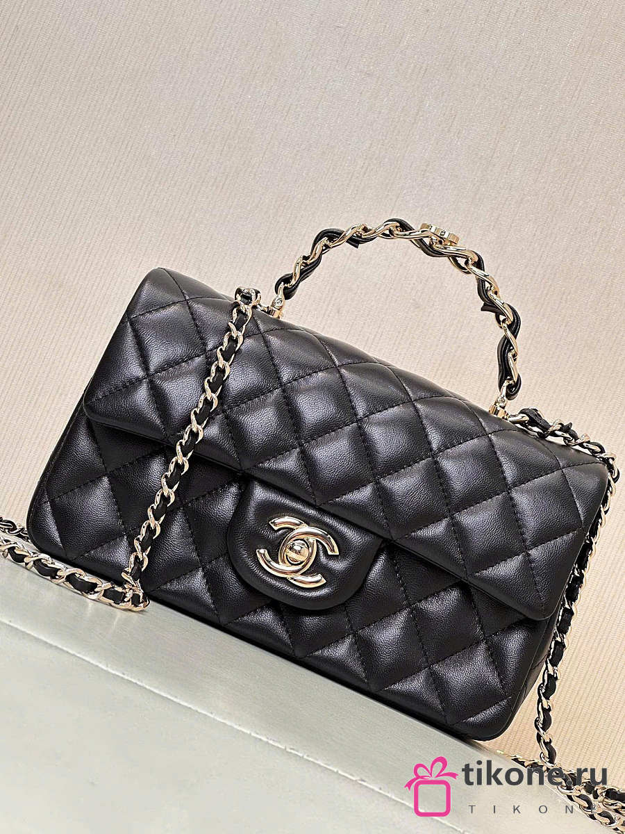 Chanel Mini Classic Handbag With Top Handle Lambskin Black AS2431 - 12x20x6cm