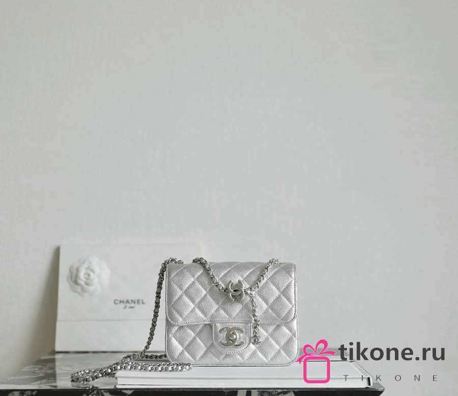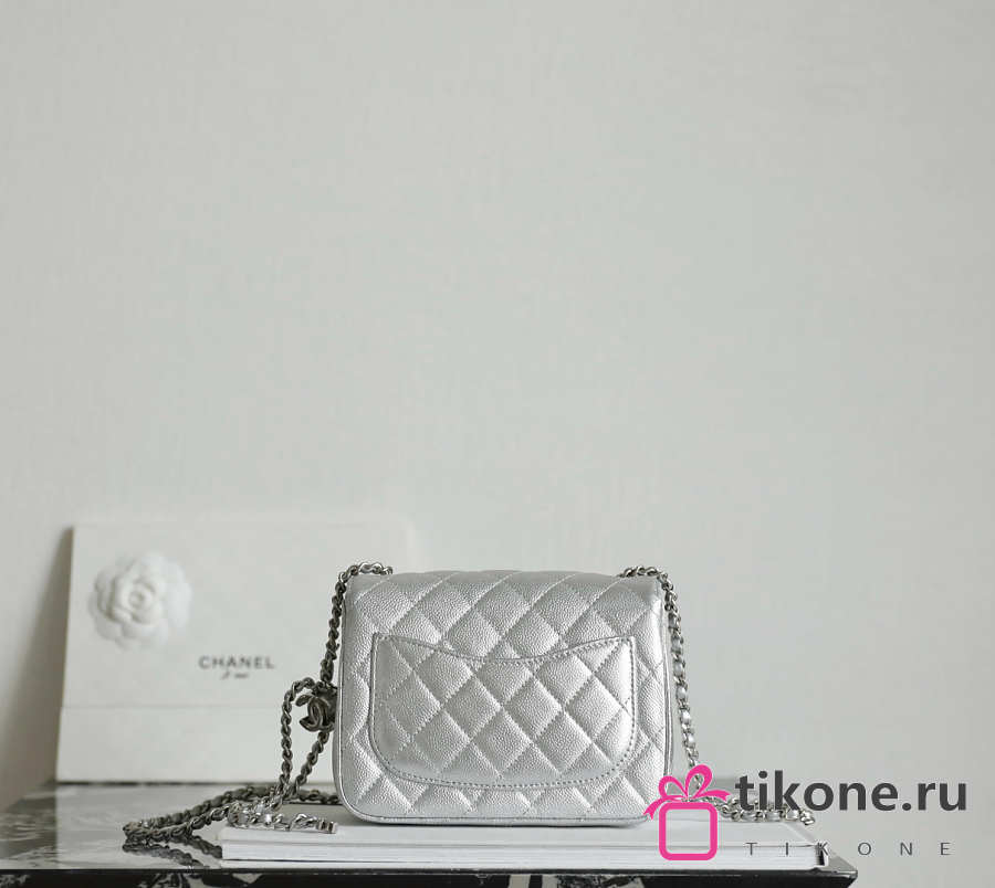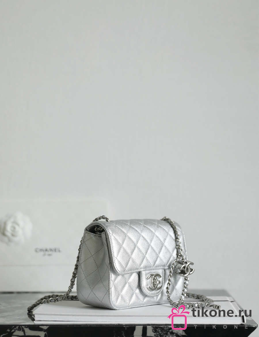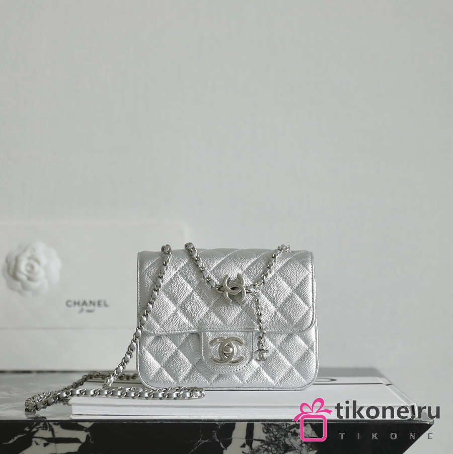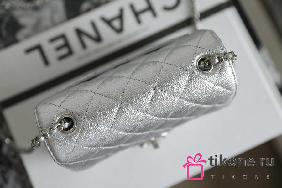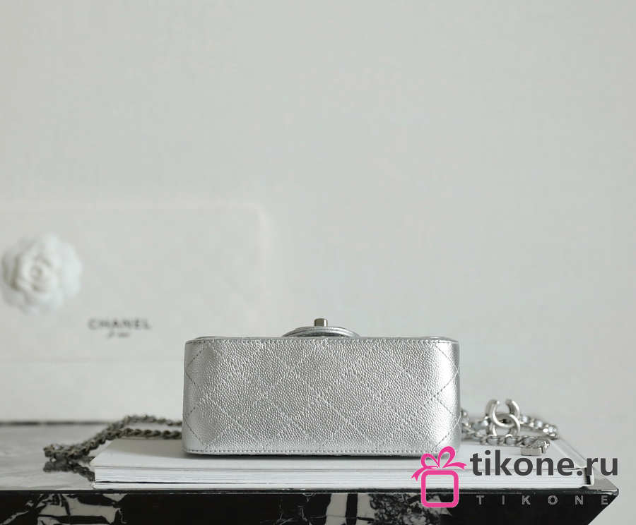 Chanel Mini Flap Bag Caviar Strass & Silver Tone Metal Silver - 18x13x7cm