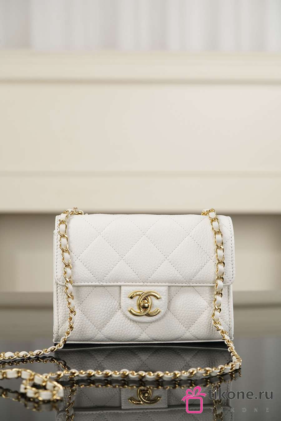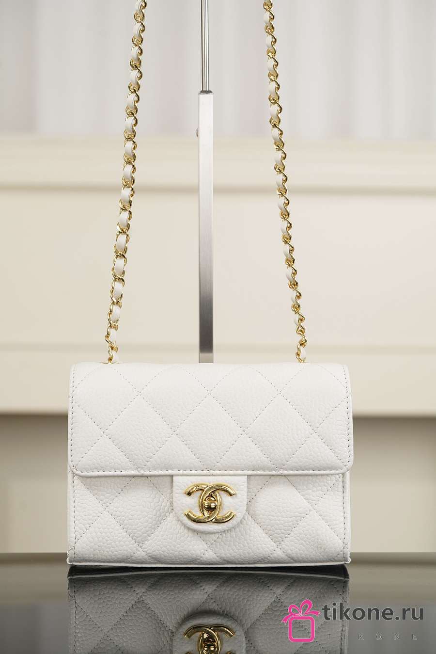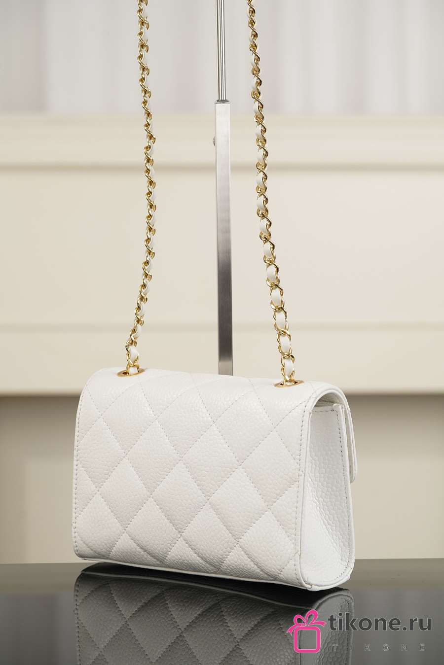 Chanel Mini Flap Bag Grained Calfskin & Gold-Tone Metal White - 19x13x7cm