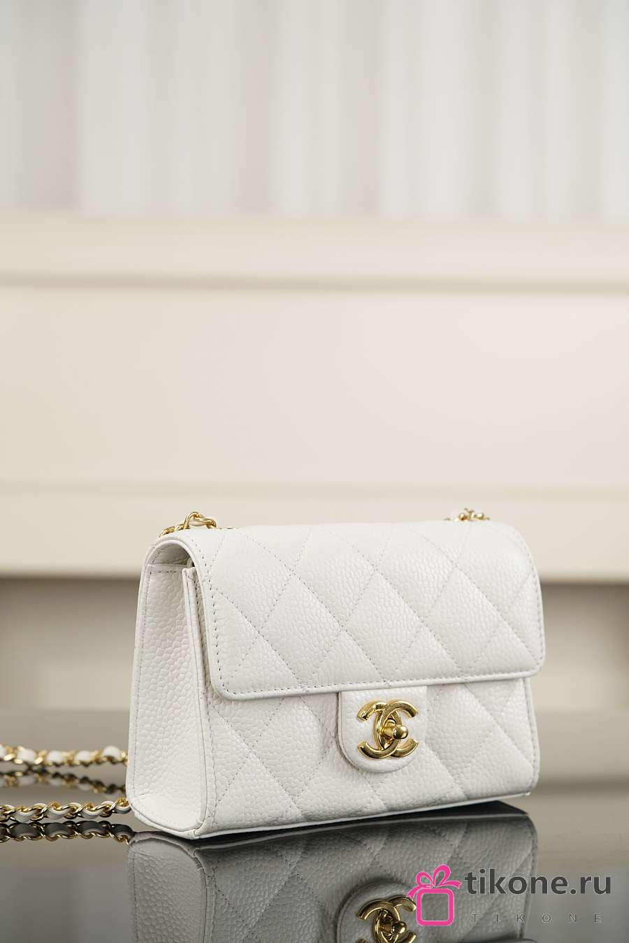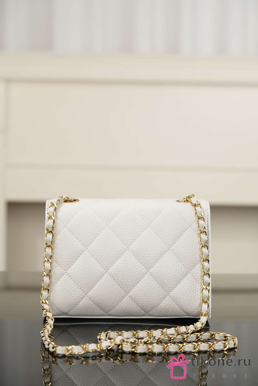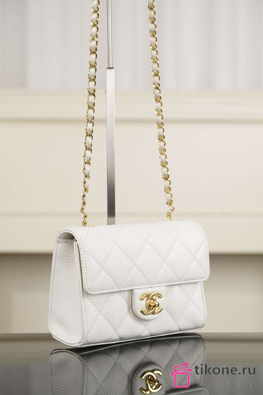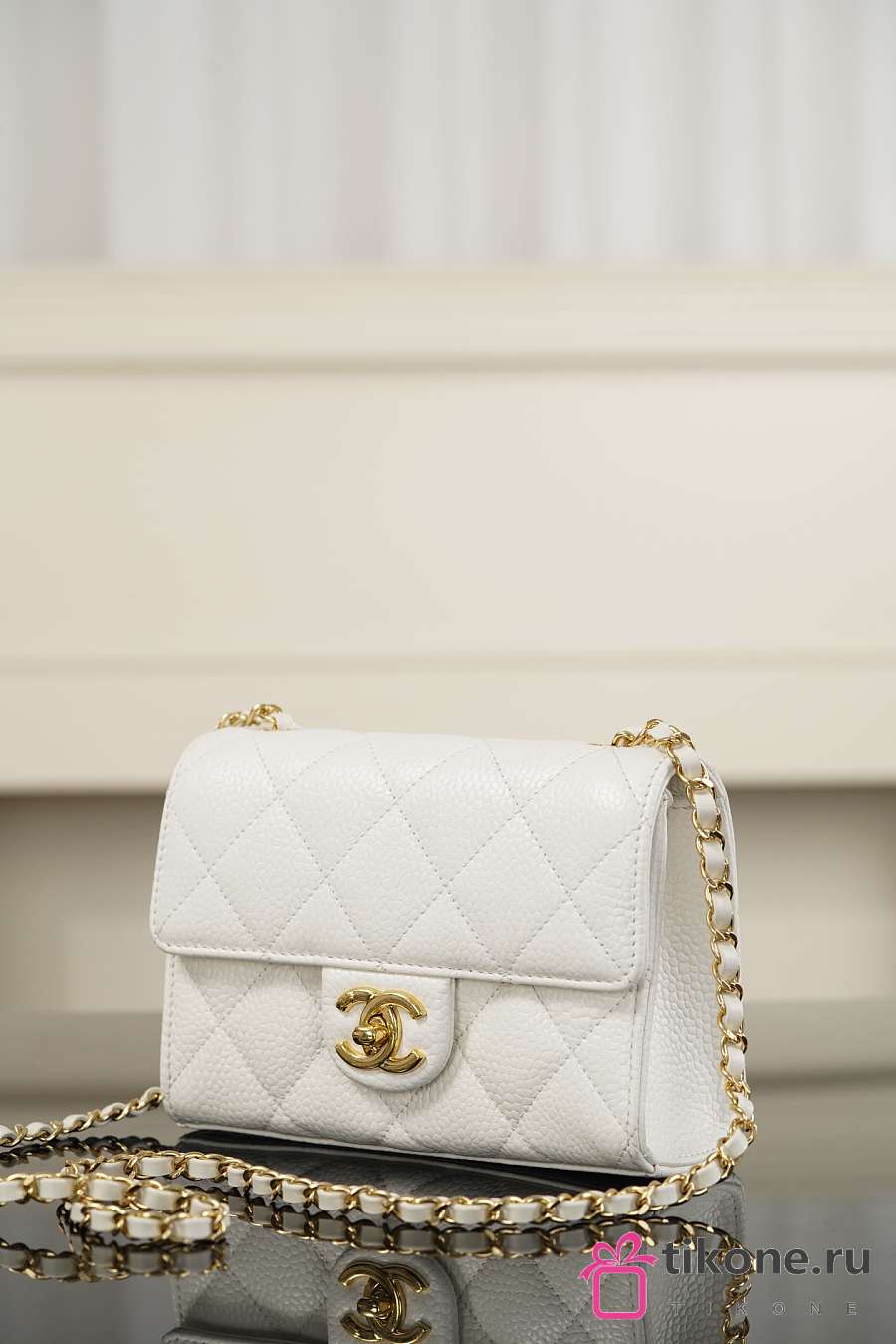 Chanel Mini Flap Bag Grained Calfskin & Gold-Tone Metal White - 19x13x7cm