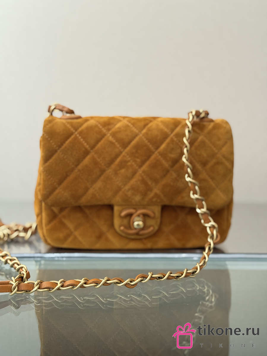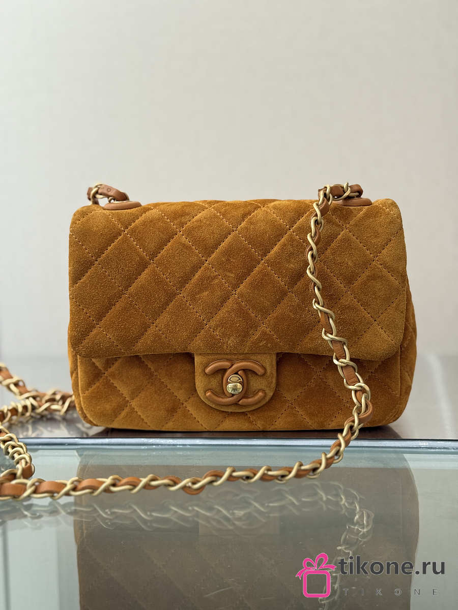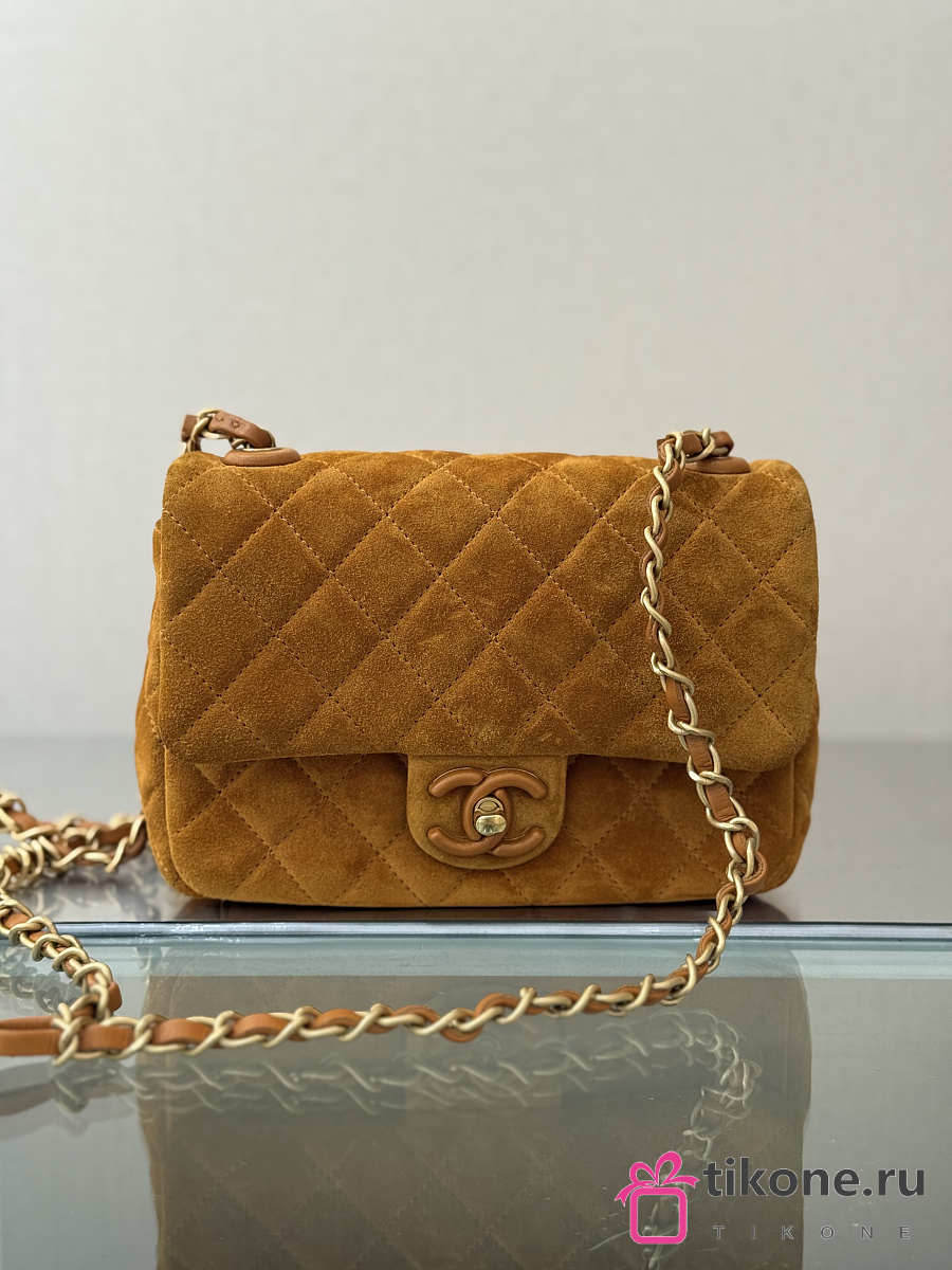 Chanel Mini Flap Bag Suede Calfskin Lambskin & Gold Tone Metal Dark Beige - 20x14x6cm