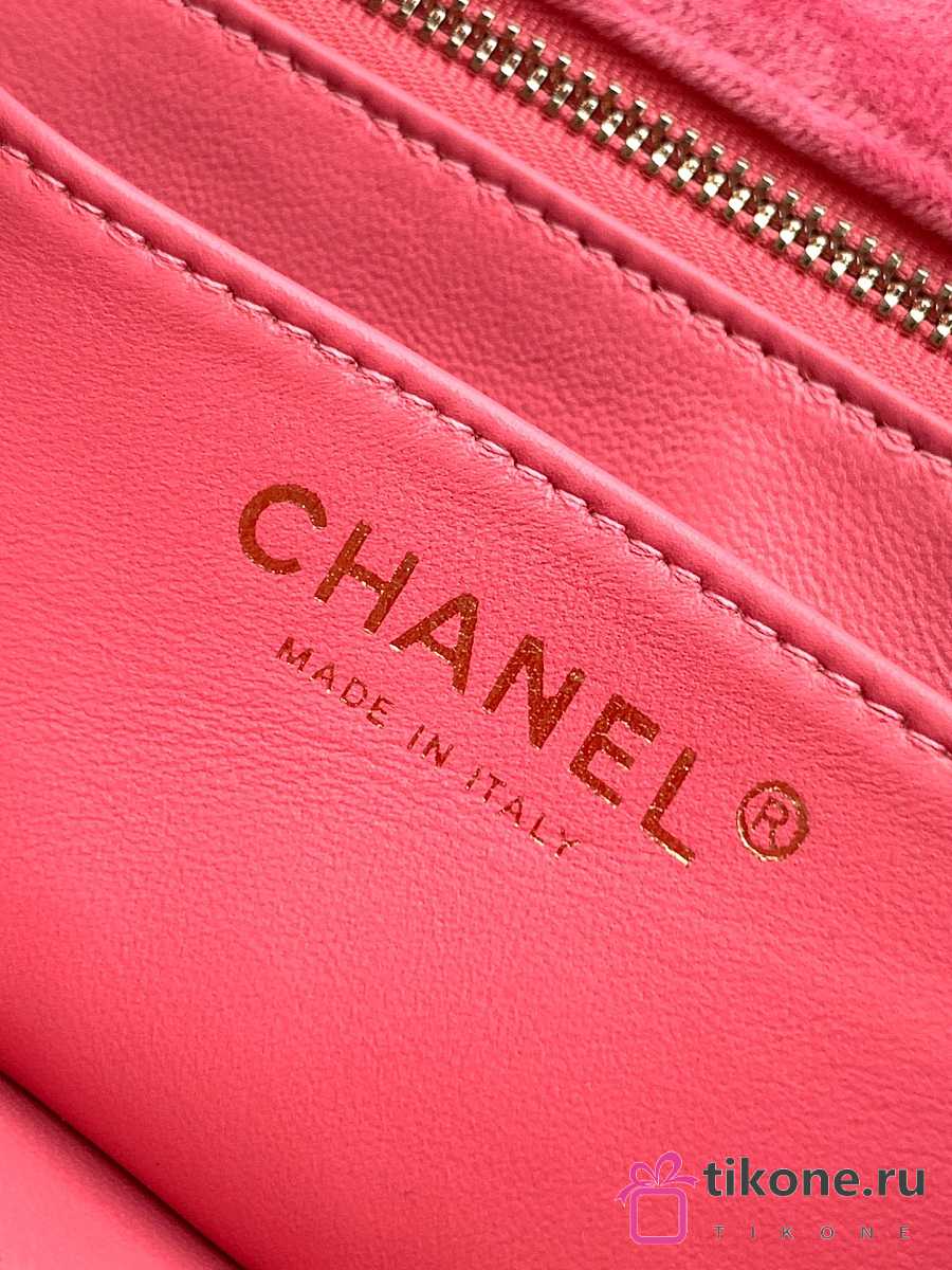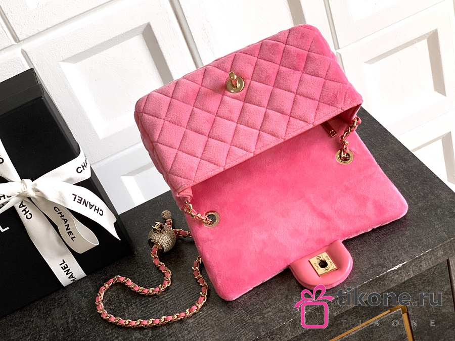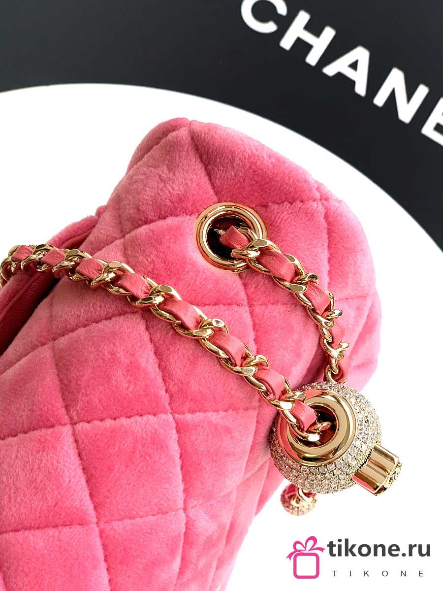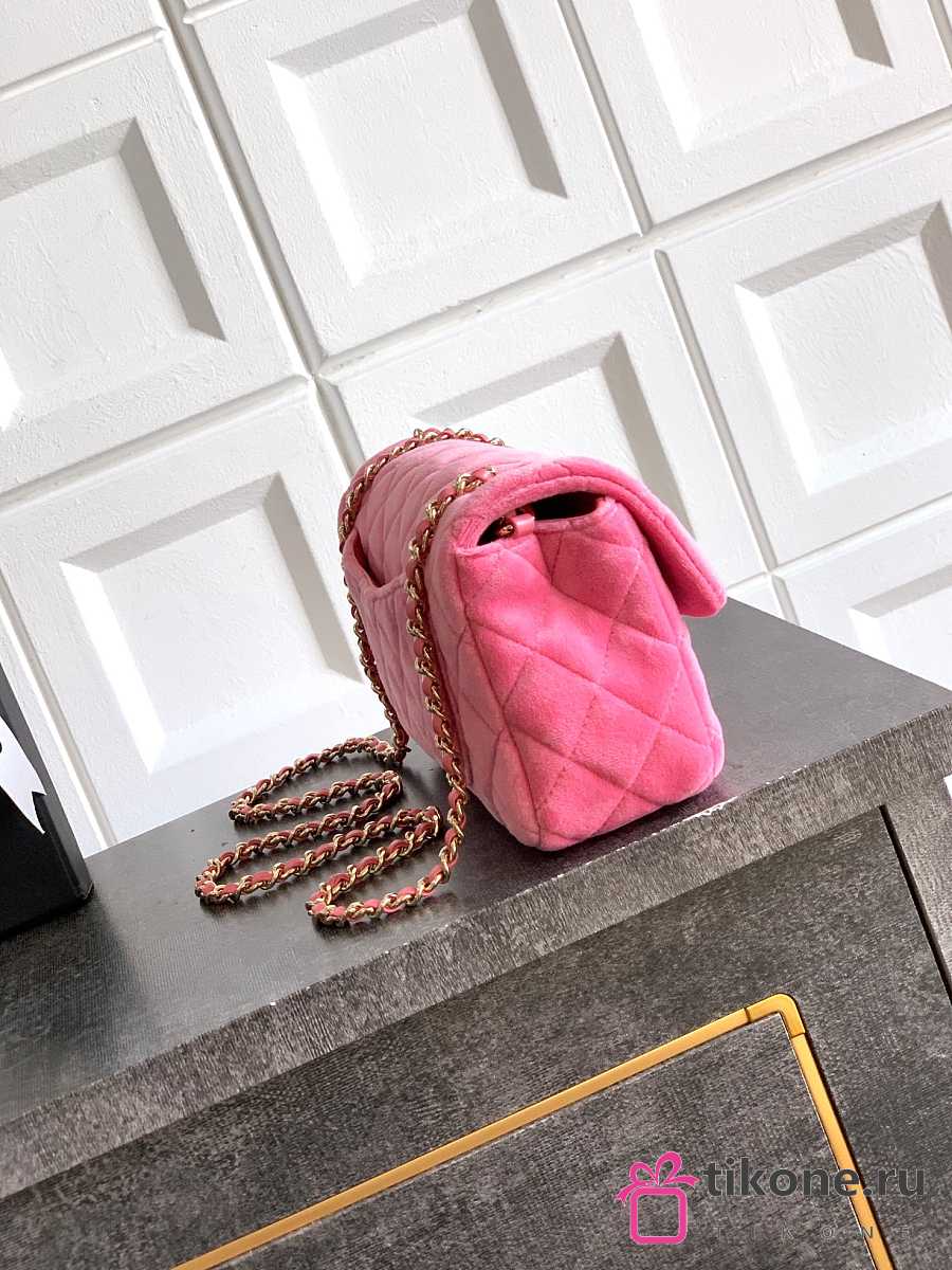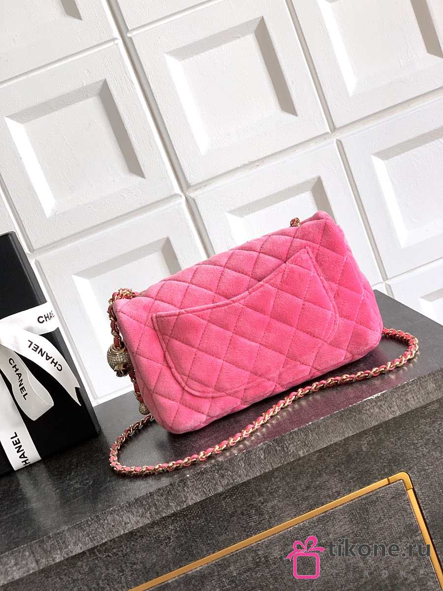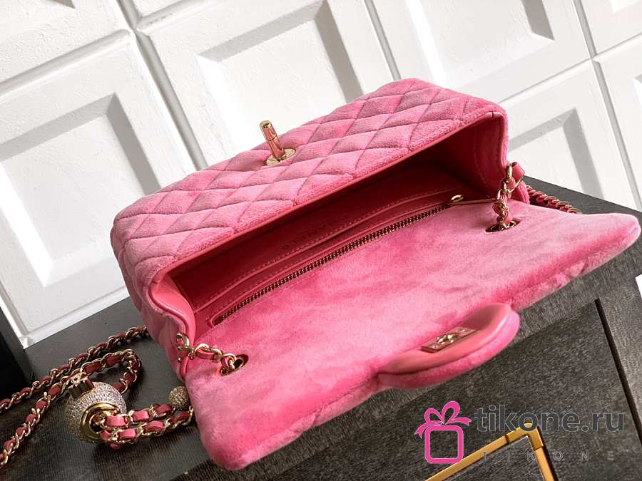 Chanel Mini Flap Bag Velvet Diamanté & Gold Tone Metal Pink - 20x13x7cm