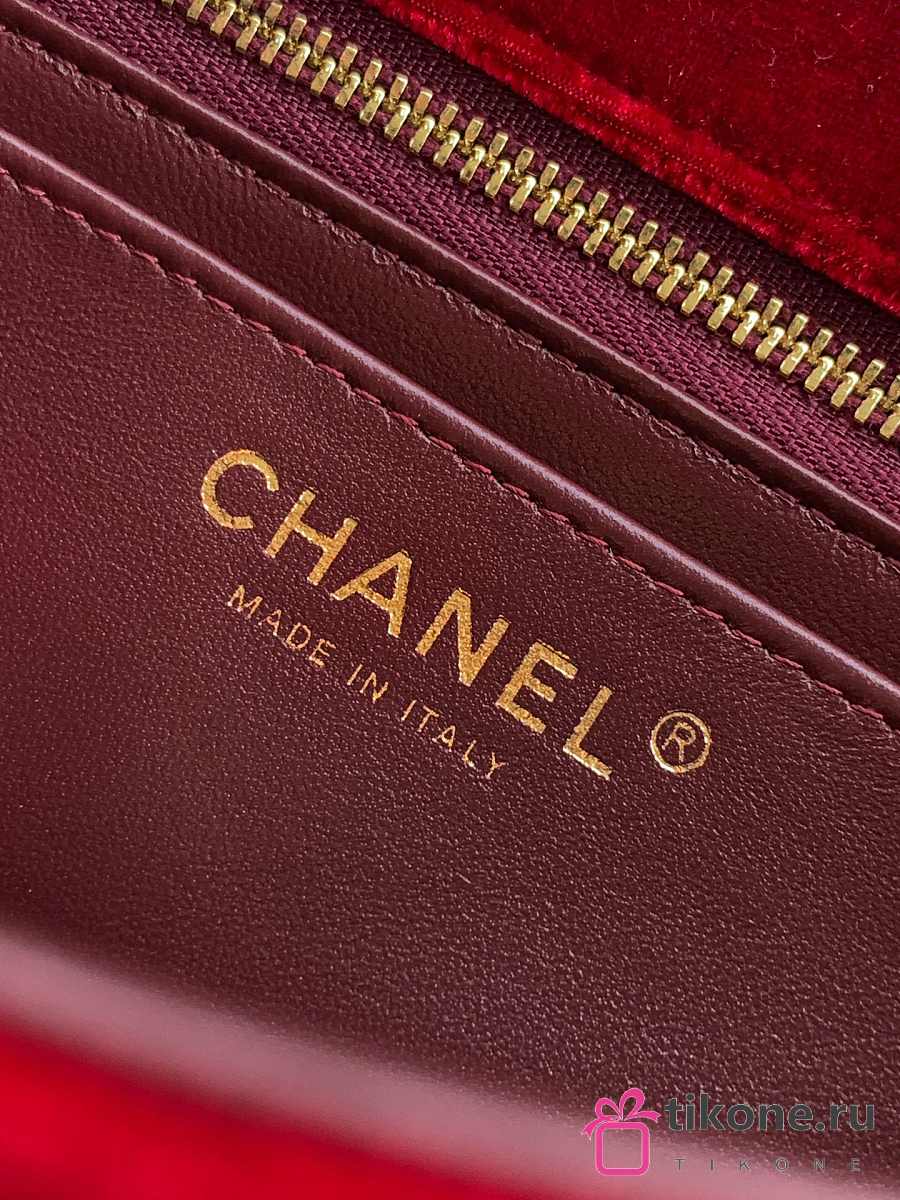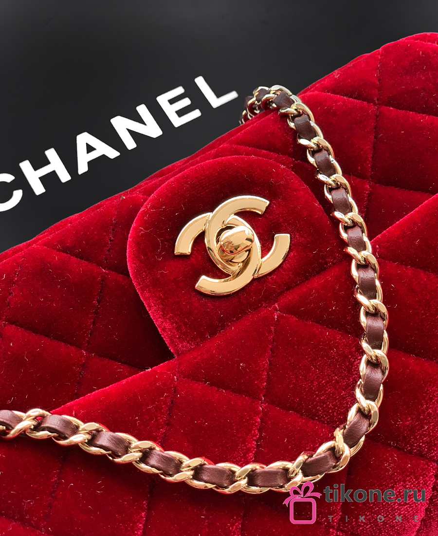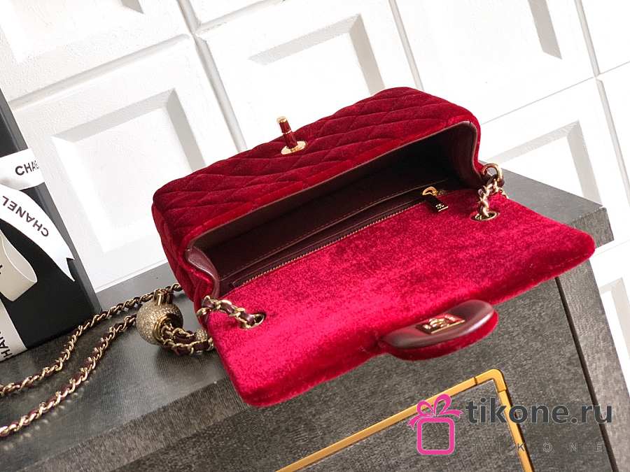Chanel Mini Flap Bag Velvet Diamanté & Gold Tone Metal Red - 20x13x7cm
