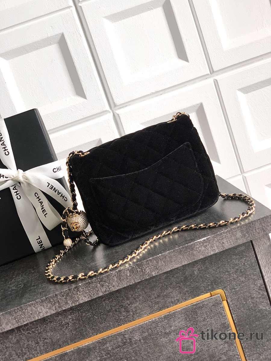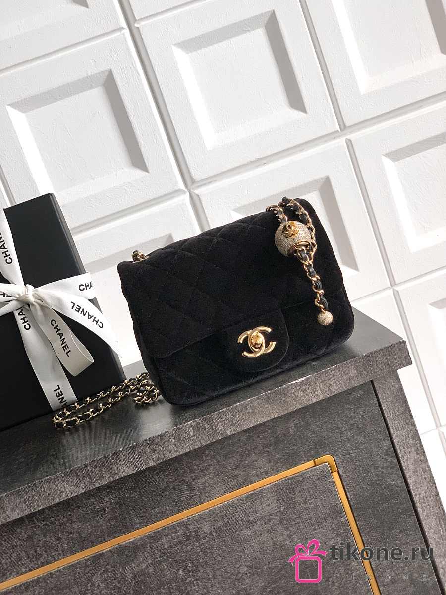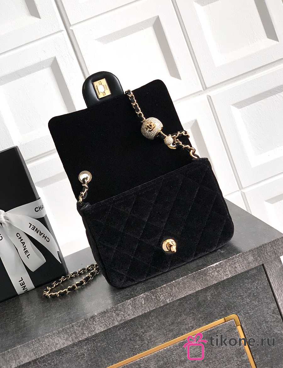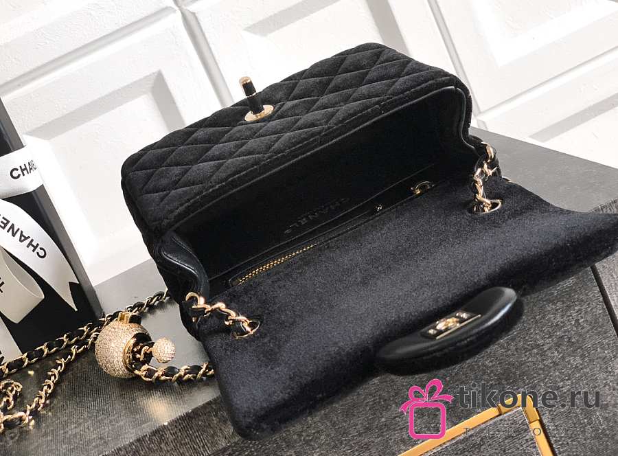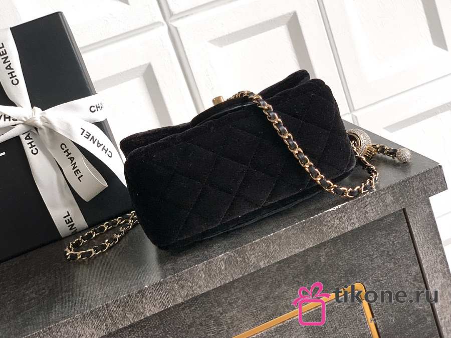 Chanel Mini Flap Bag Velvet Strass & Gold Tone Metal Black - 18x13x7cm