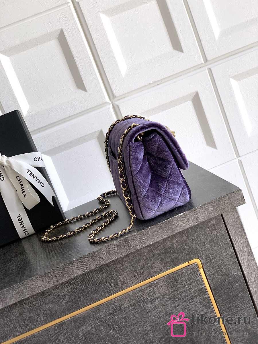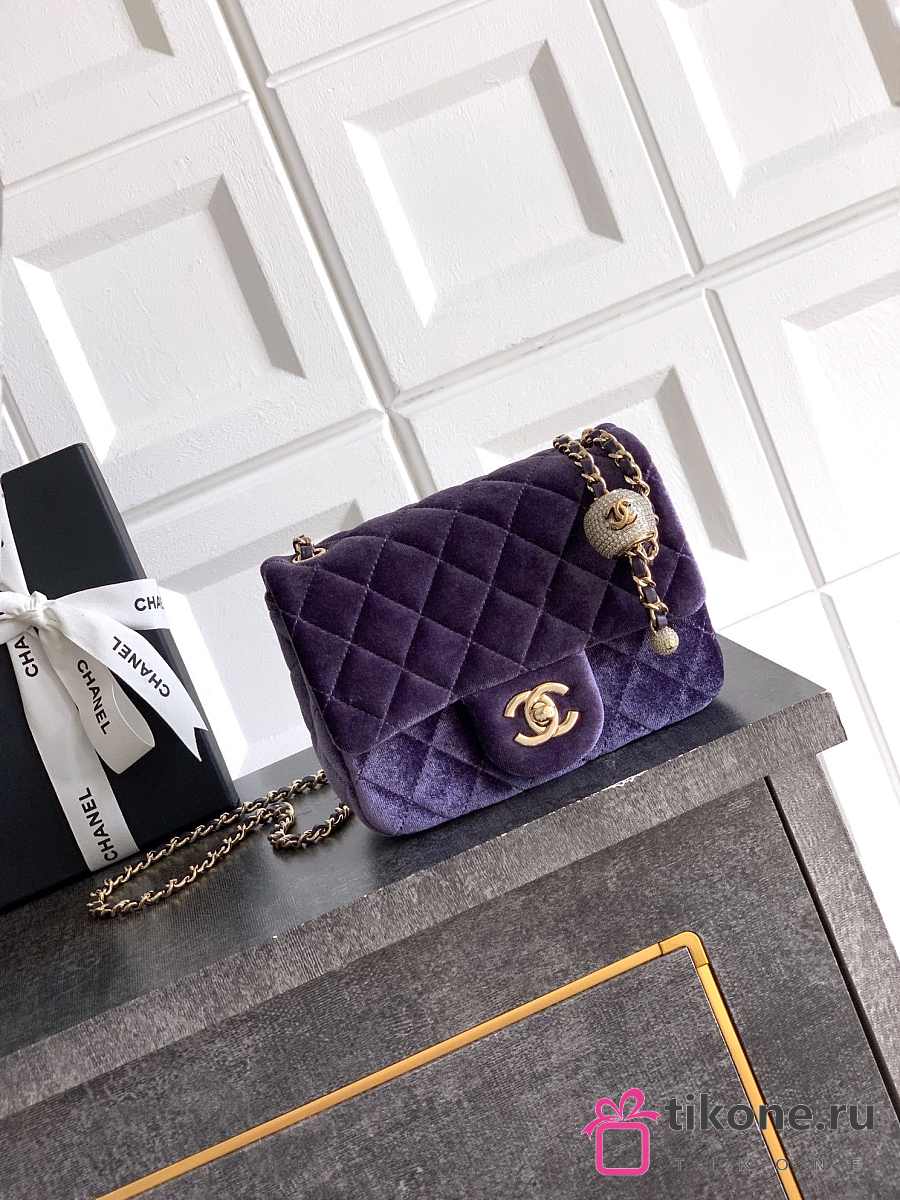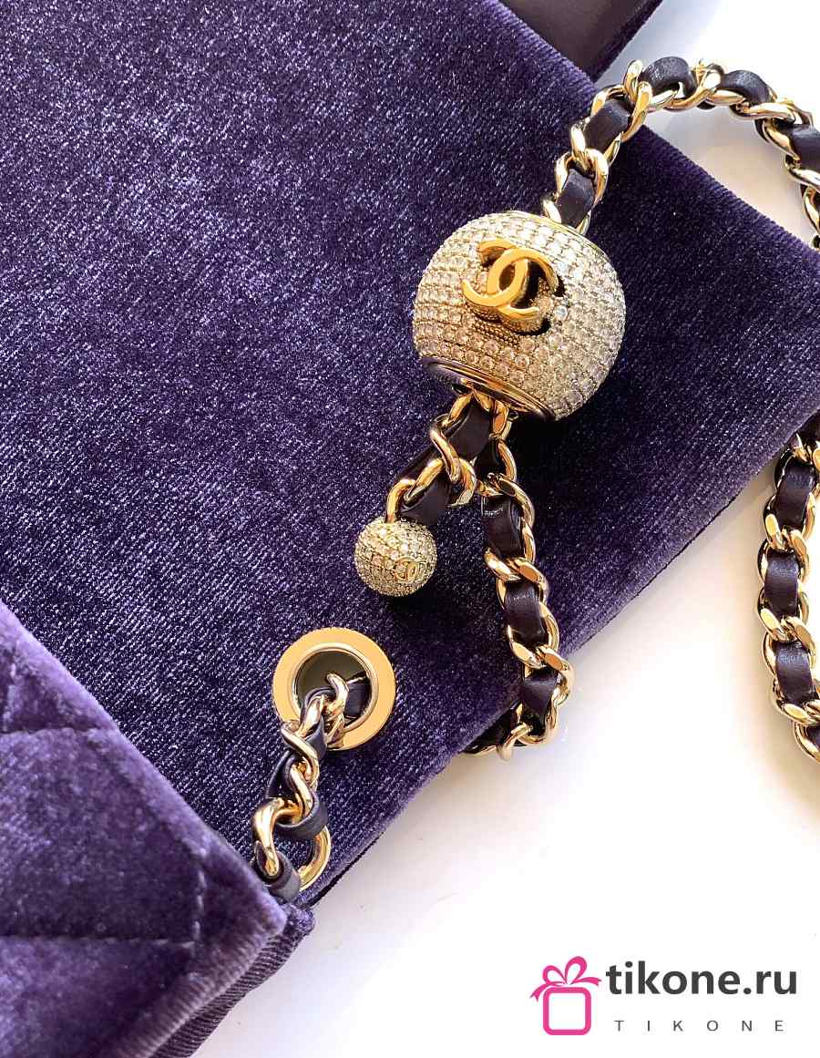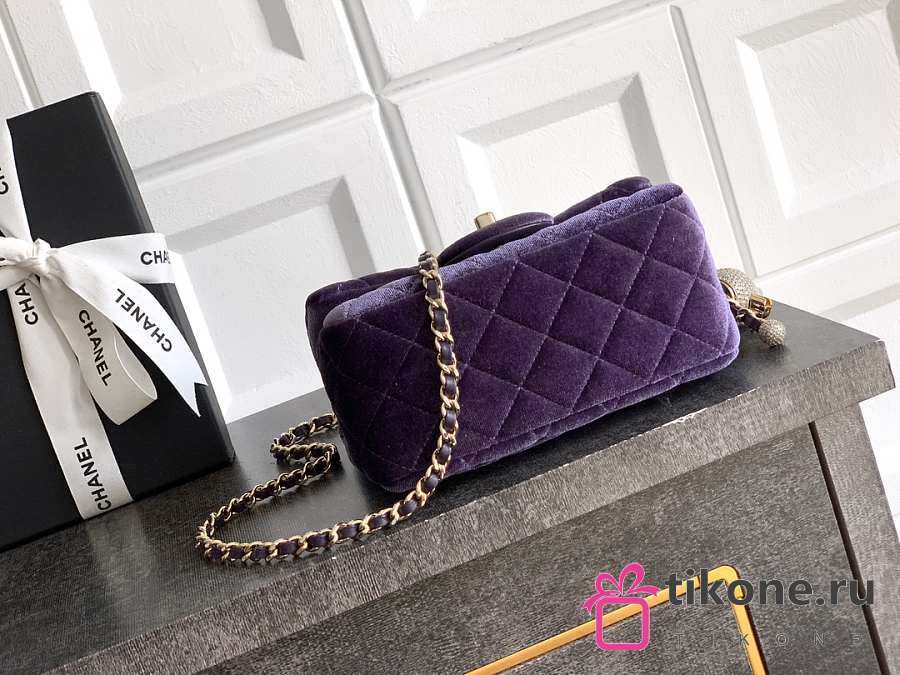 Chanel Mini Flap Bag Velvet Strass & Gold Tone Metal Purple - 18x13x7cm