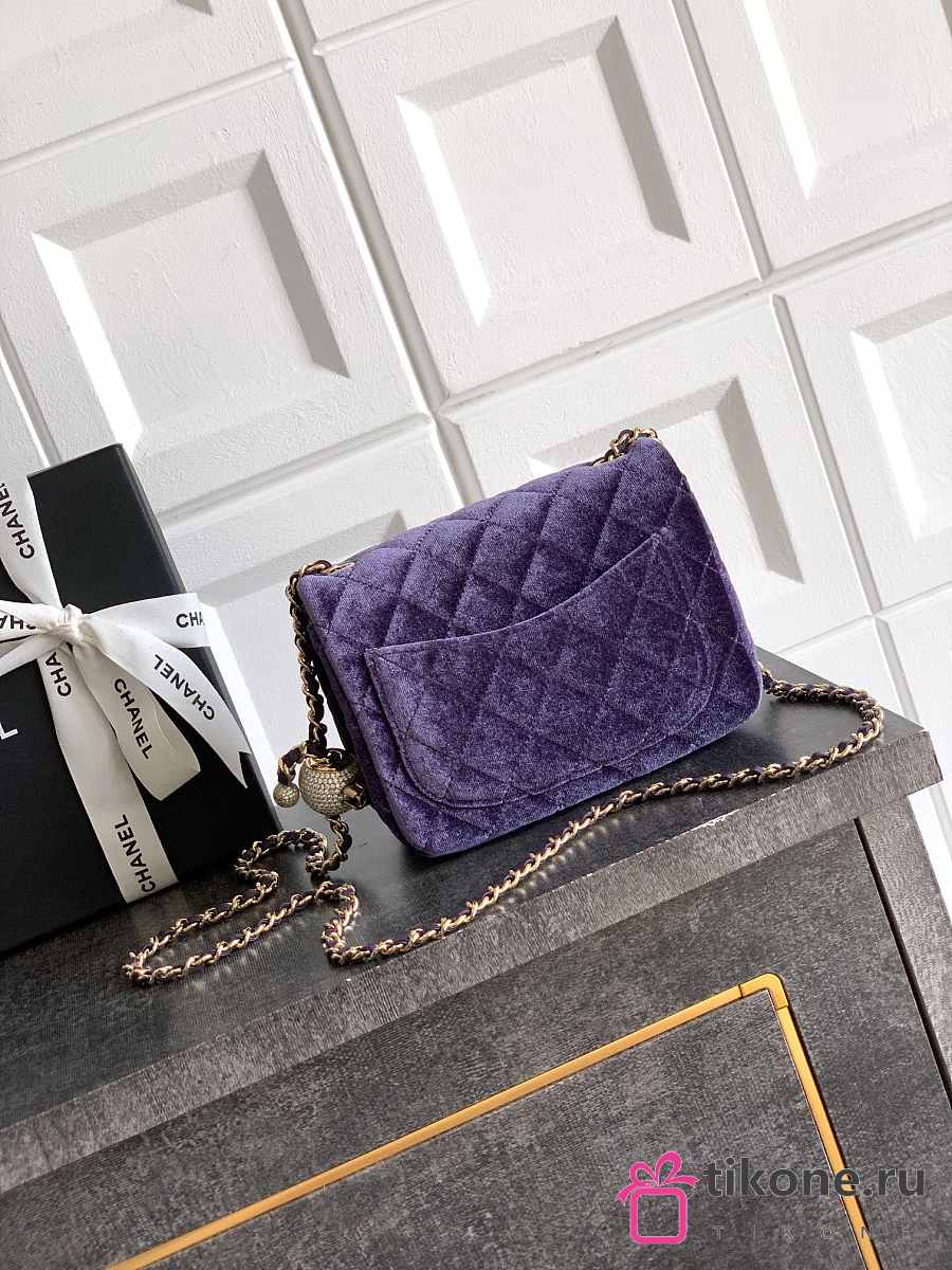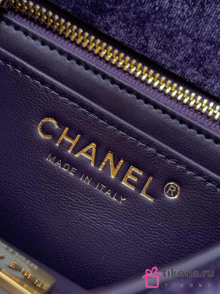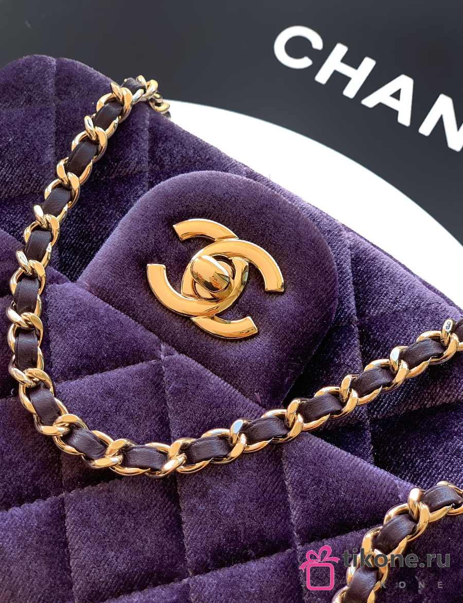 Chanel Mini Flap Bag Velvet Strass & Gold Tone Metal Purple - 18x13x7cm