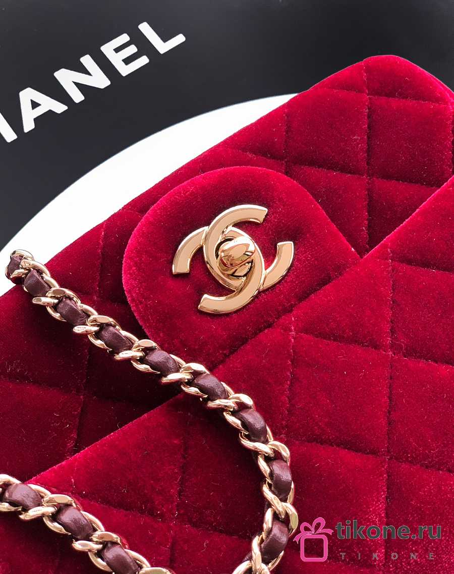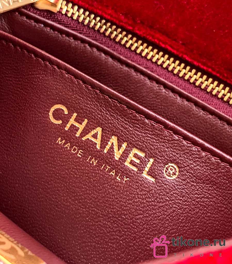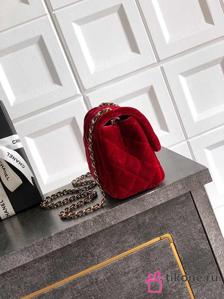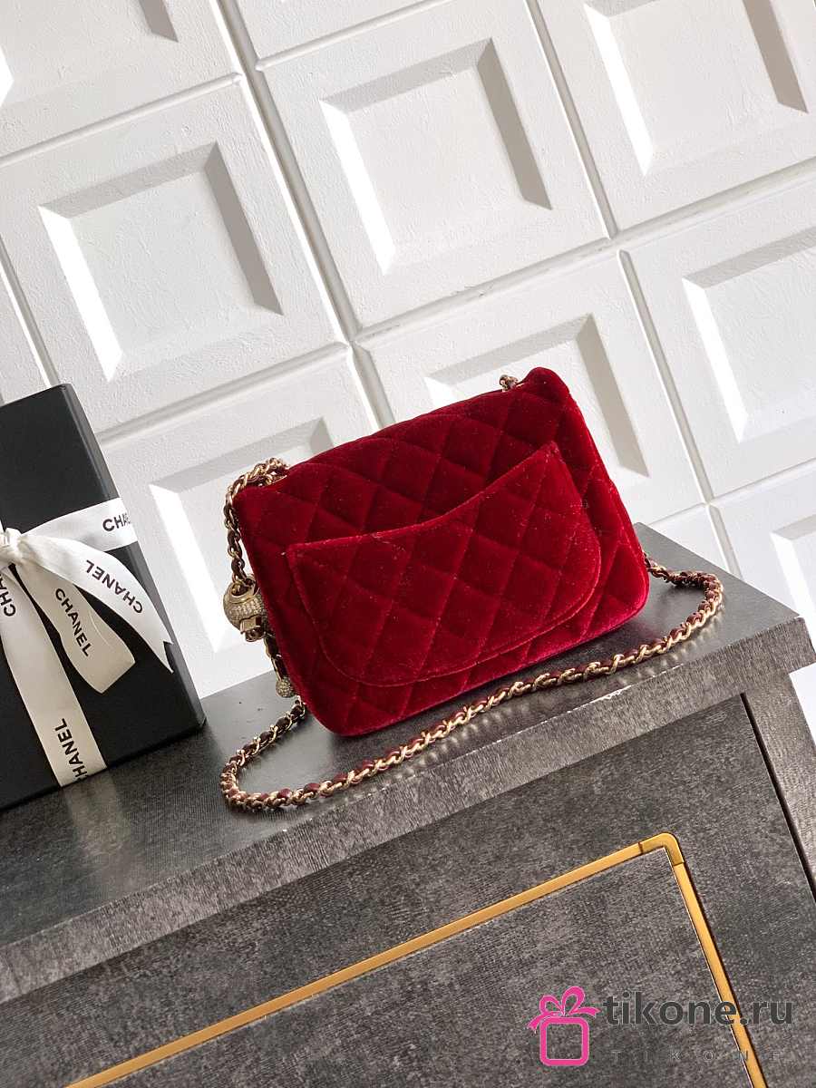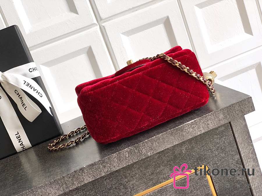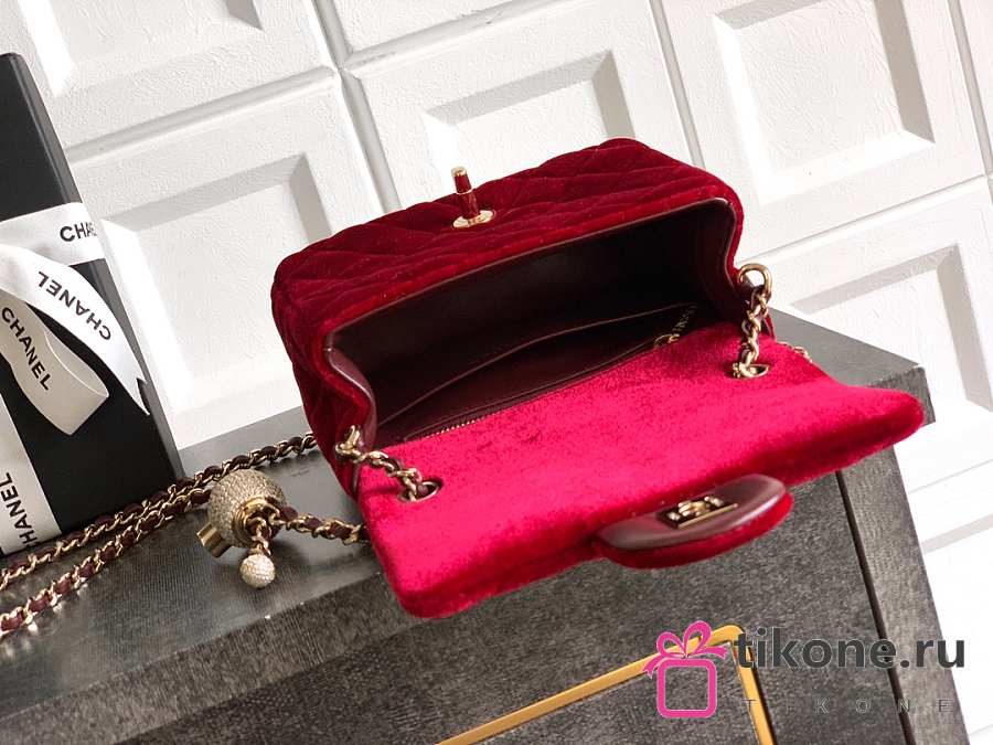 Chanel Mini Flap Bag Velvet Strass & Gold Tone Metal Red - 18x13x7cm