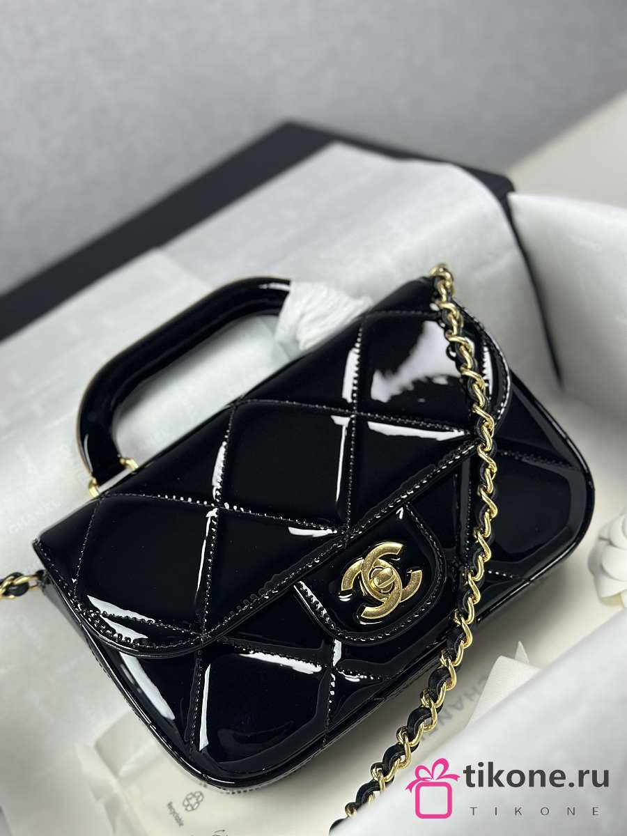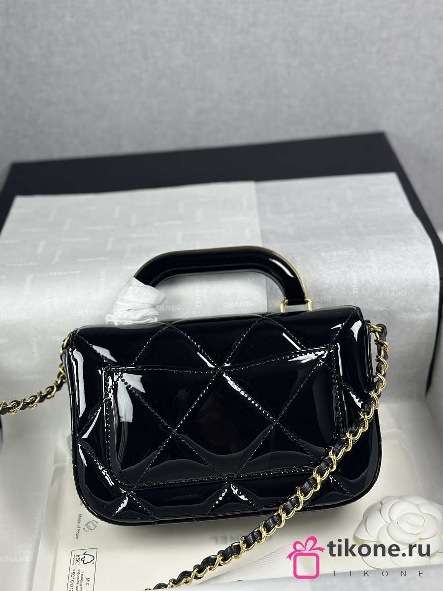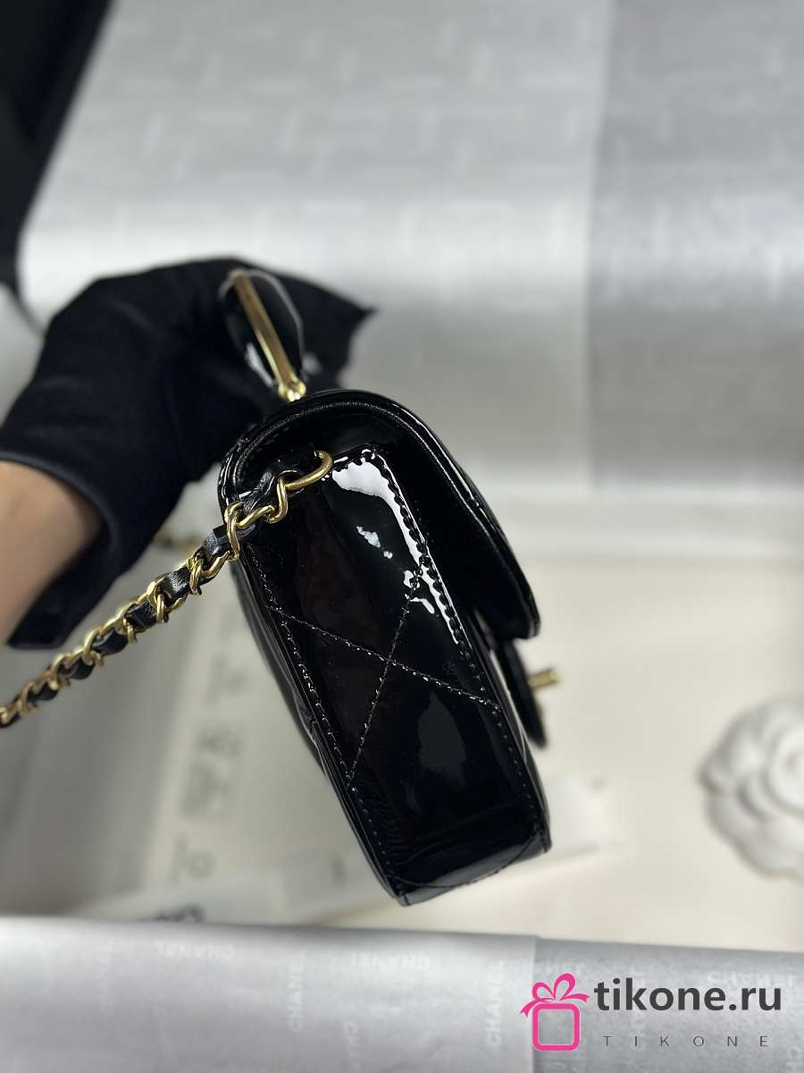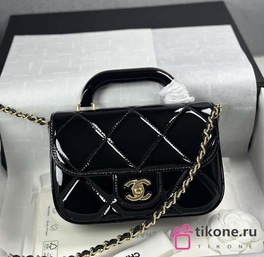 Chanel Mini Flap Bag with Top Handle Metallic Mirror Calfskin & Gold Tone Metal Black - 18.5x13x4.5cm