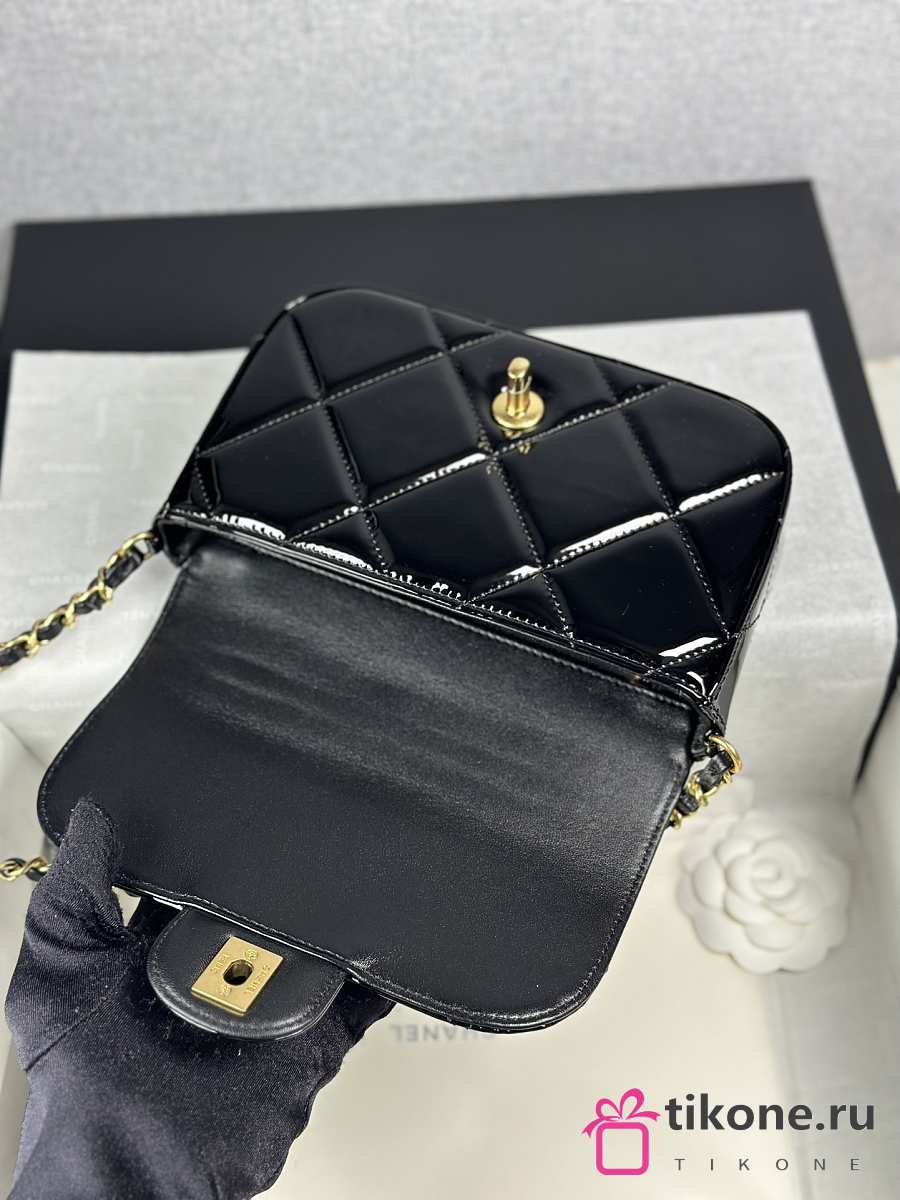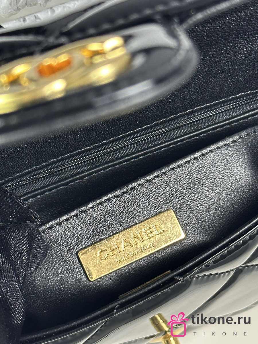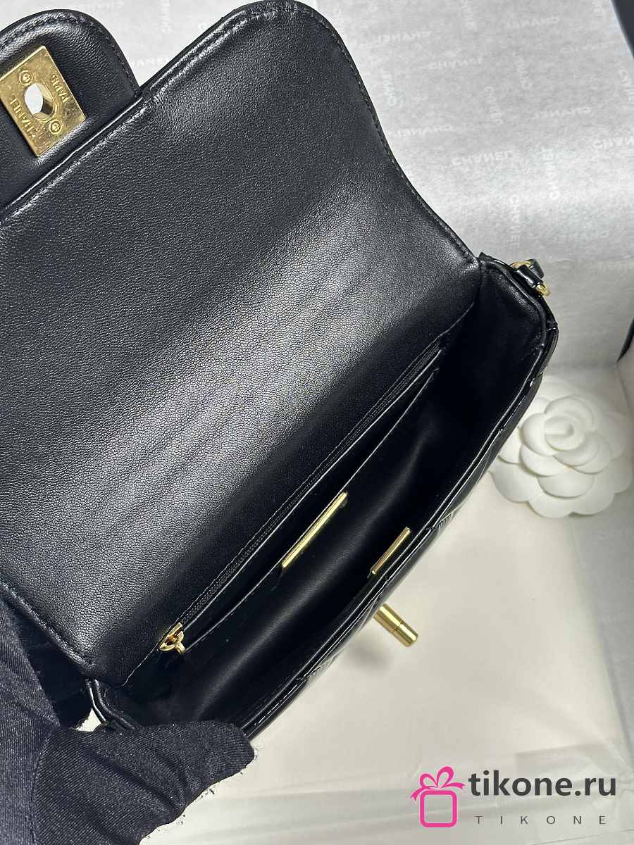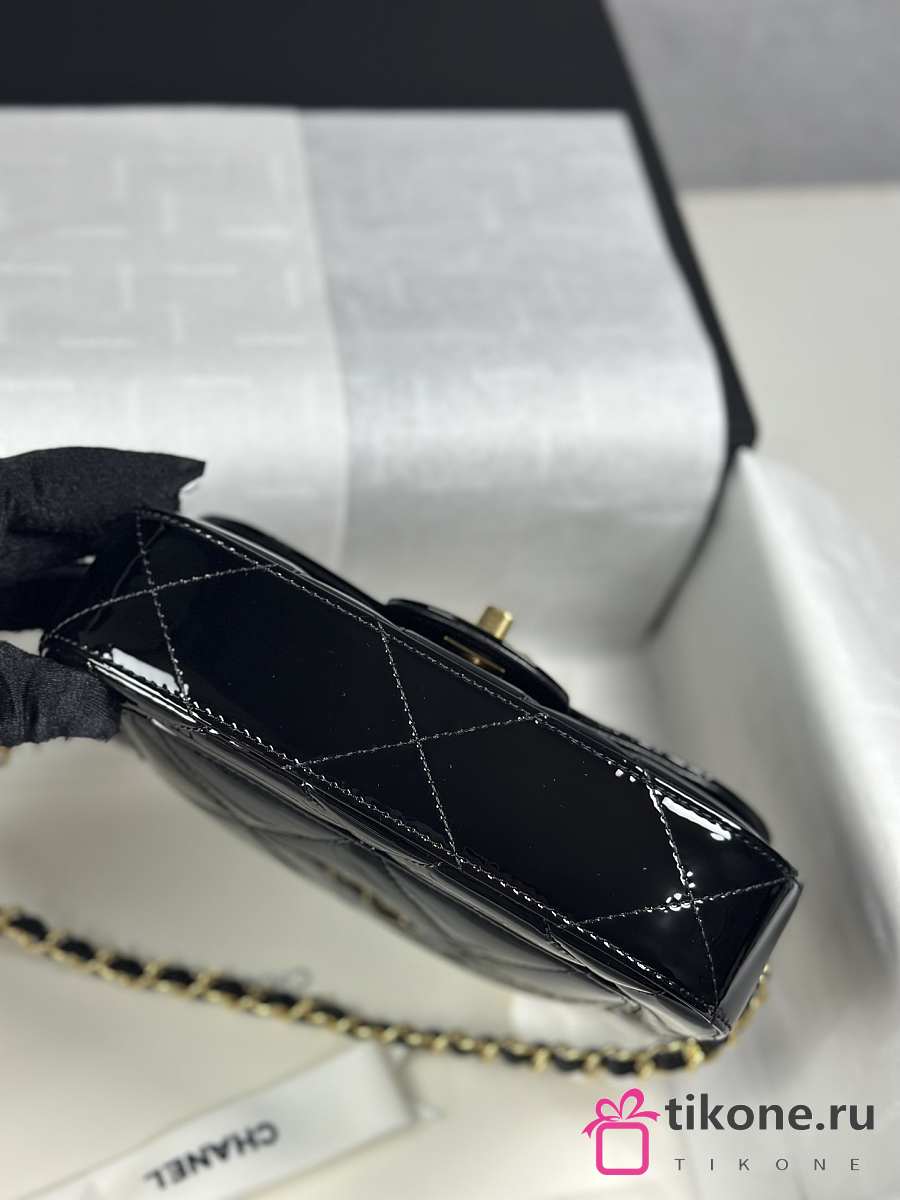Chanel Mini Flap Bag with Top Handle Metallic Mirror Calfskin & Gold Tone Metal Black - 18.5x13x4.5cm