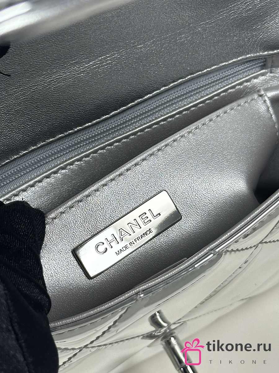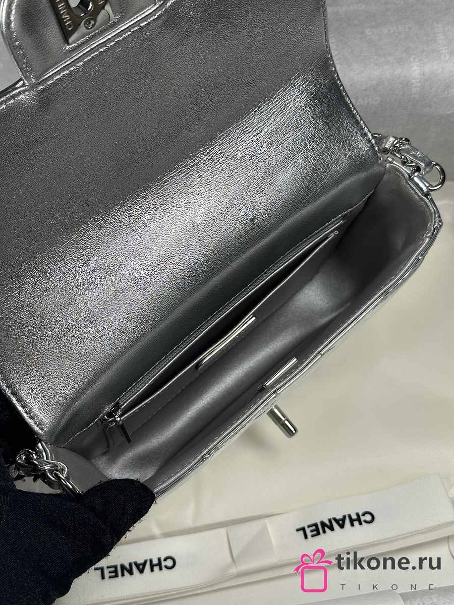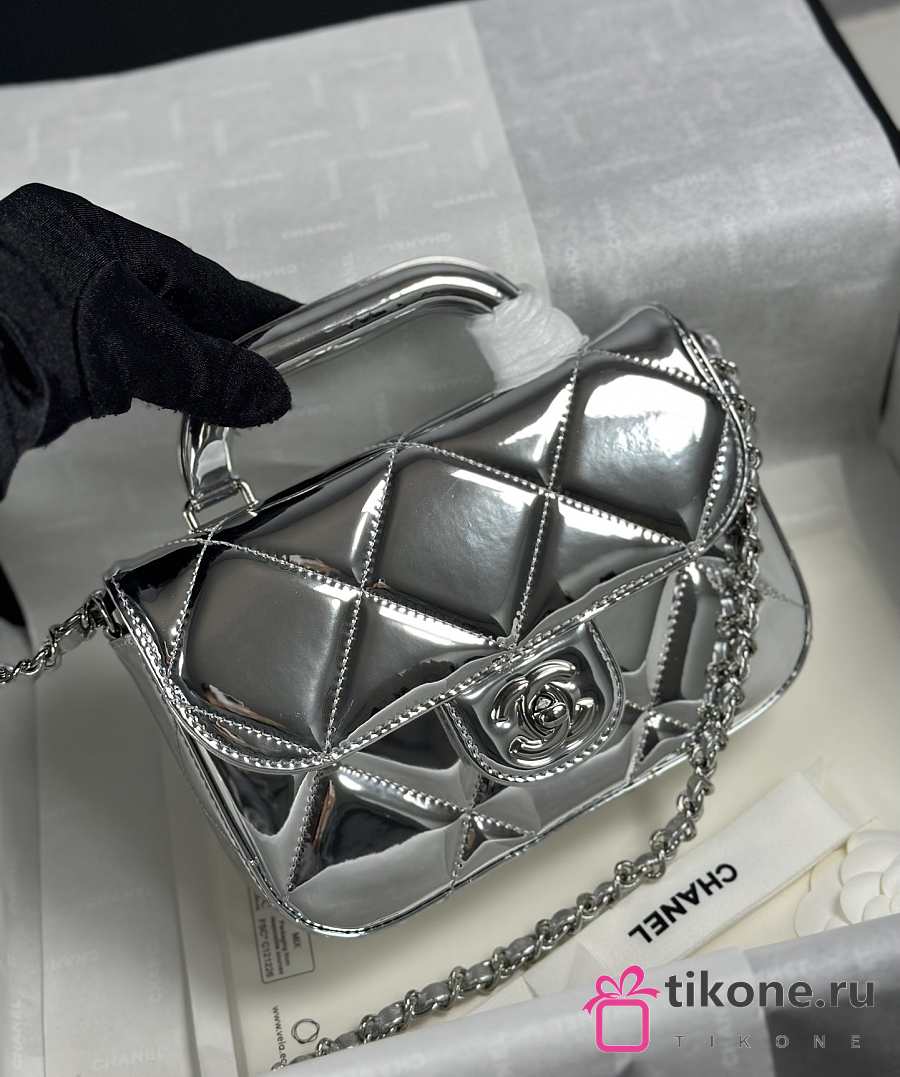 Chanel Mini Flap Bag with Top Handle Metallic Mirror Calfskin & Silver Tone Metal Silver - 18.5x13x4.5cm