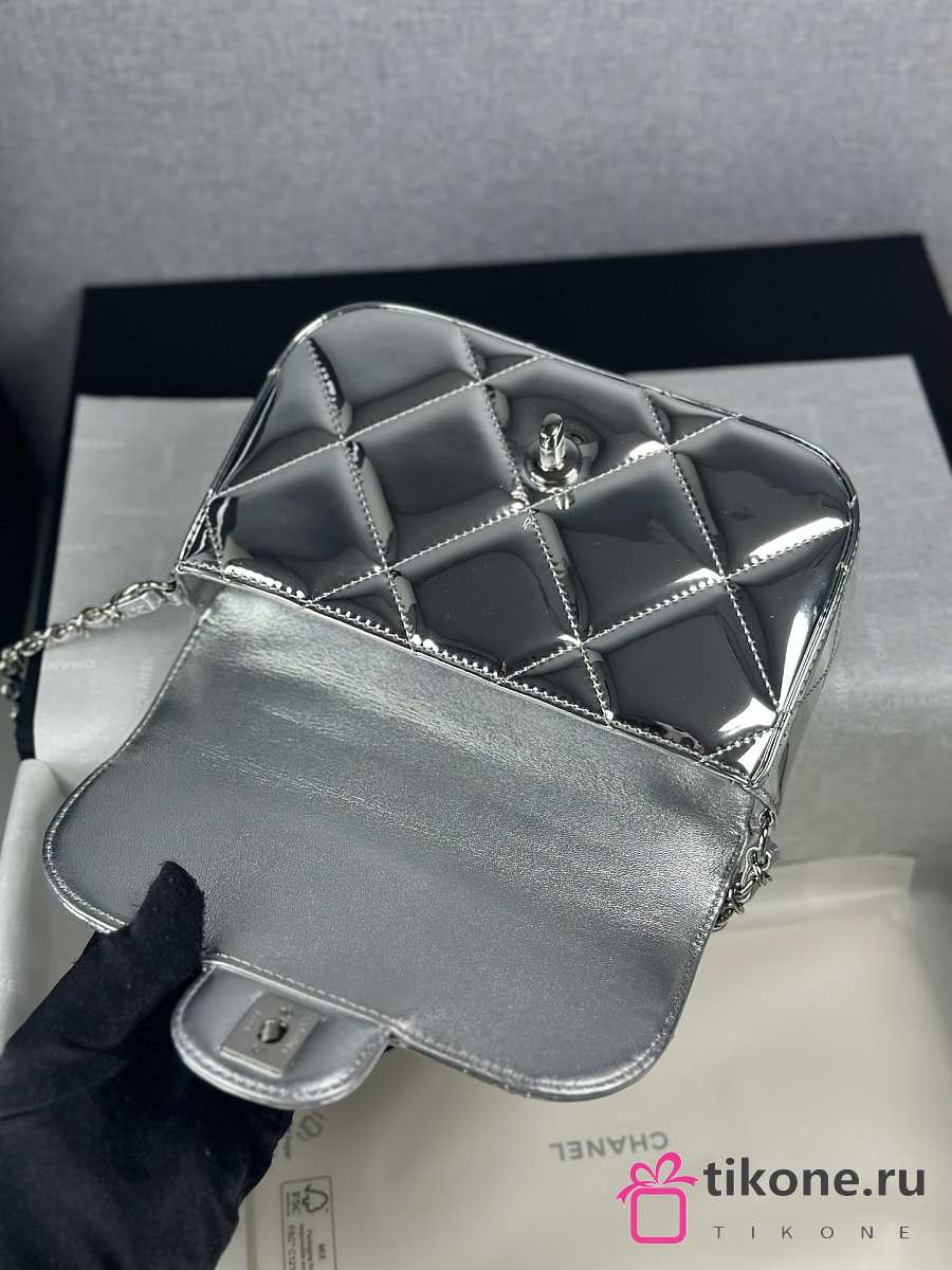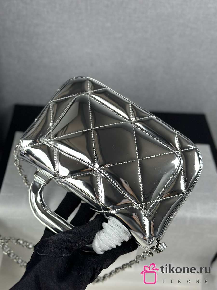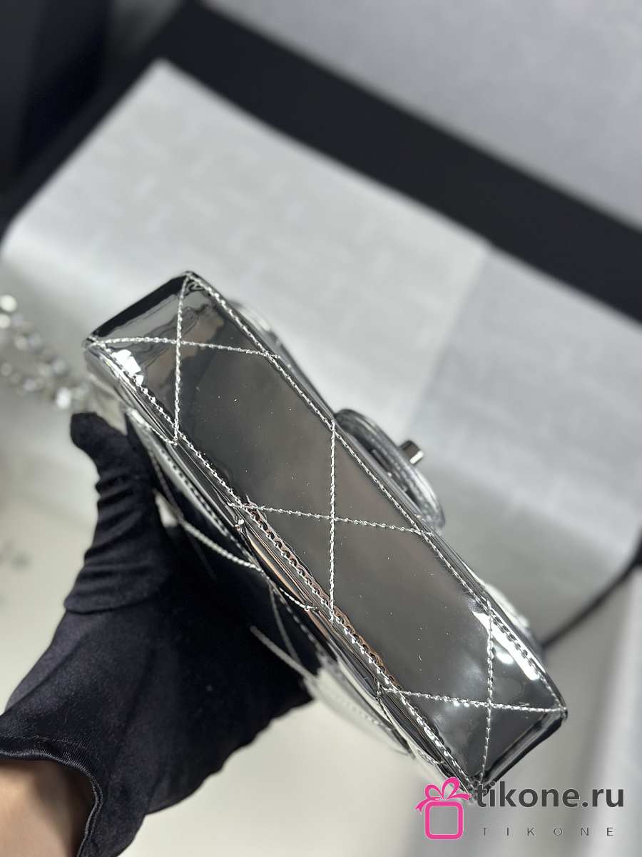 Chanel Mini Flap Bag with Top Handle Metallic Mirror Calfskin & Silver Tone Metal Silver - 18.5x13x4.5cm