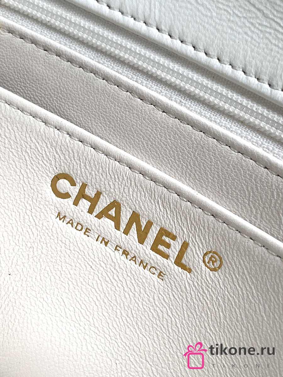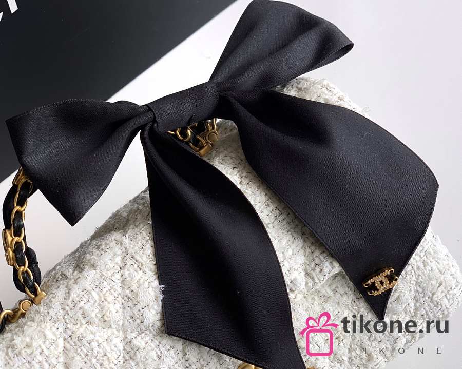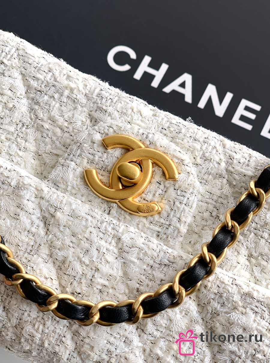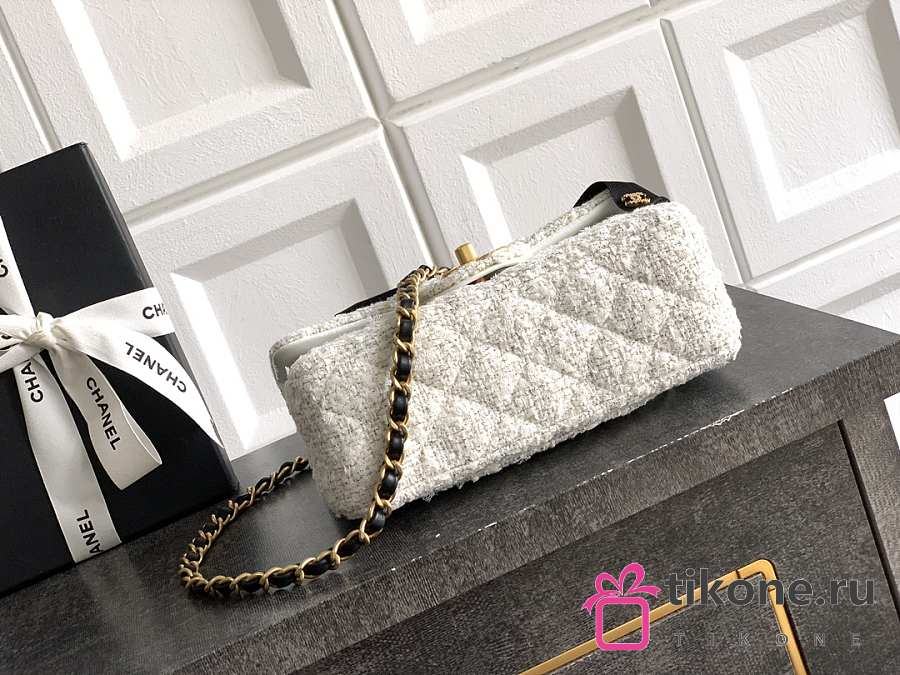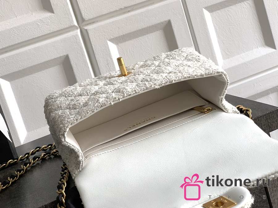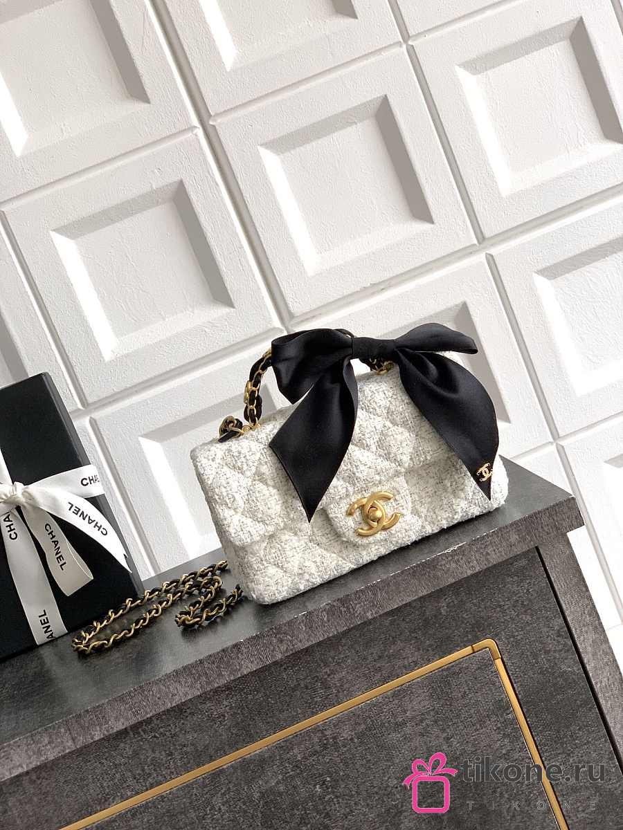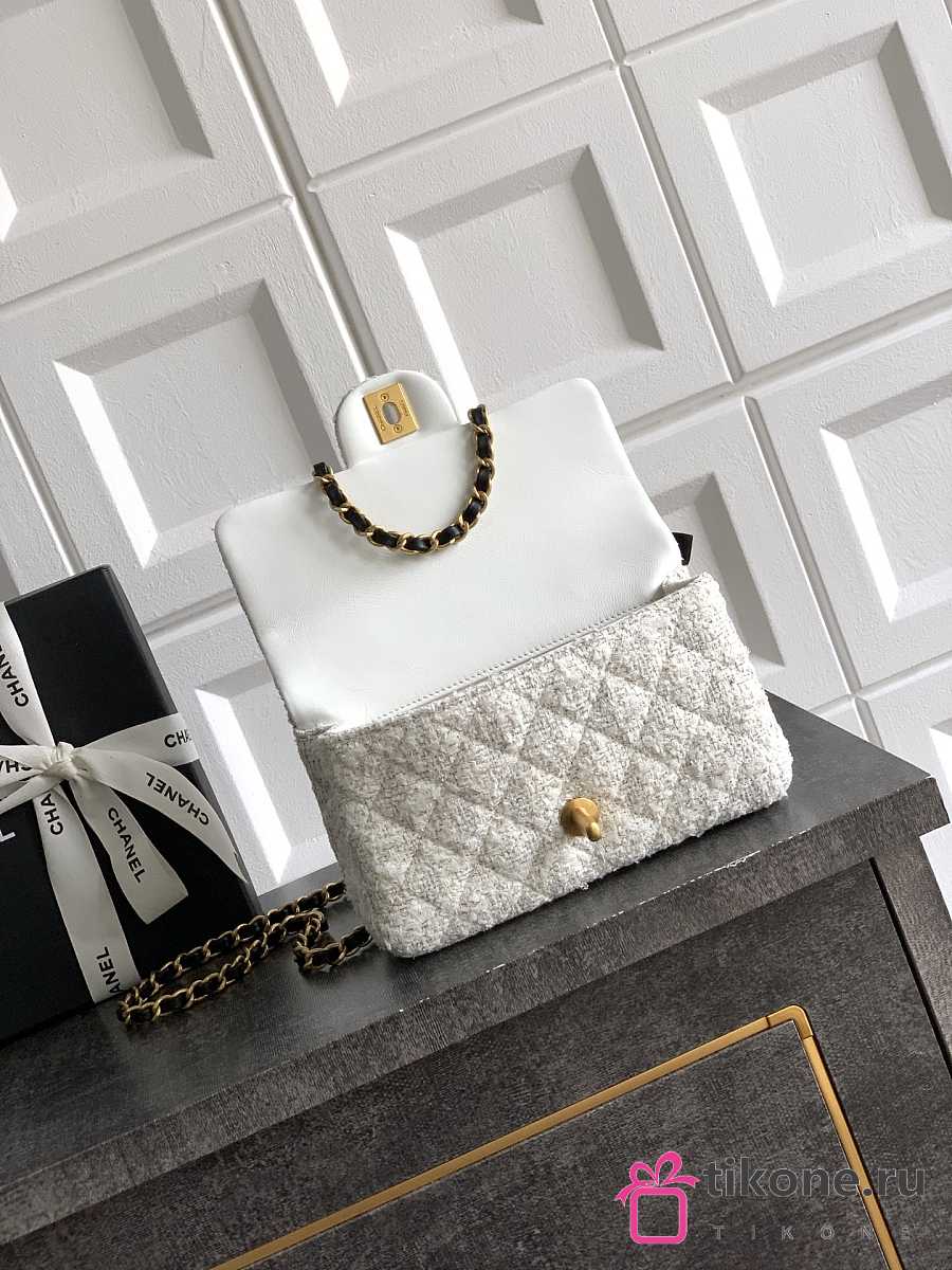 Chanel Mini Flap Bag with Top Handle Tweed, Silk & Gold Tone Metal White & Black - 20x13x6cm