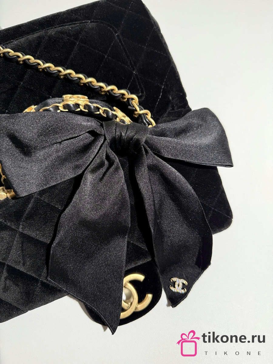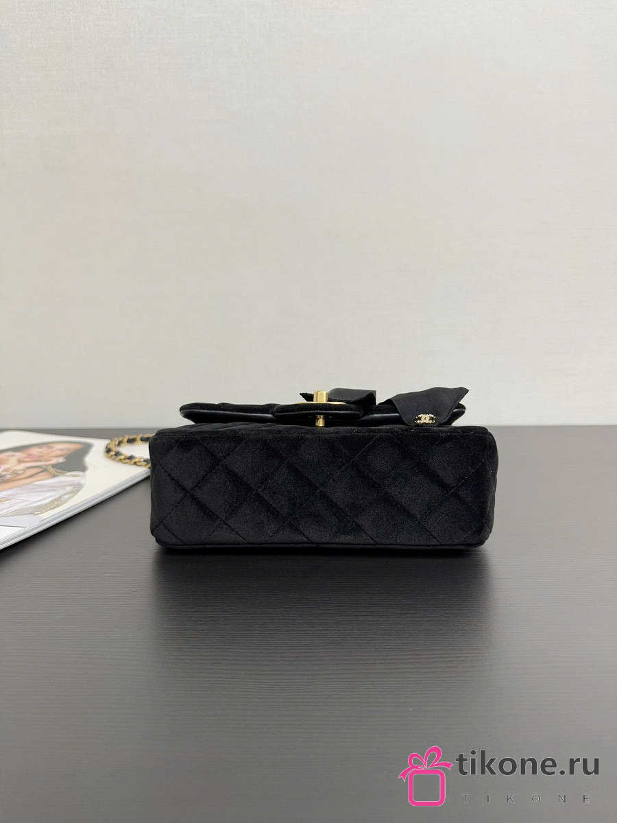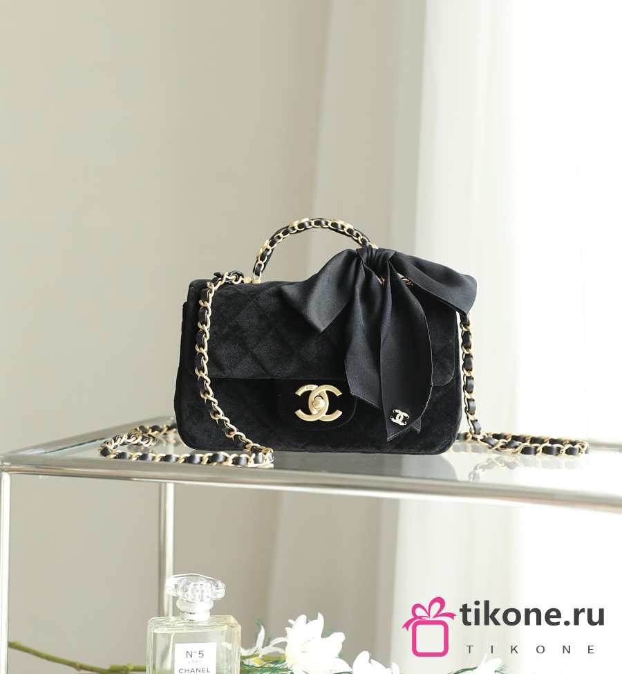 Chanel Mini Flap Bag with Top Handle Velvet Silk & Gold Tone Metal Black - 20x13x6cm