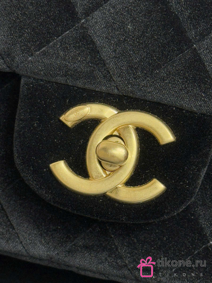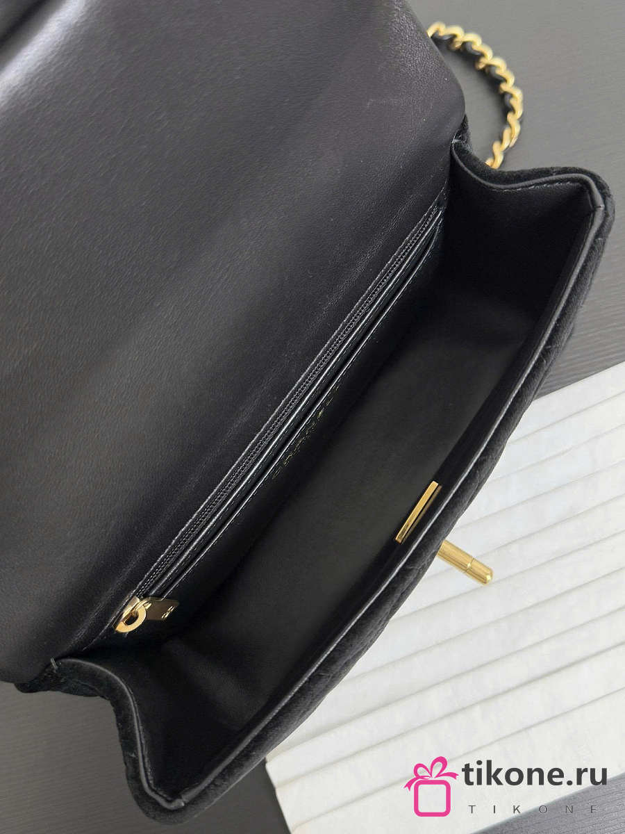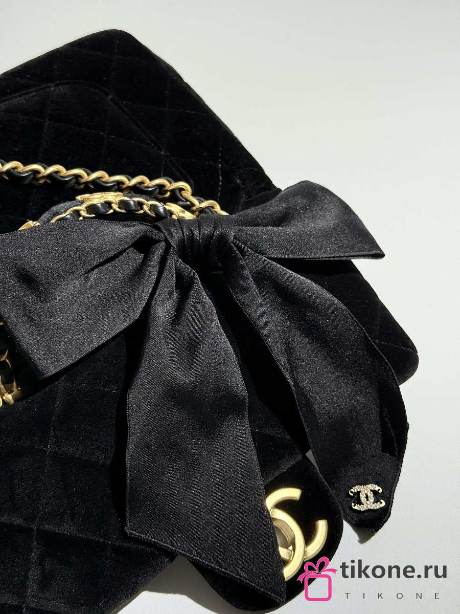 Chanel Mini Flap Bag with Top Handle Velvet Silk & Gold Tone Metal Black - 20x13x6cm
