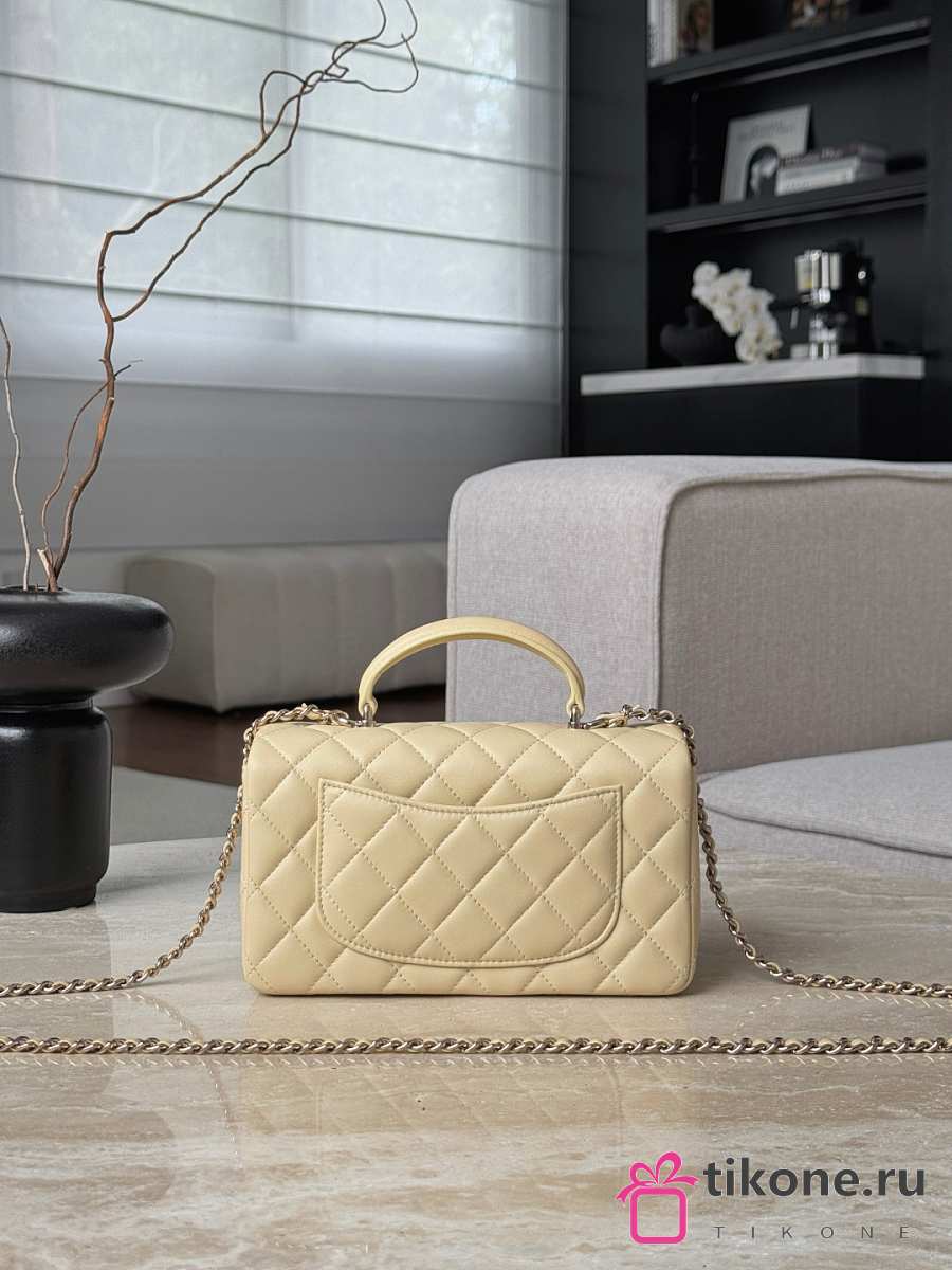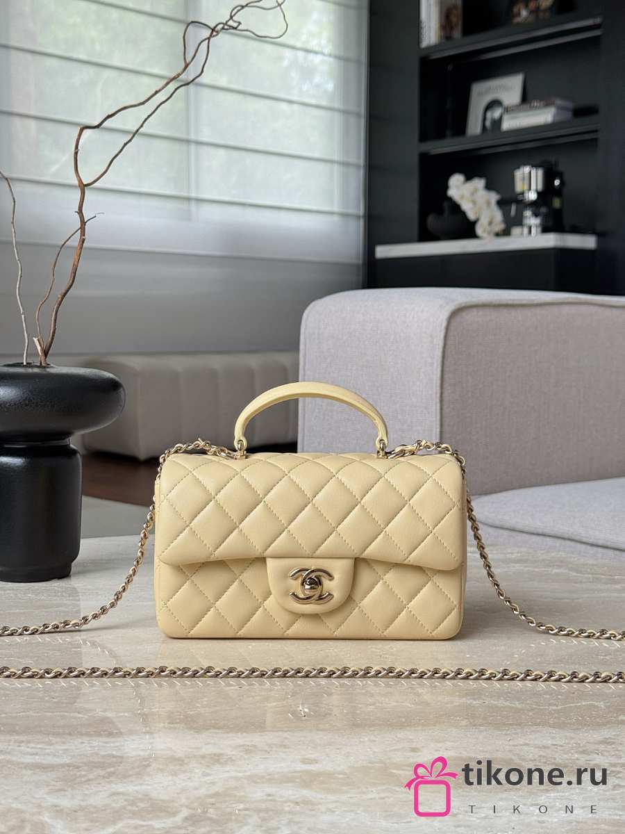 Chanel Mini Flap Top Handle Light Yellow Lambskin Light Gold Hardware - 12x20x6.5cm