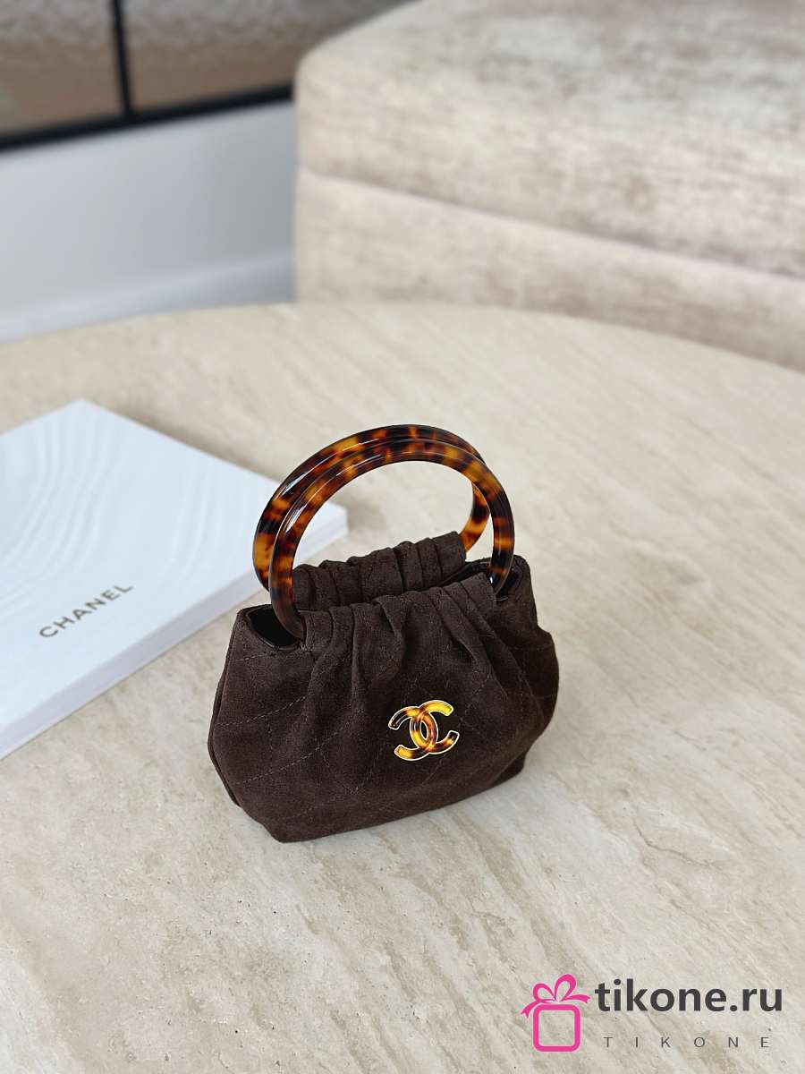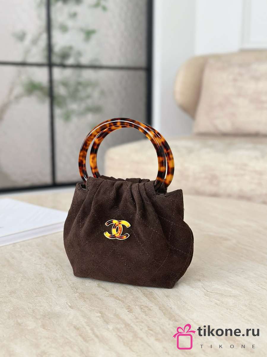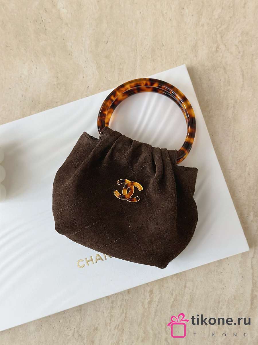 Chanel Mini Hobo Bag Suede Calfskin Turtoise Shell Effect Plexi & Gold Tone Metal Brown - 12x9x5cm