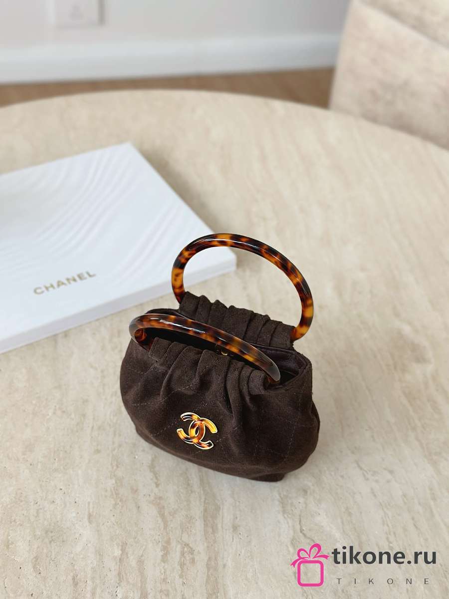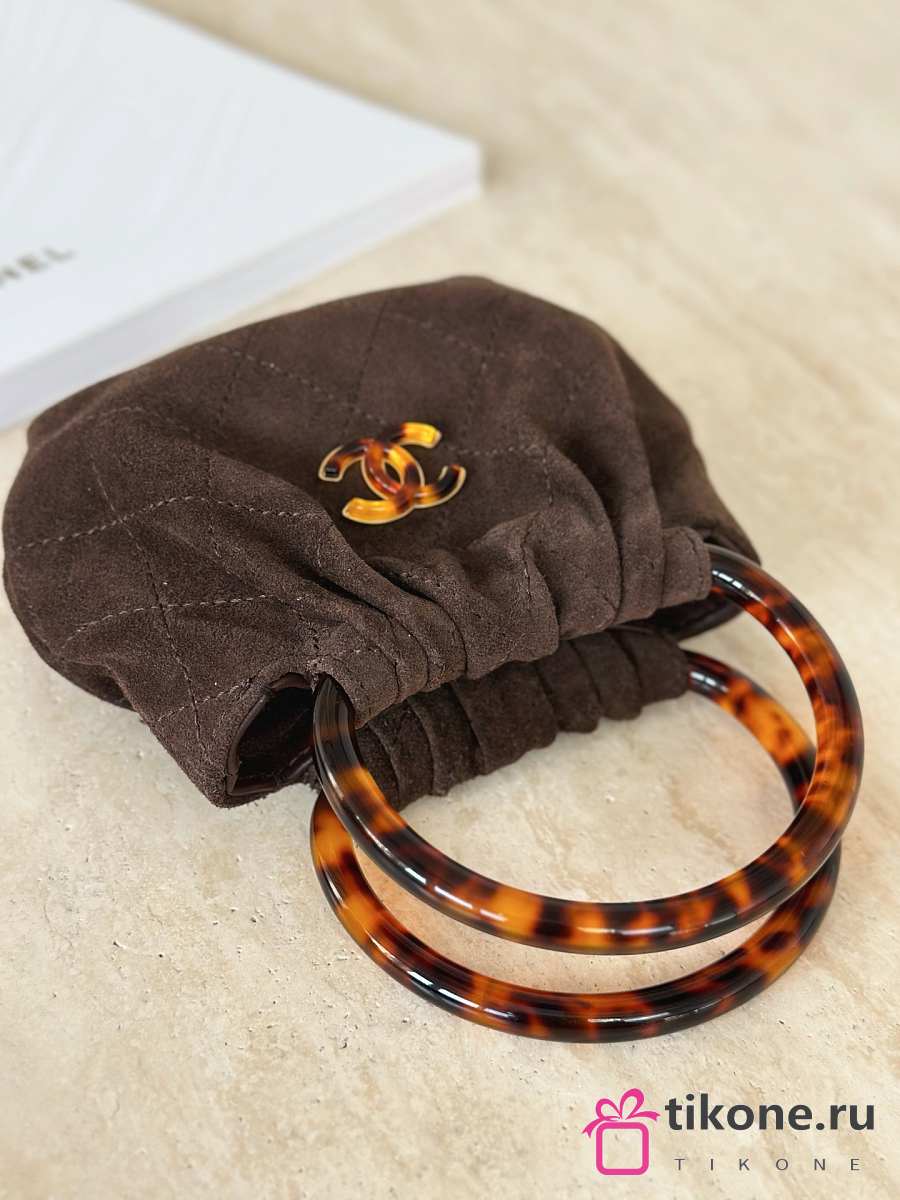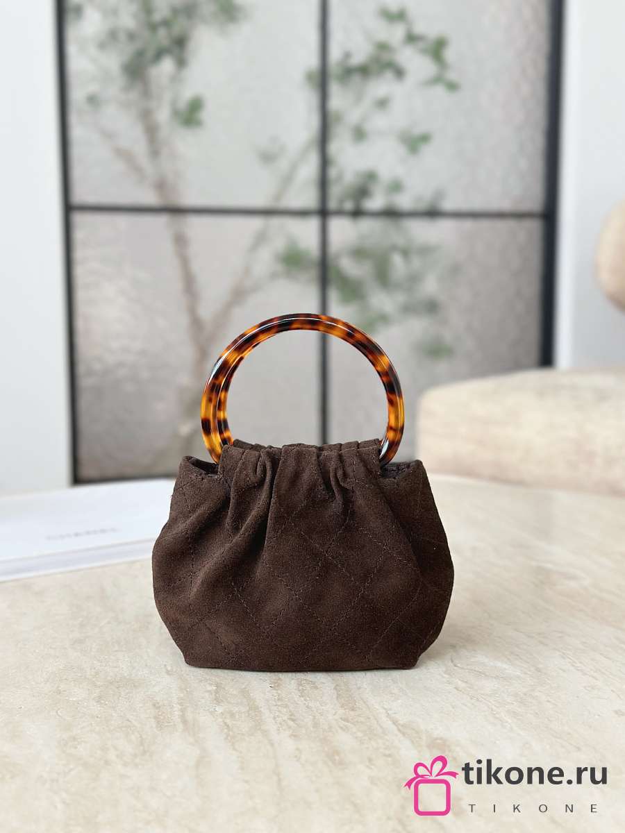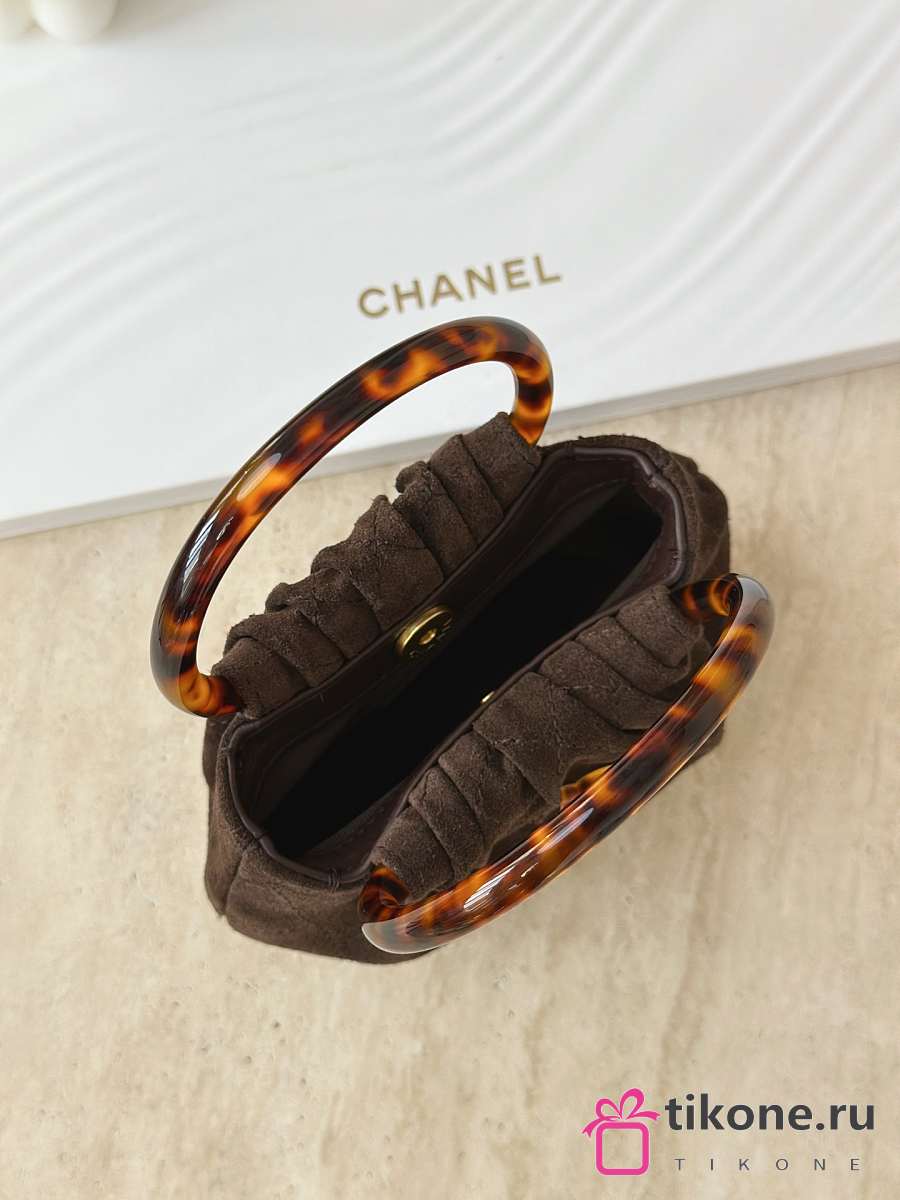 Chanel Mini Hobo Bag Suede Calfskin Turtoise Shell Effect Plexi & Gold Tone Metal Brown - 12x9x5cm