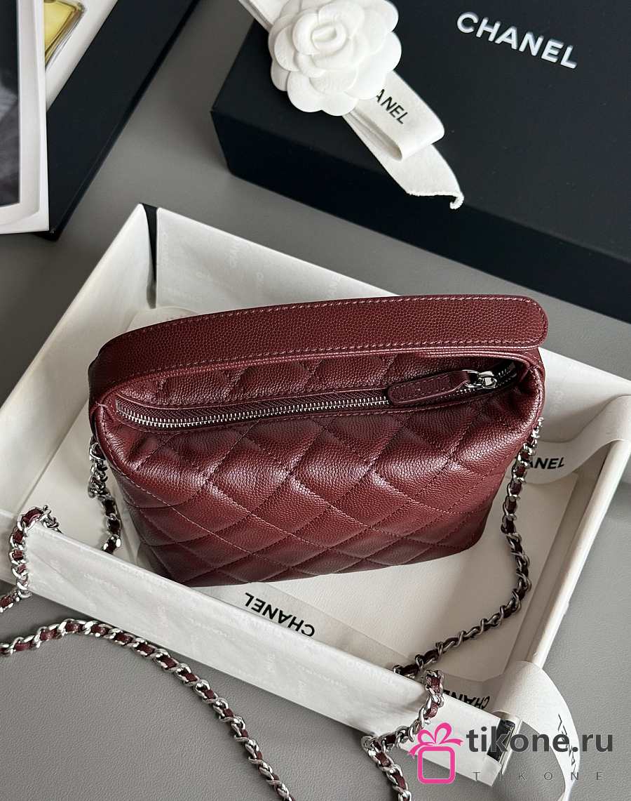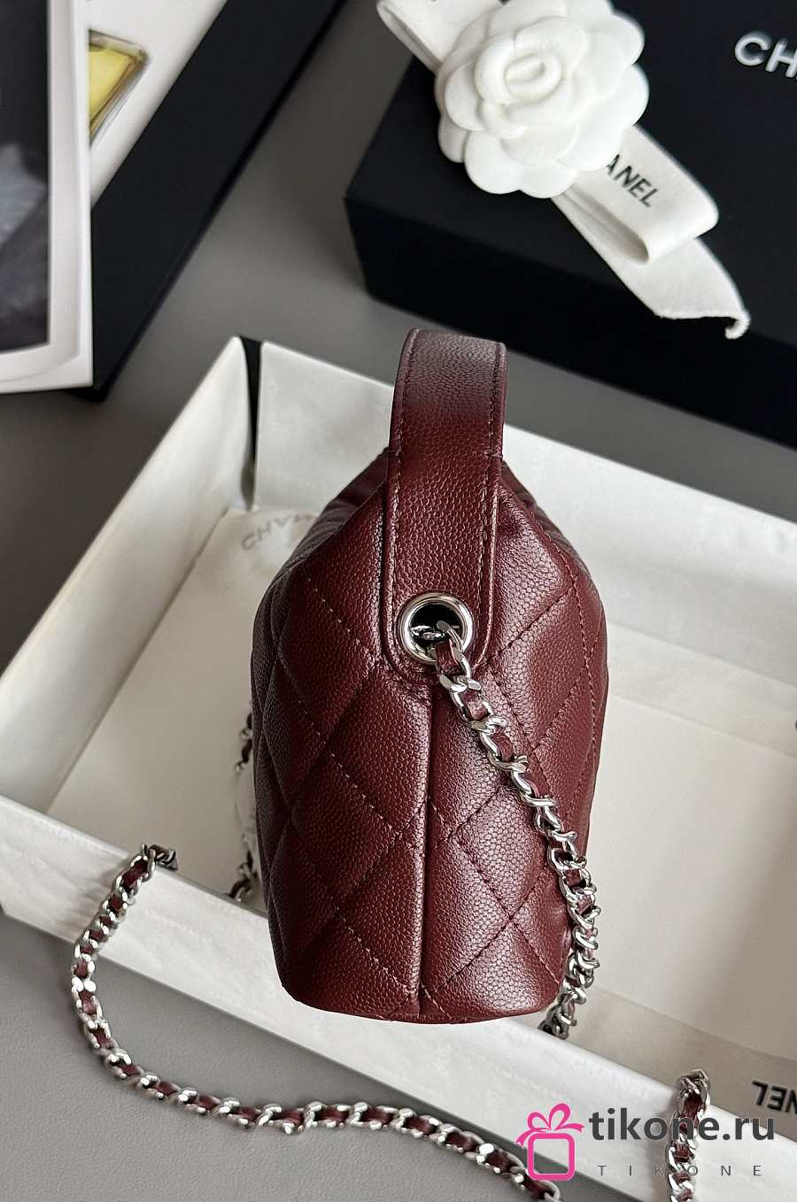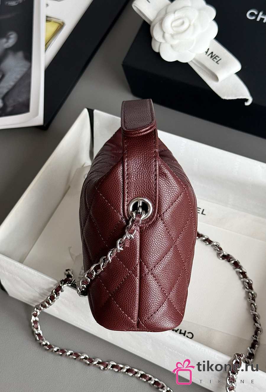 Chanel Mini Hobo Shiny Grained Calfskin Strass & Silver Tone Metal Burgundy - 21.5x19x6cm