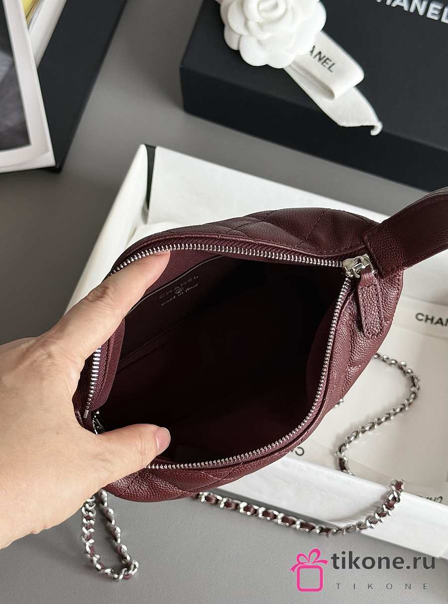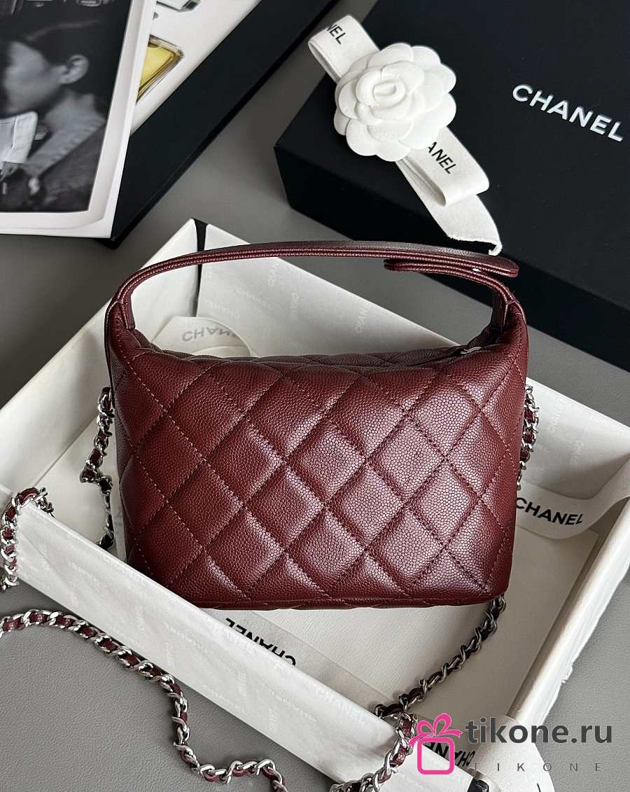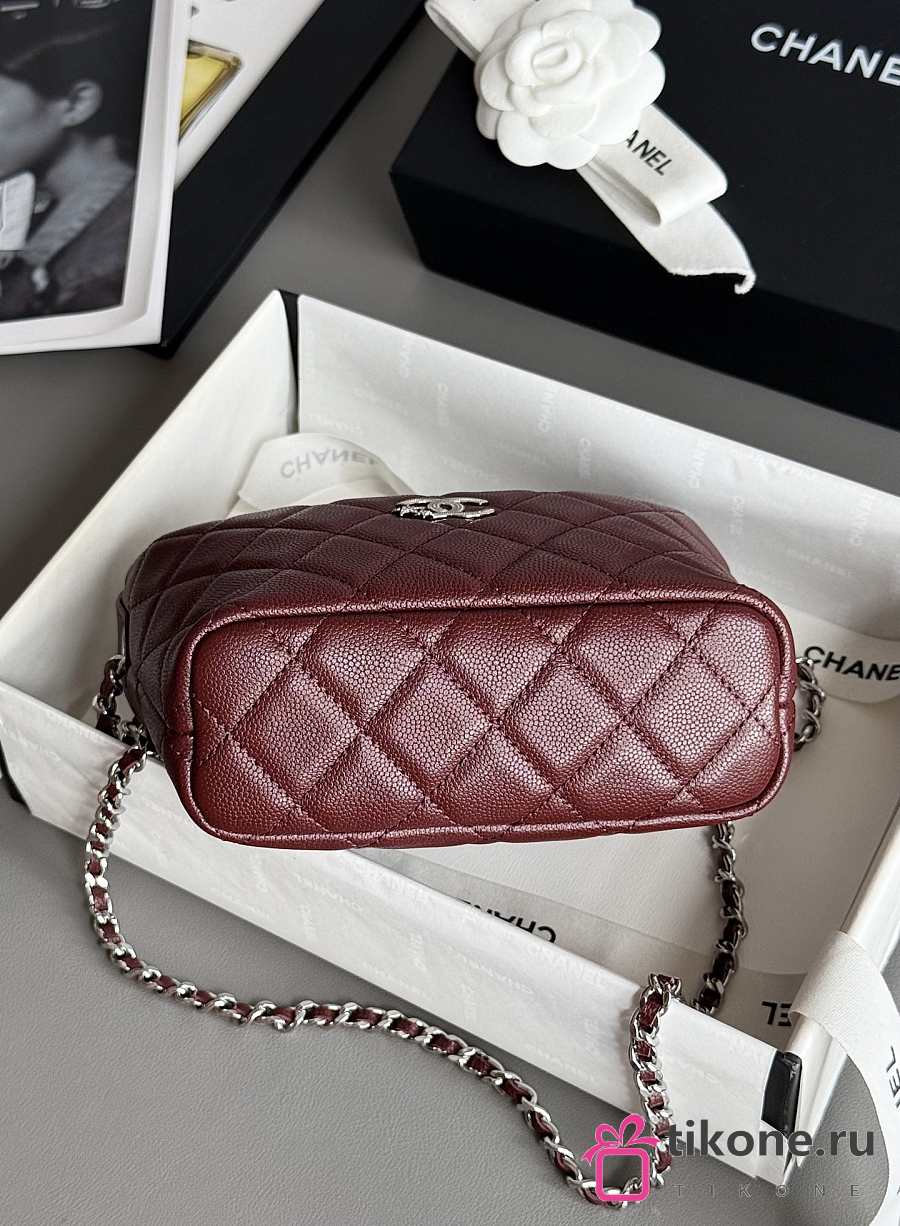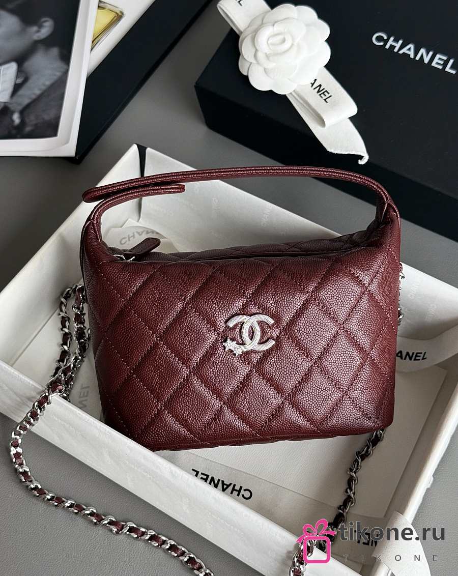 Chanel Mini Hobo Shiny Grained Calfskin Strass & Silver Tone Metal Burgundy - 21.5x19x6cm