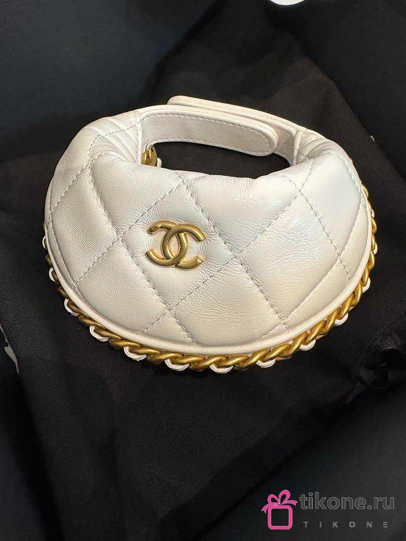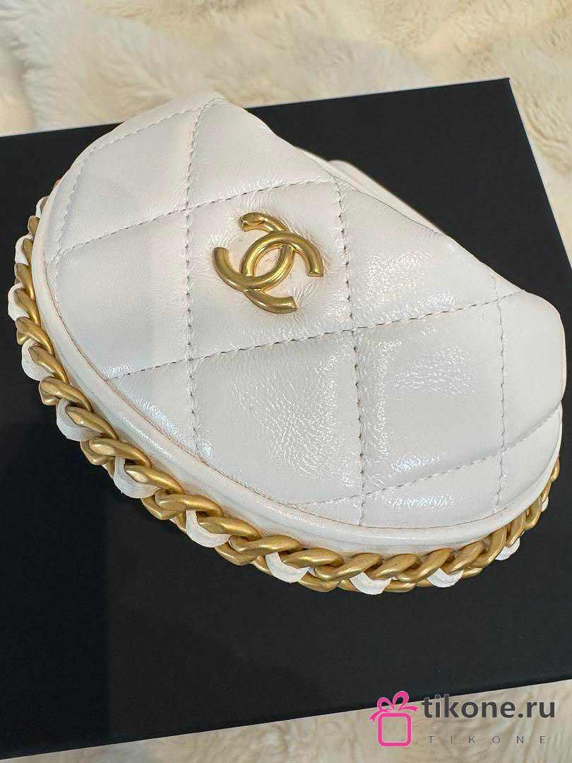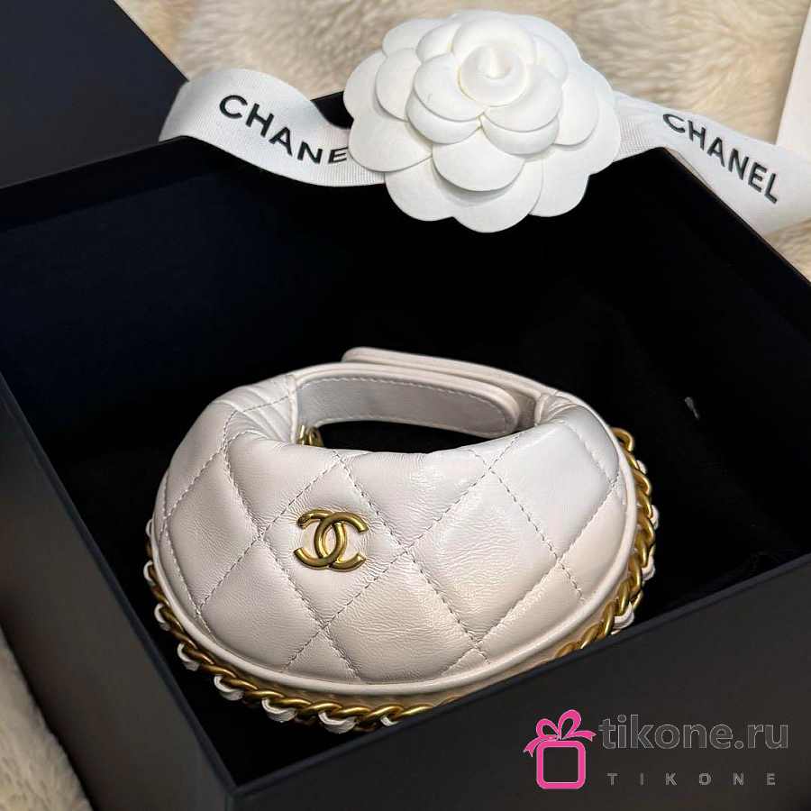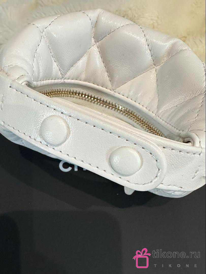 Chanel Mini Pouch Shiny Crumpled Lambskin & Gold Tone Metal White - 12x13x8cm