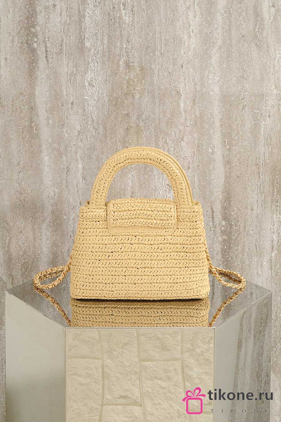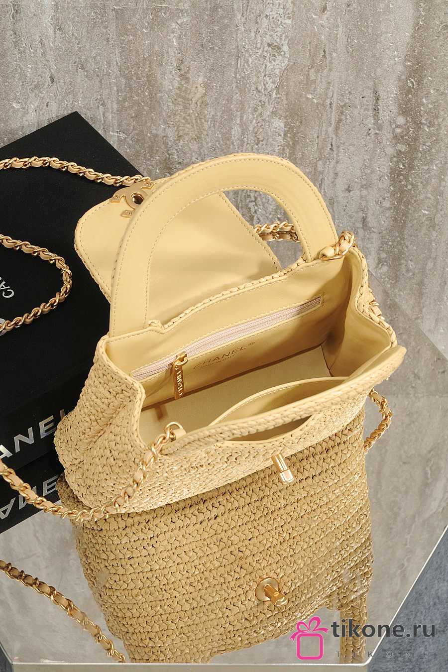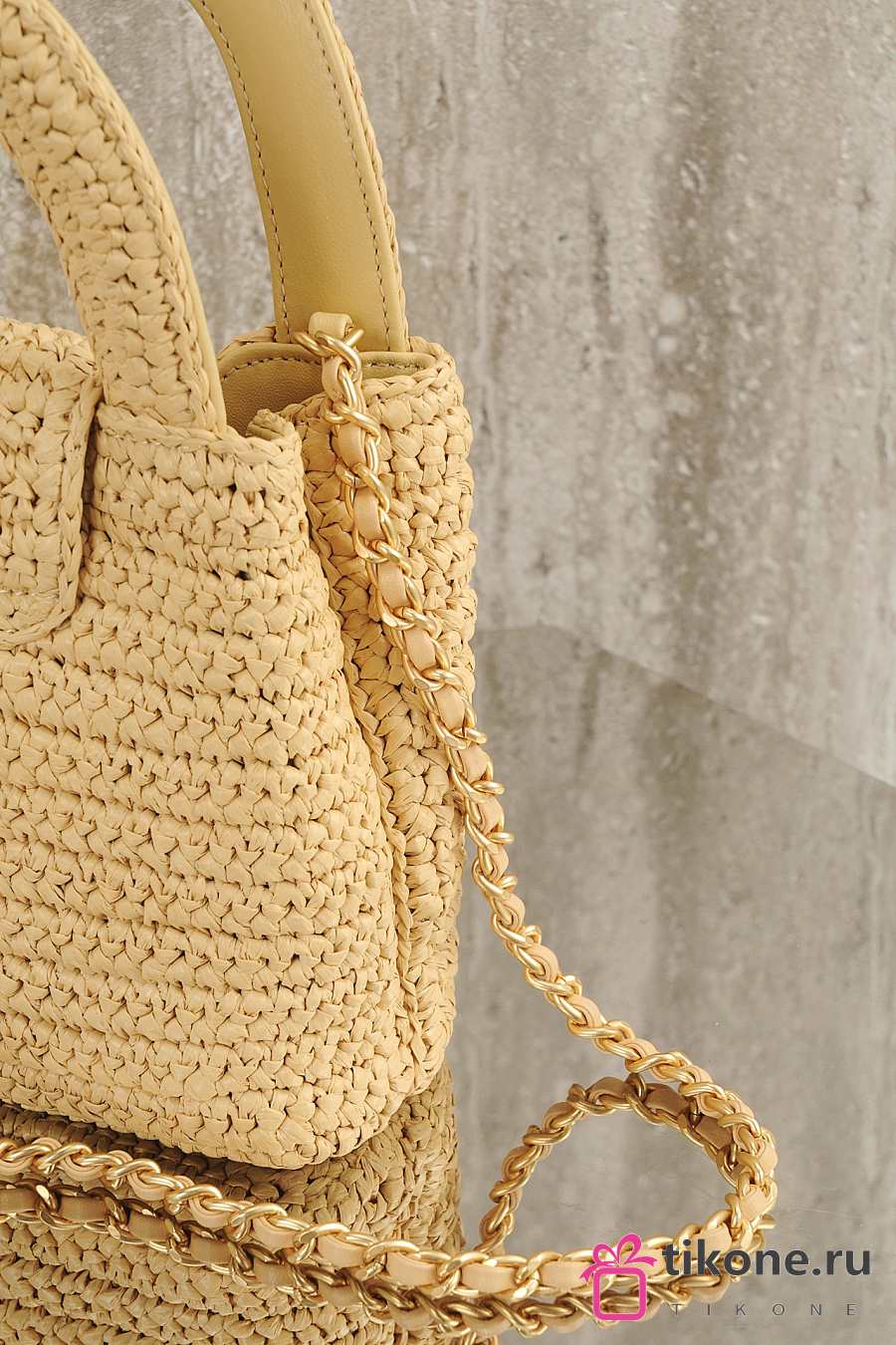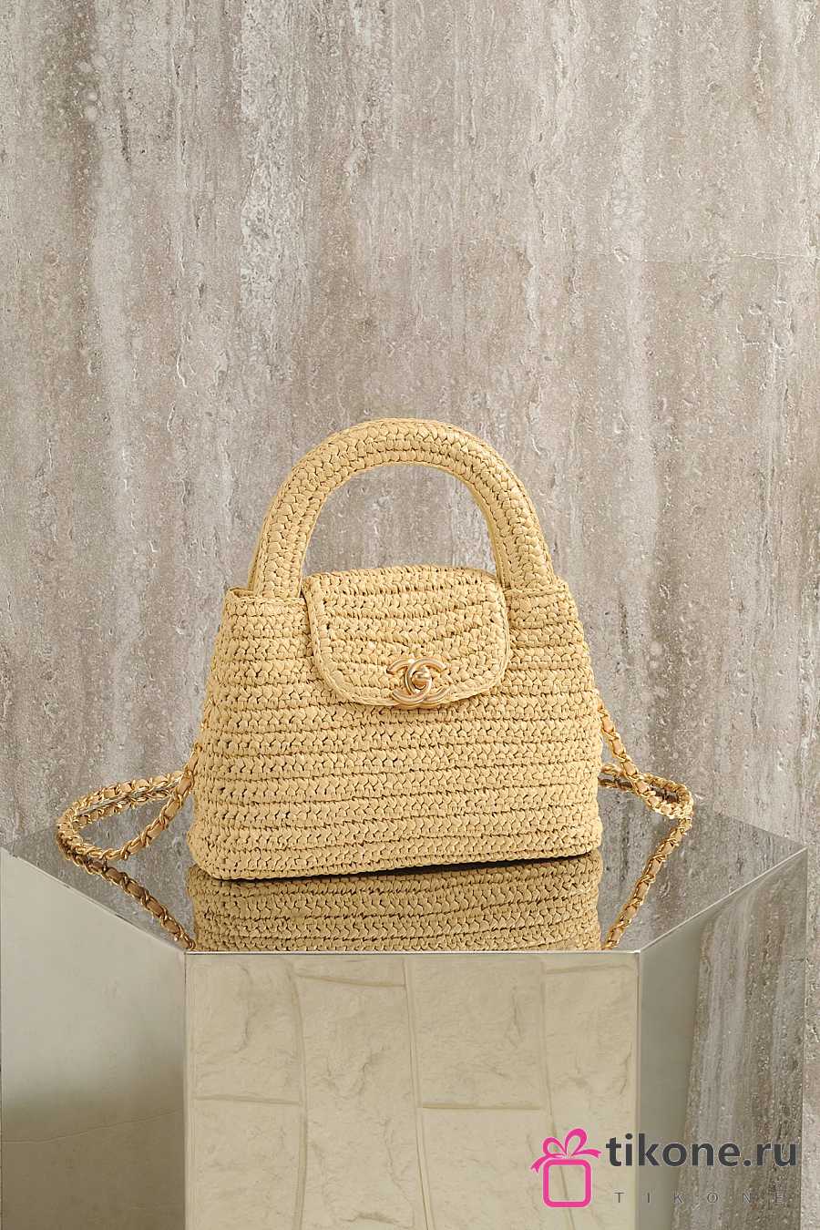 Chanel Mini Shopping Bag Braided Raffia & Gold Tone Metal Beige - 19x13x7cm