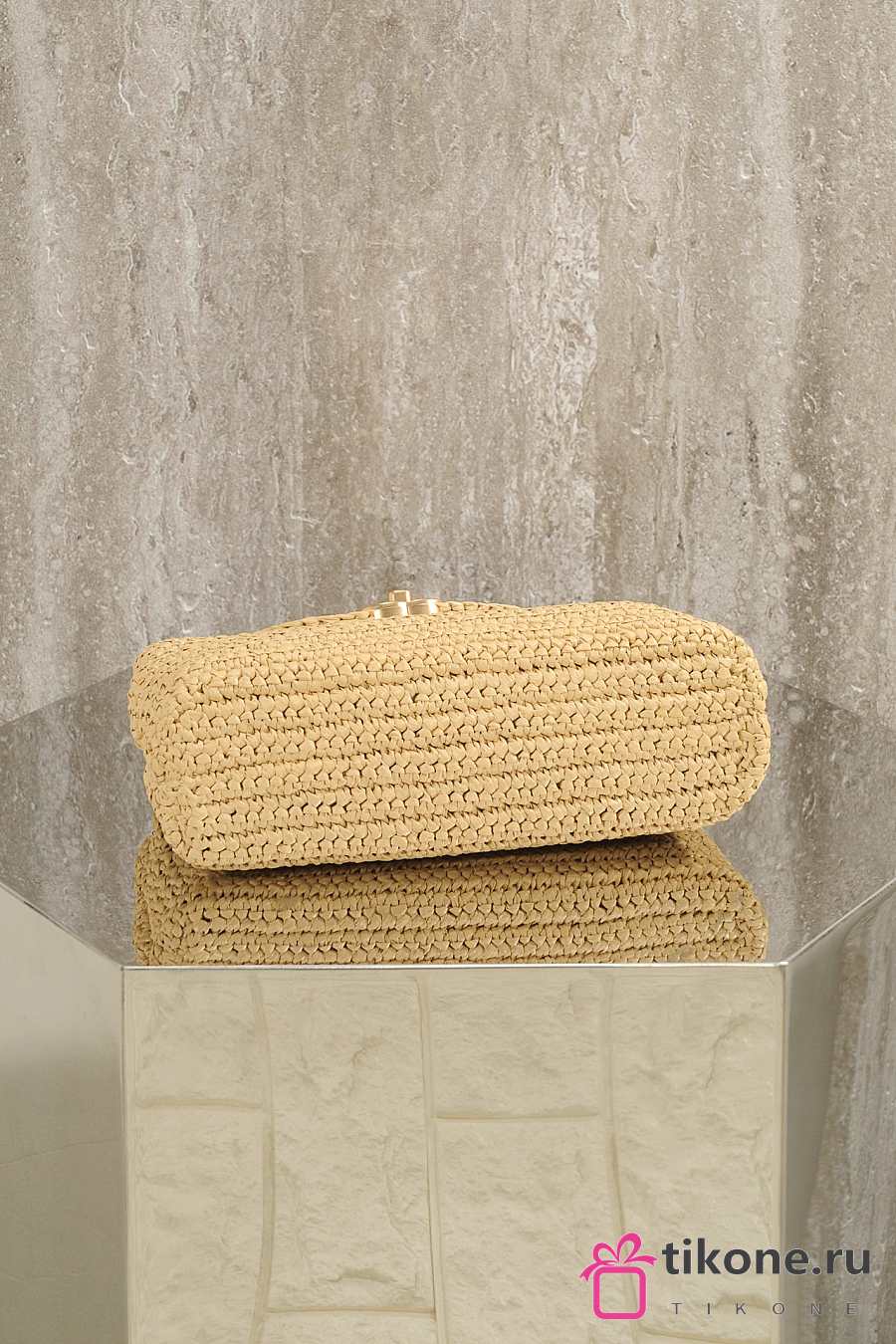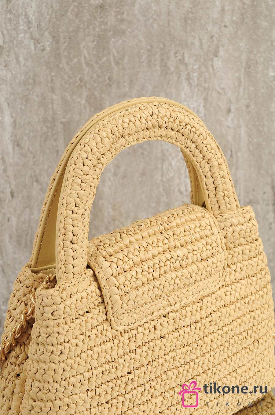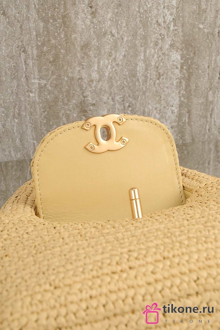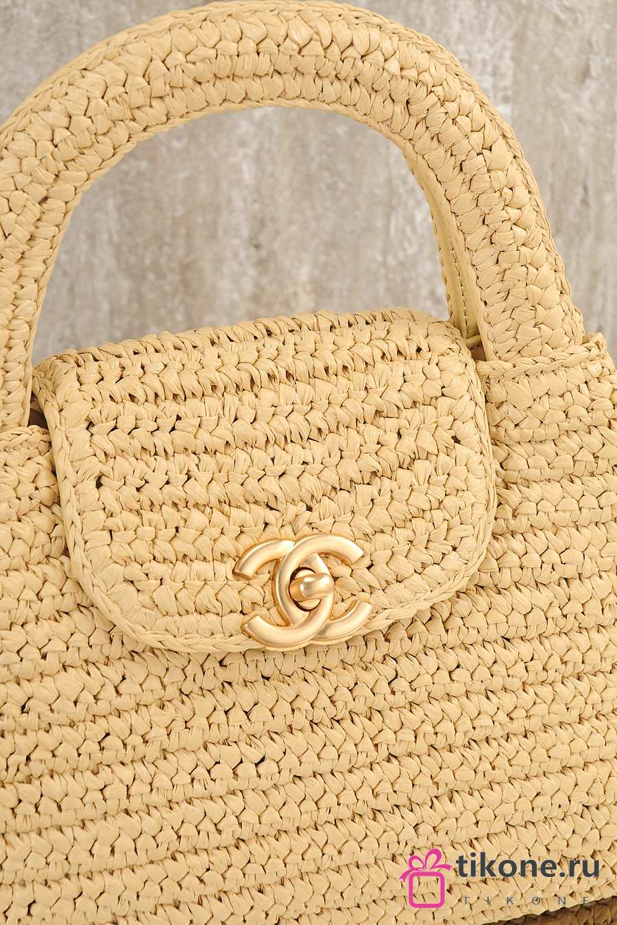 Chanel Mini Shopping Bag Braided Raffia & Gold Tone Metal Beige - 19x13x7cm