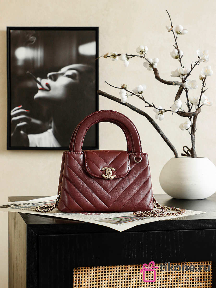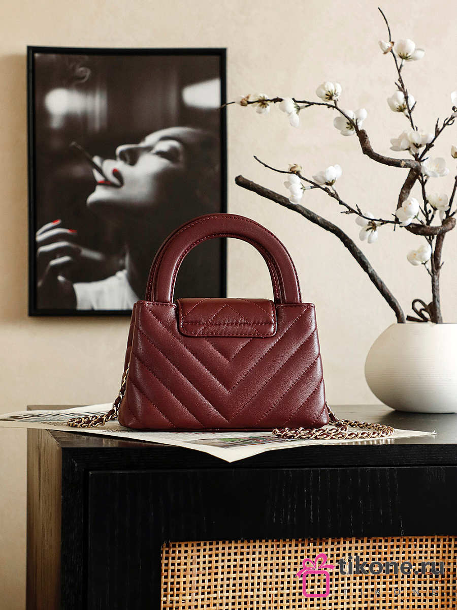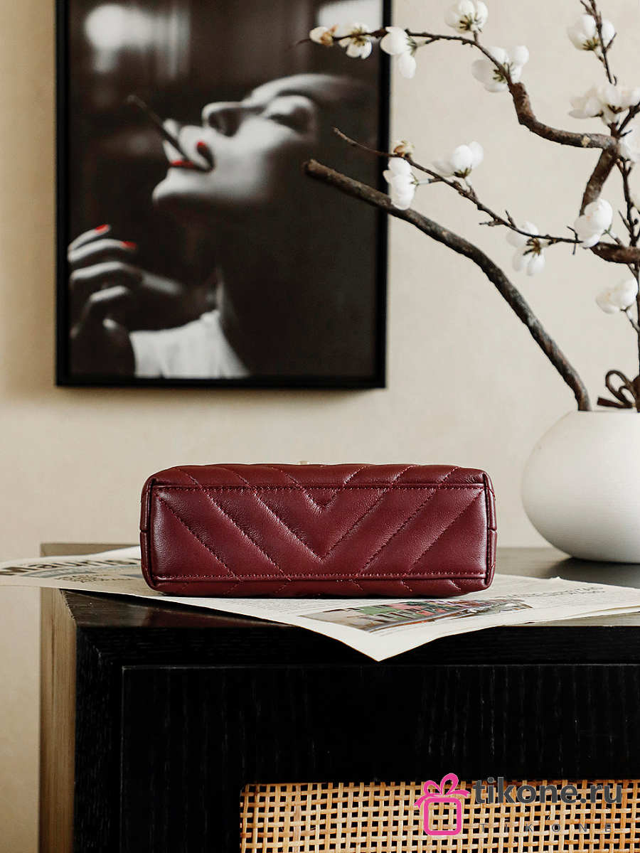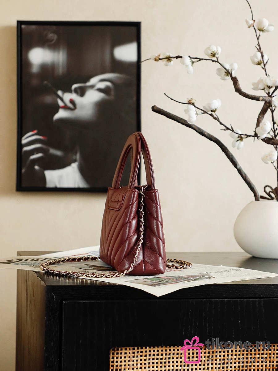Chanel Mini Shopping Bag Shiny Lambskin & Gold-Tone Metal Burgundy - 19x13x7cm