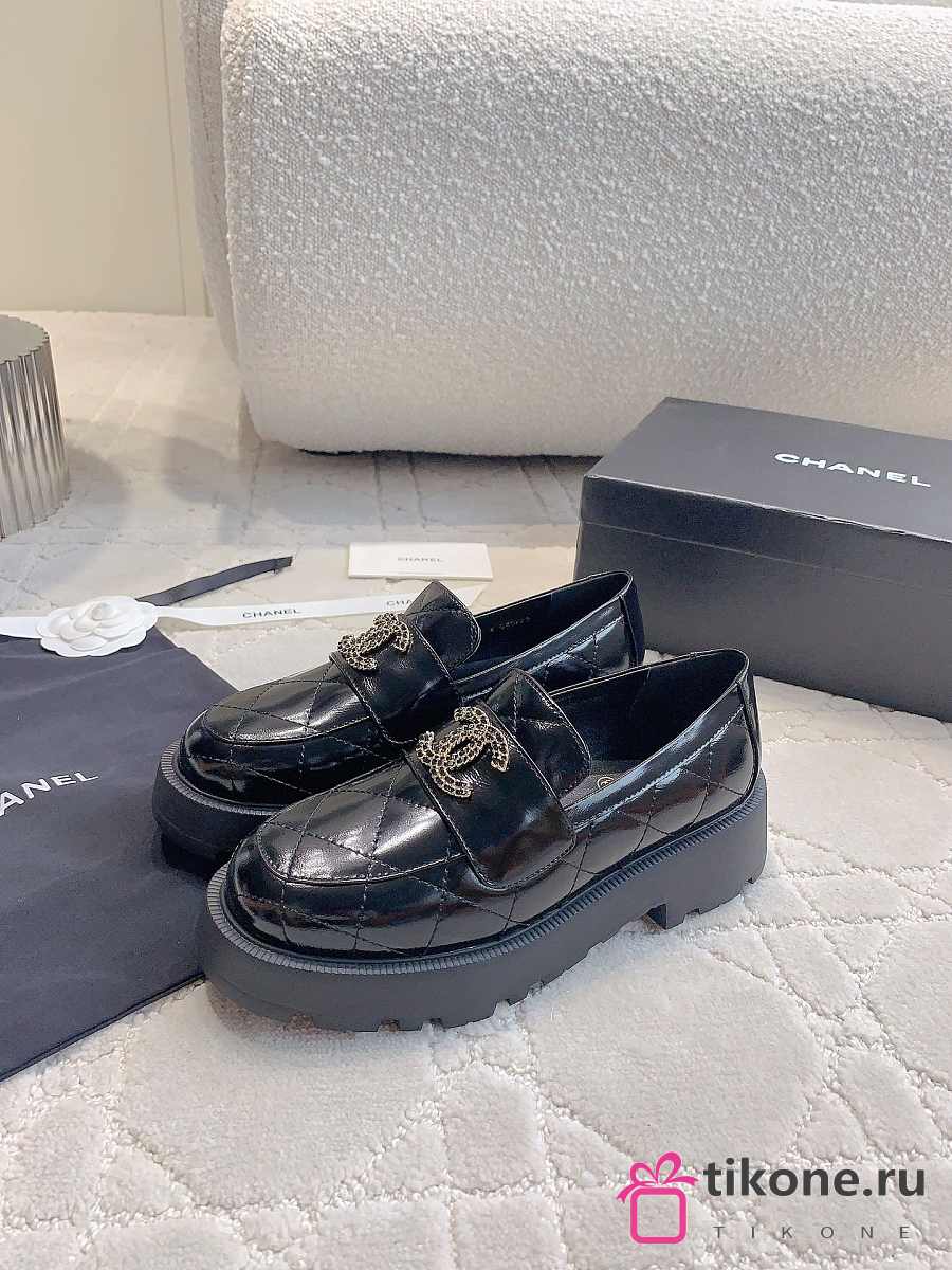 Chanel Moccasins Shiny Lamskin Black 4cm