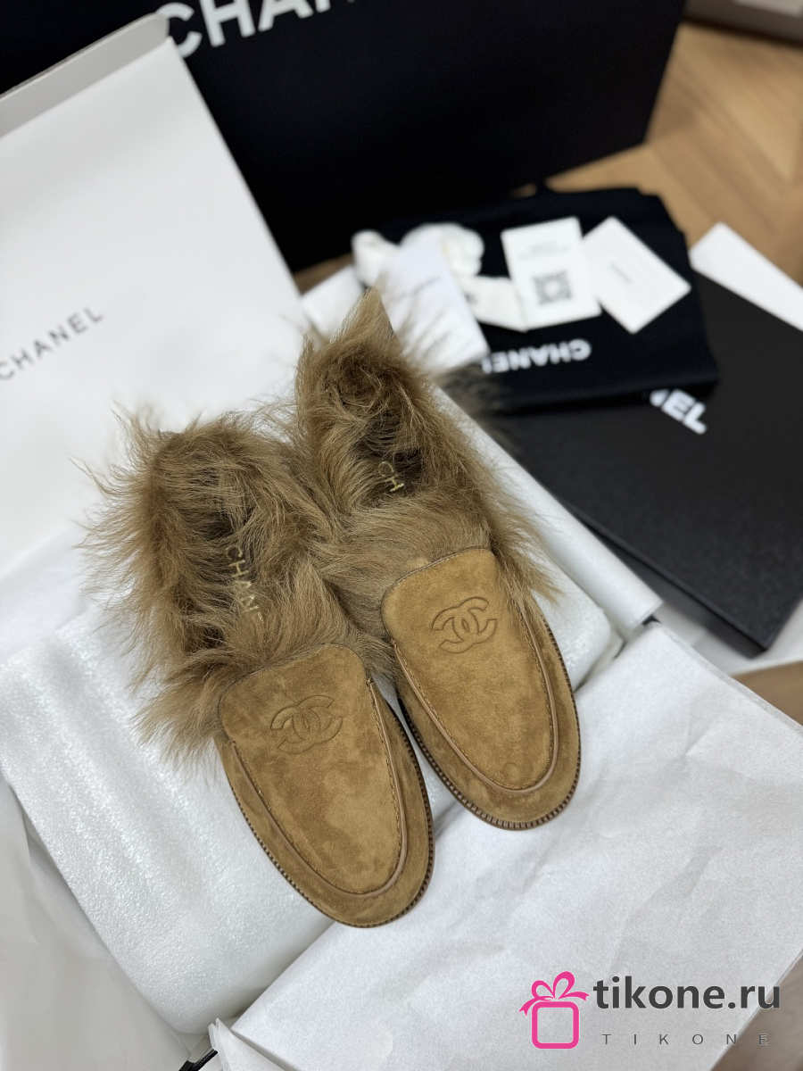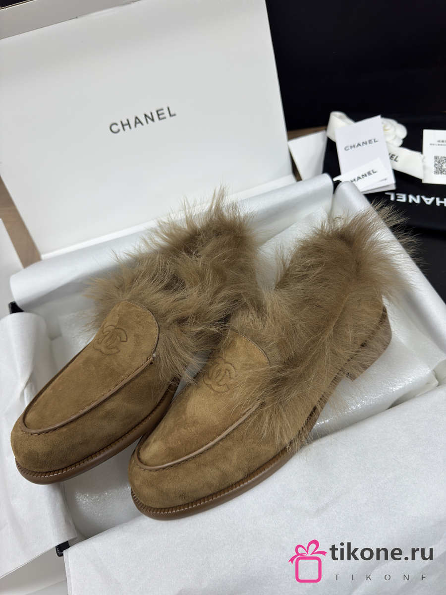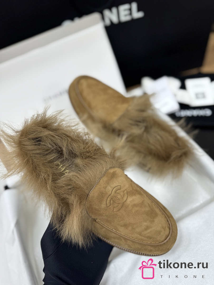 Chanel Moccasins Suede Kidskin & Shearling Lambskin Brown