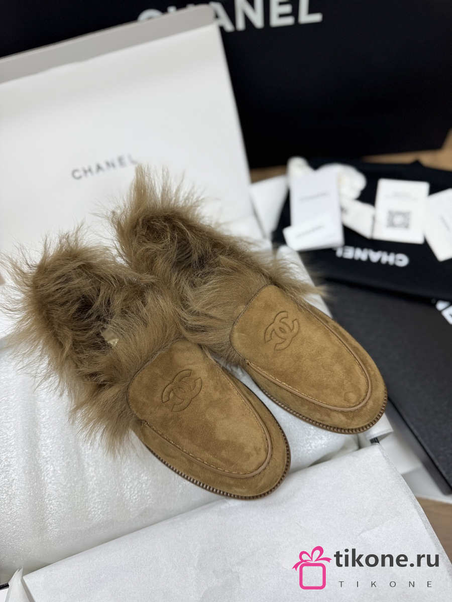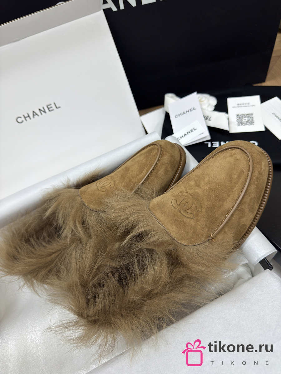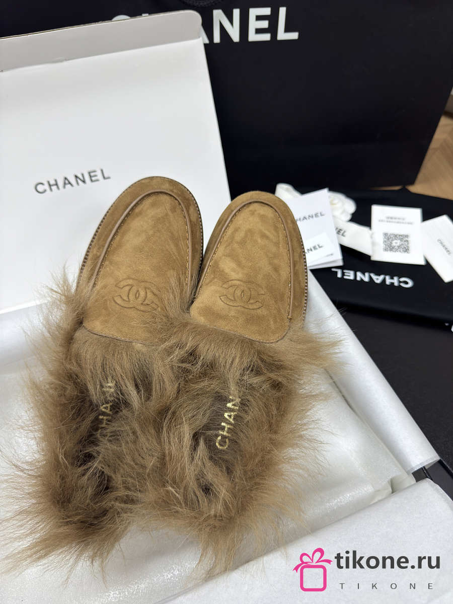 Chanel Moccasins Suede Kidskin & Shearling Lambskin Brown