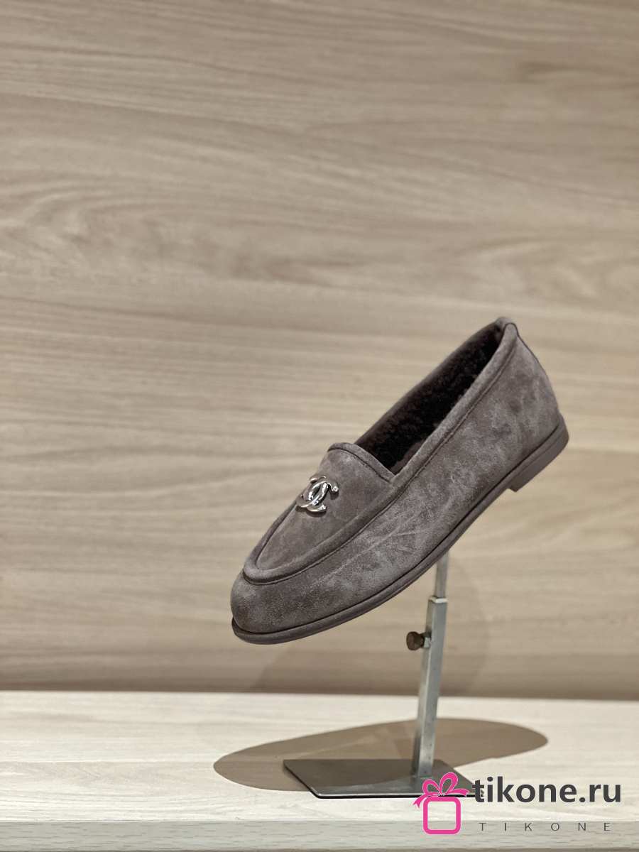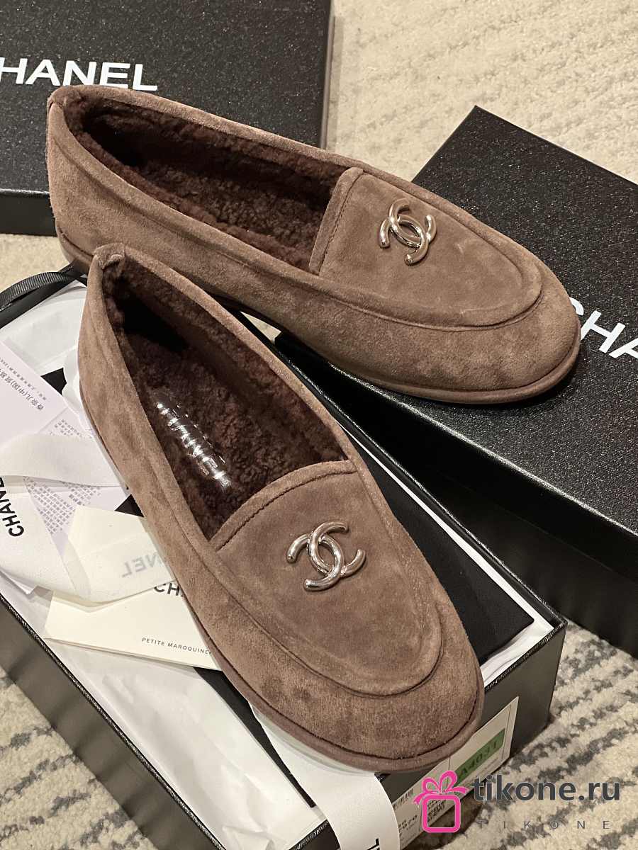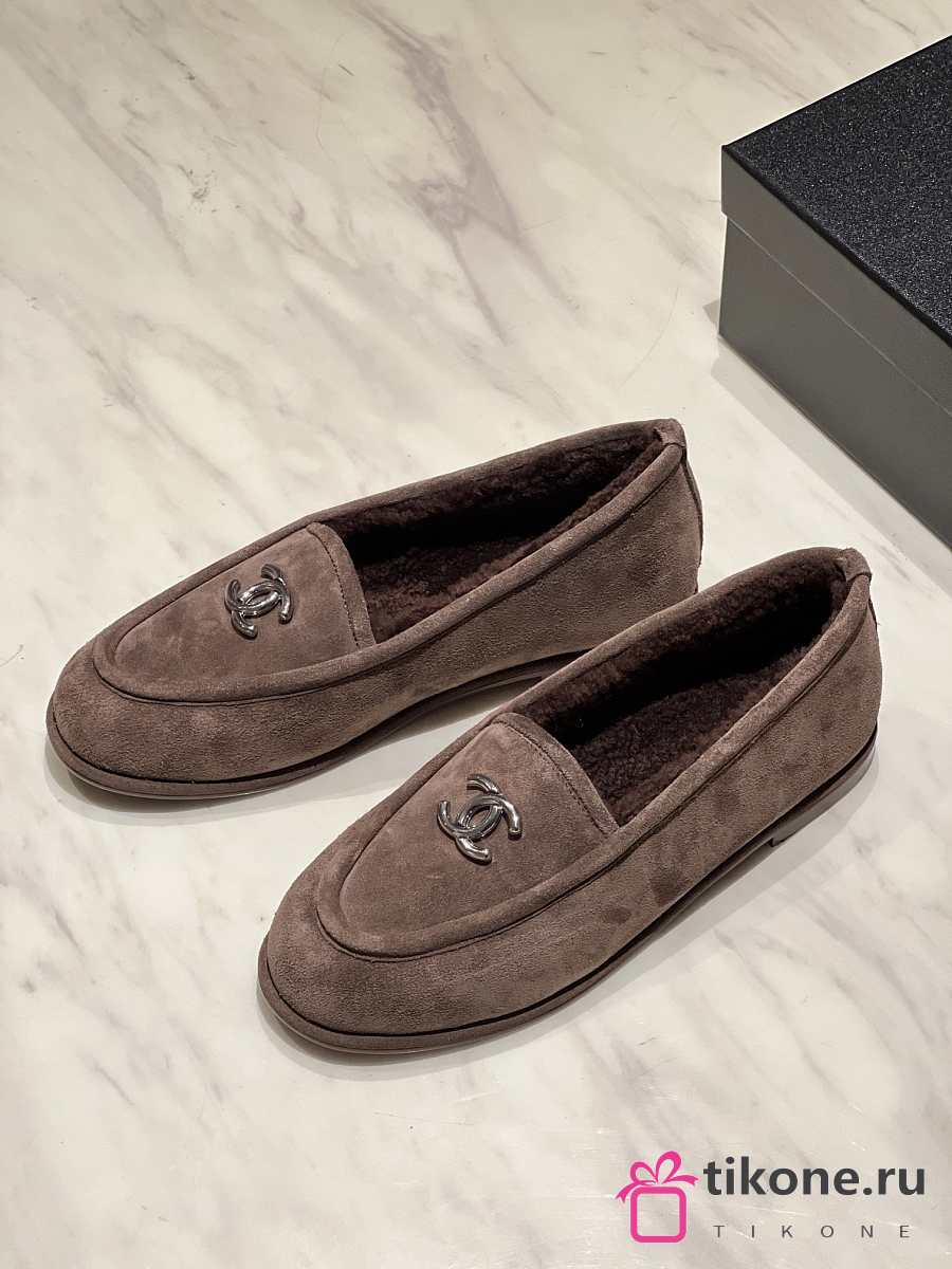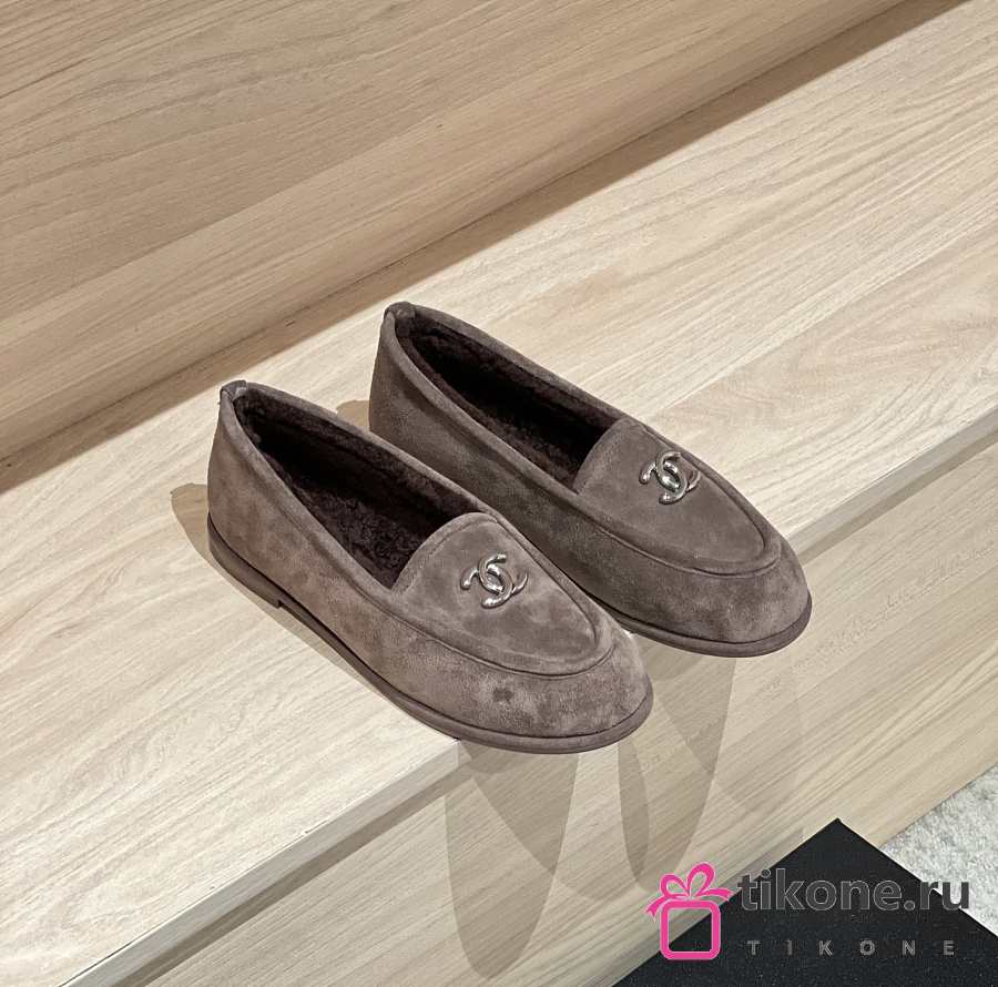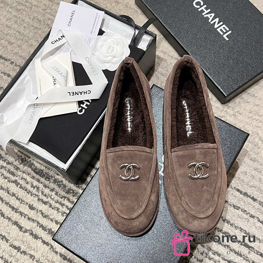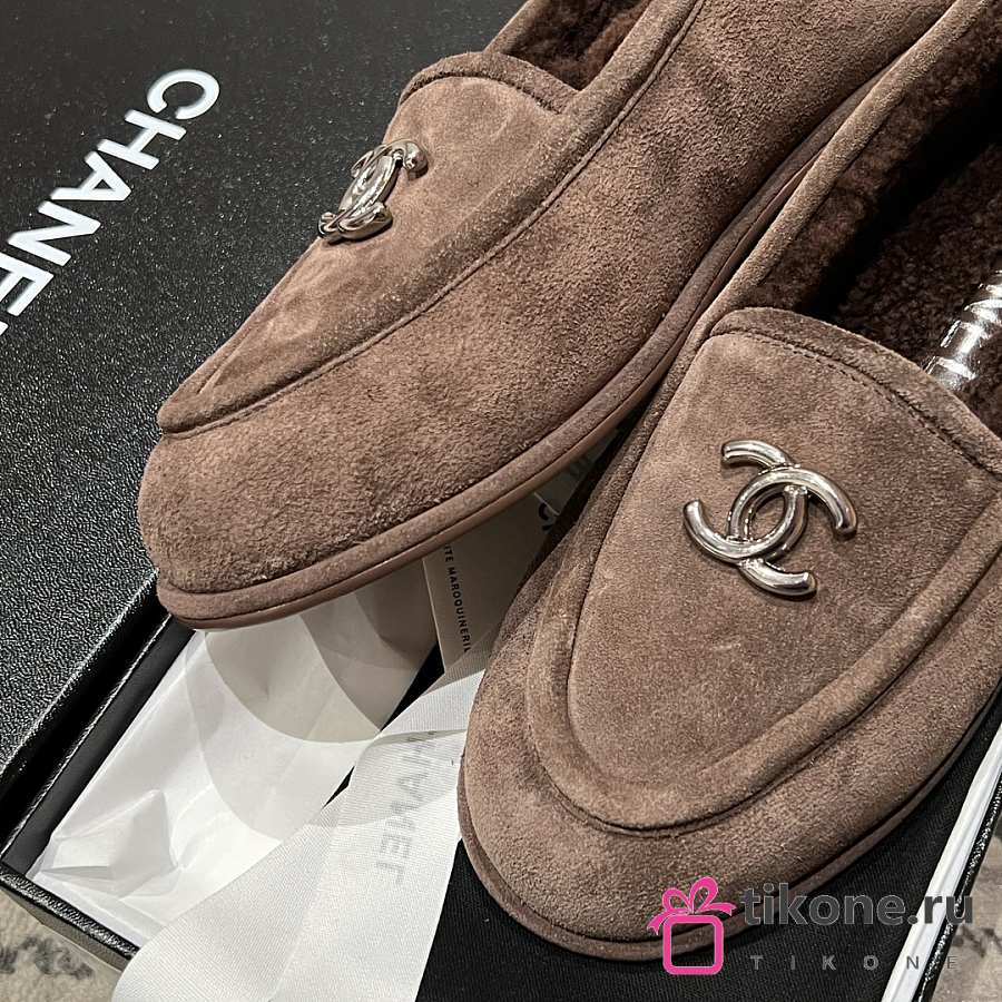 Chanel Moccasins Suede Silver Tone Metal Brown