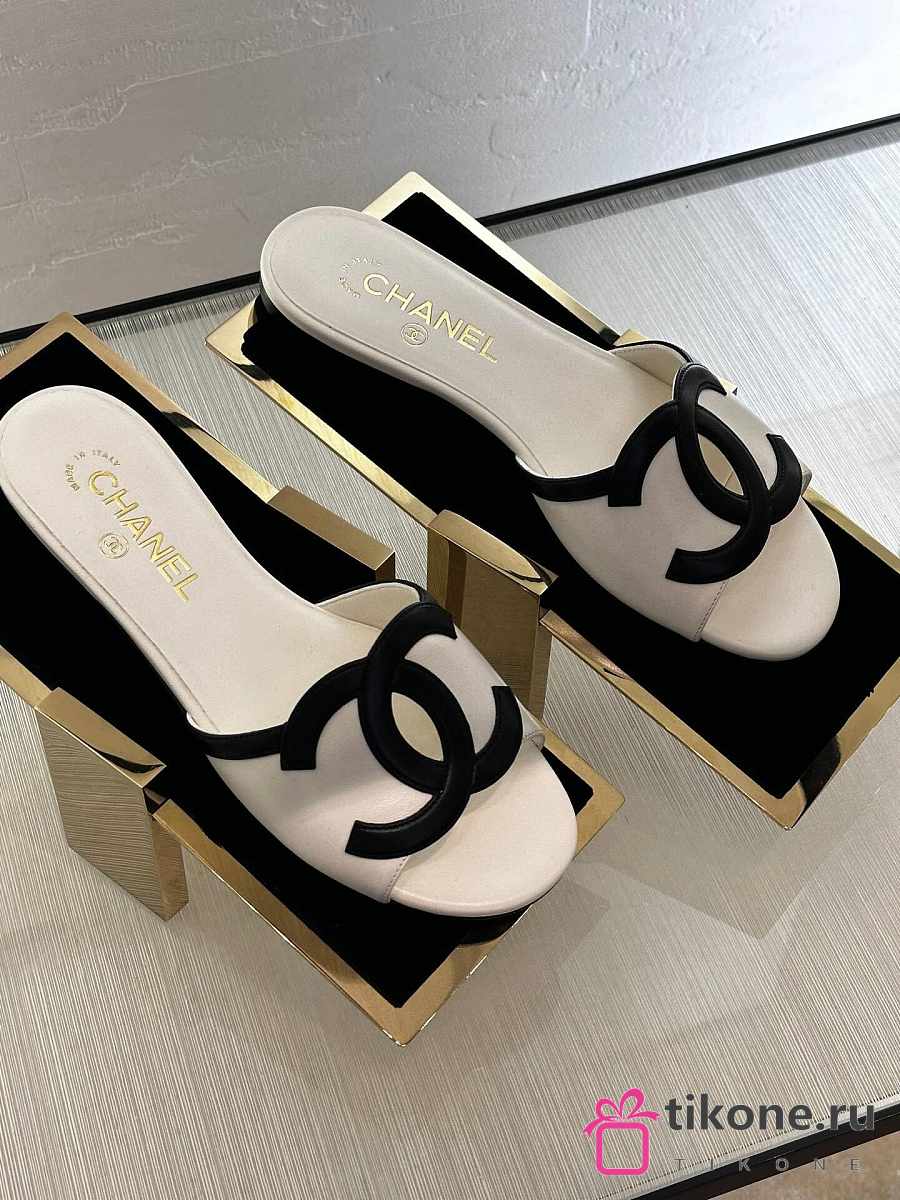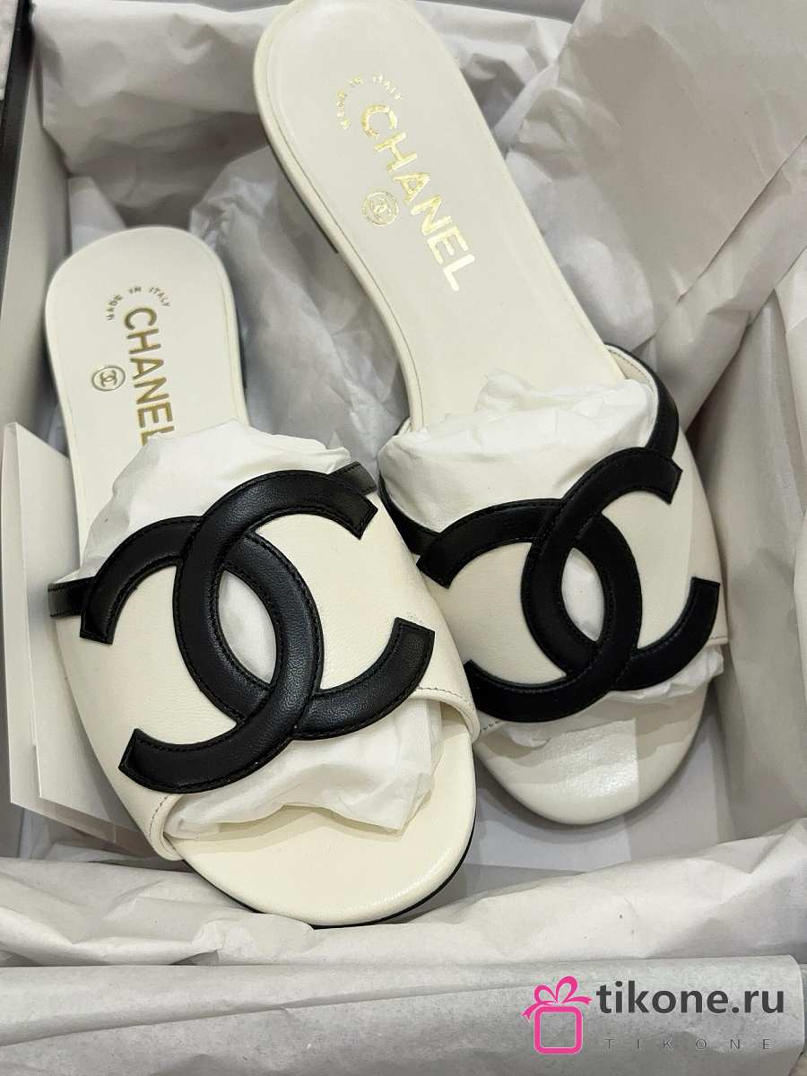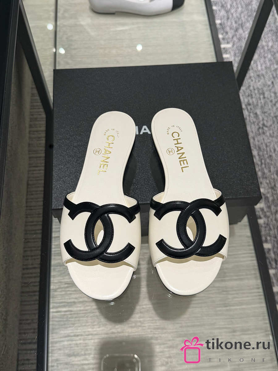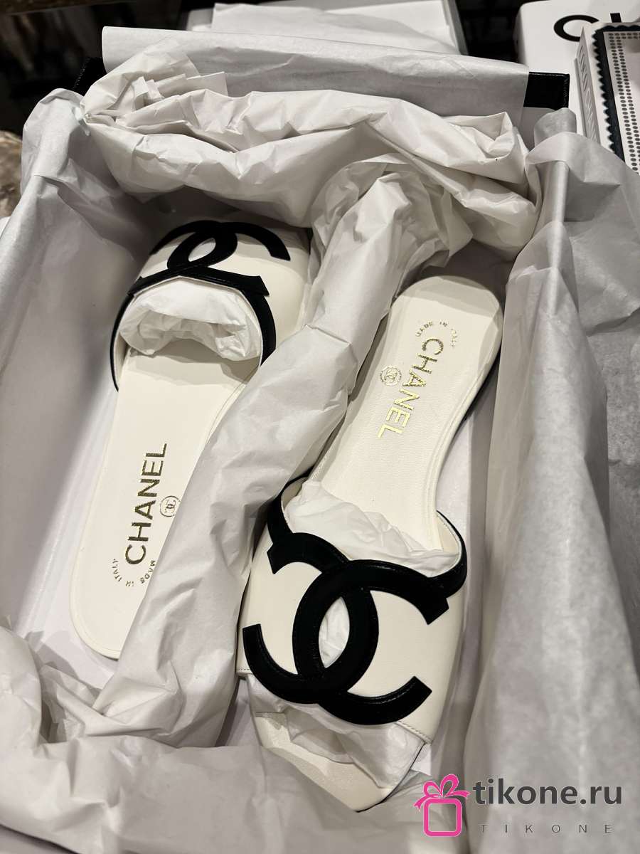 Chanel Mules Lambskin White & Black 45mm