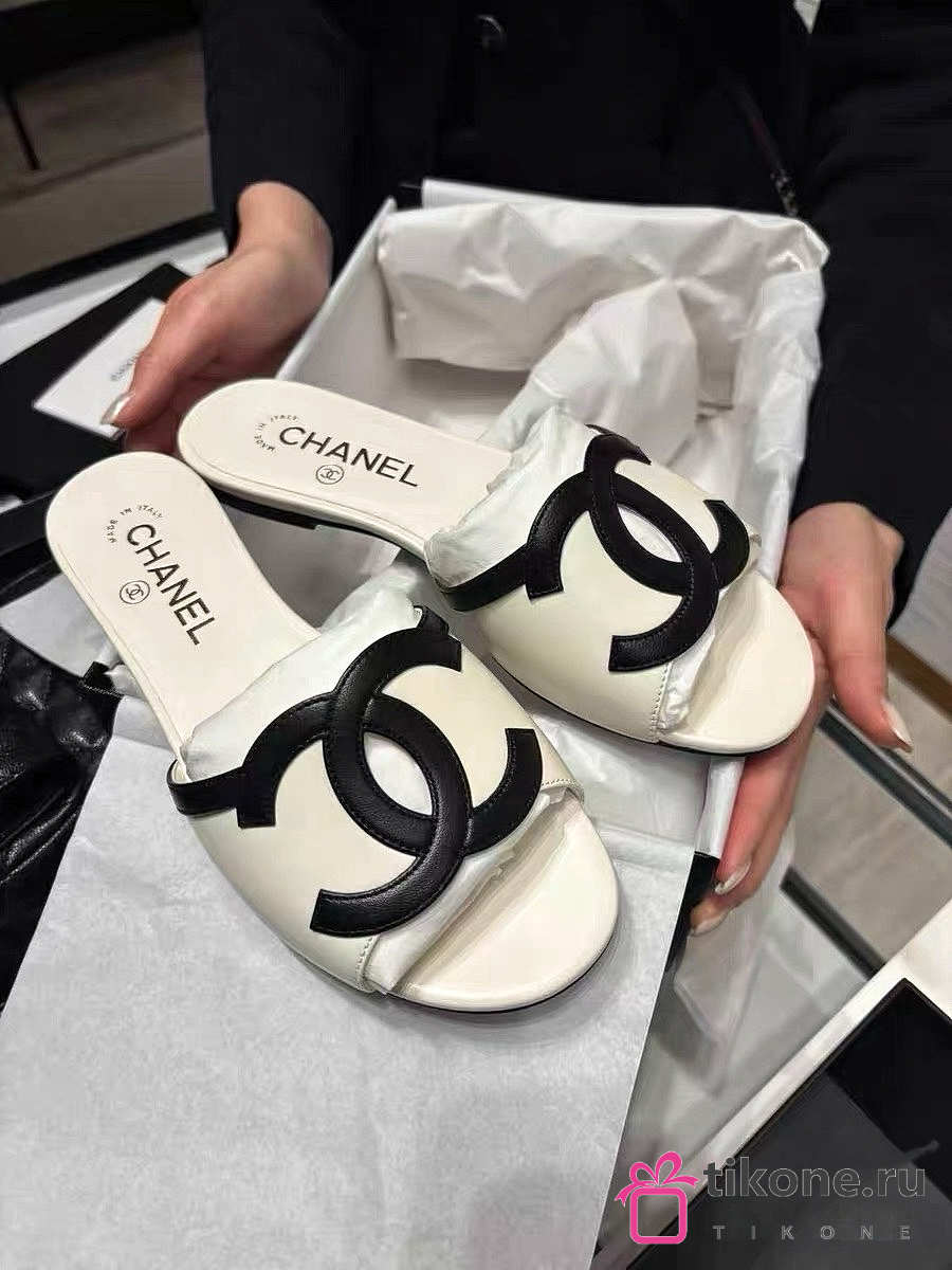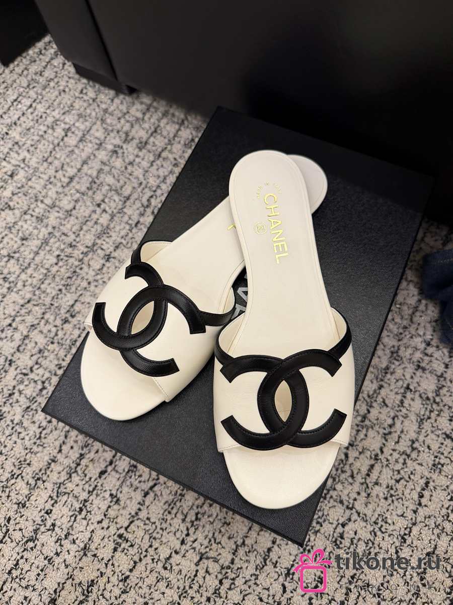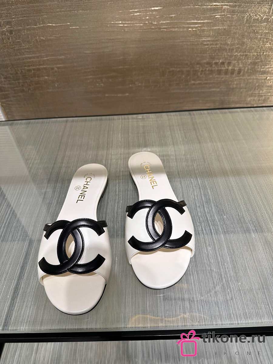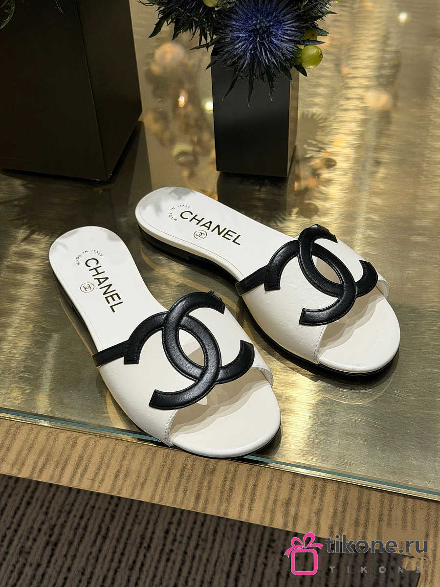 Chanel Mules Lambskin White & Black 45mm