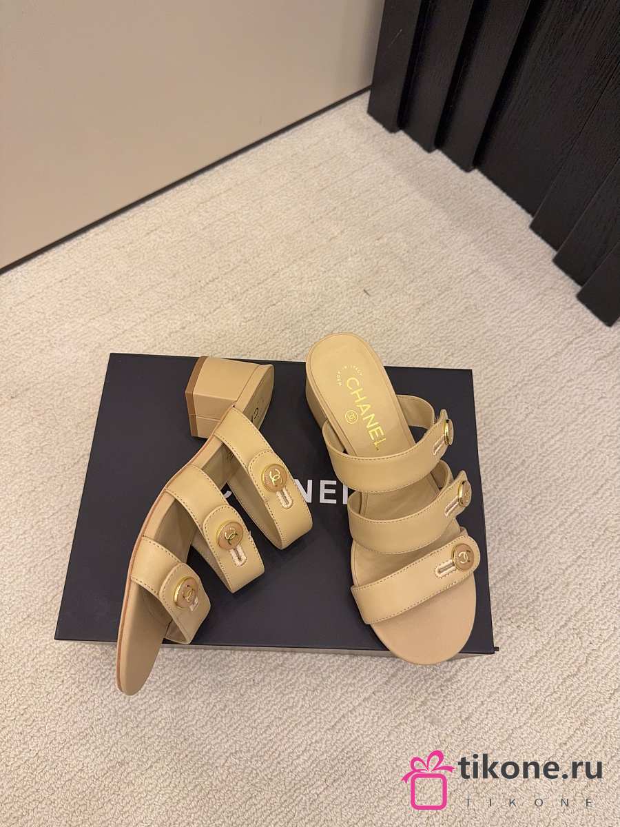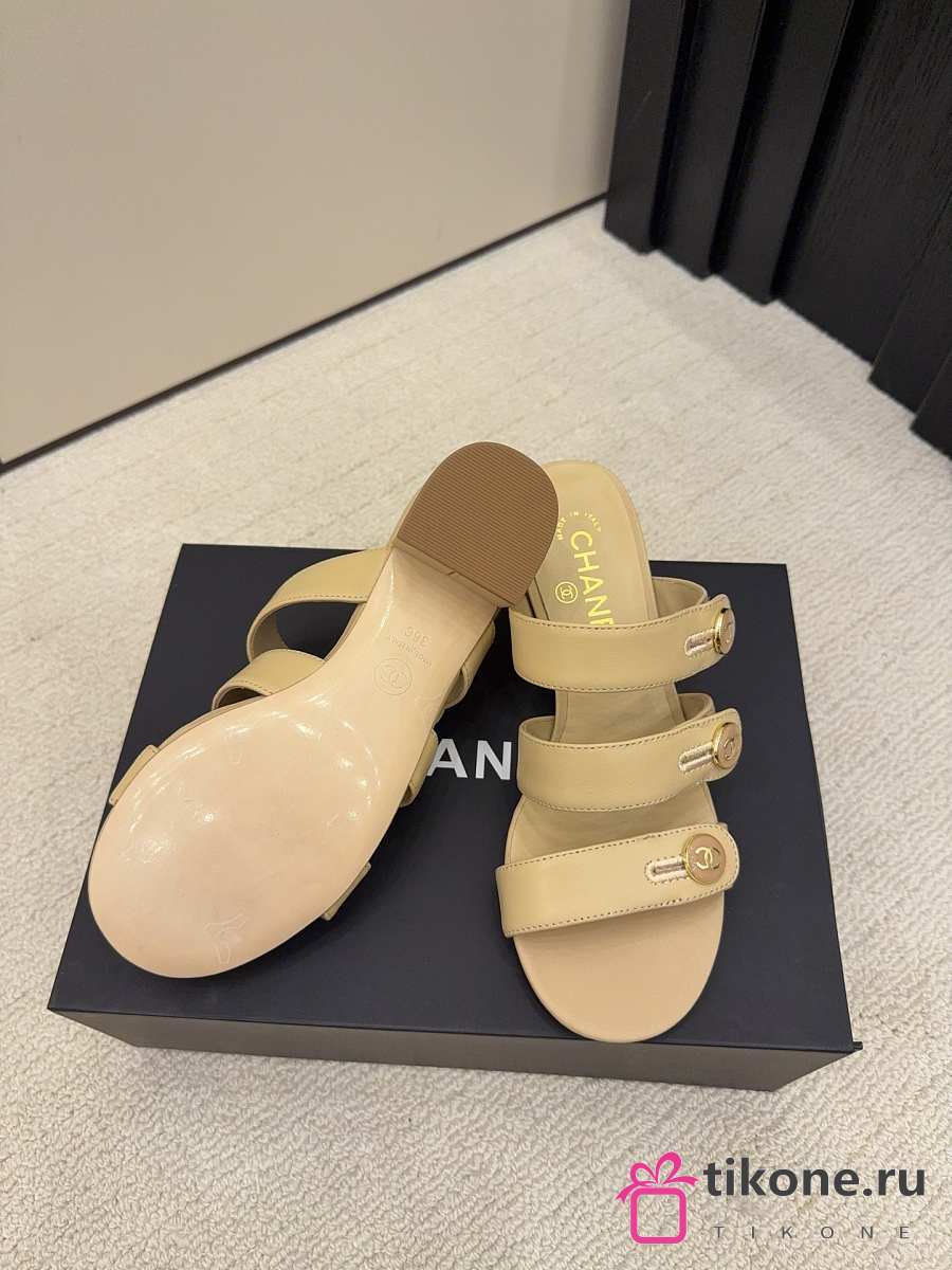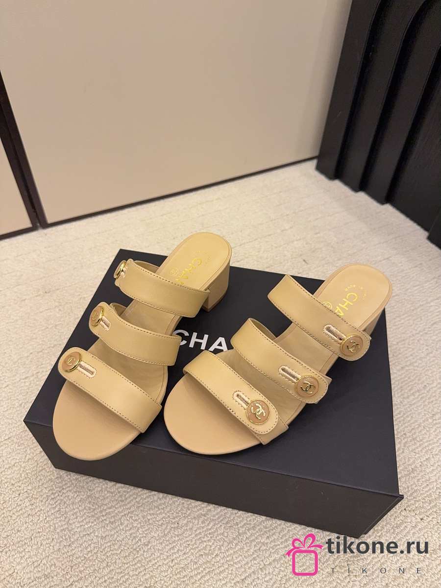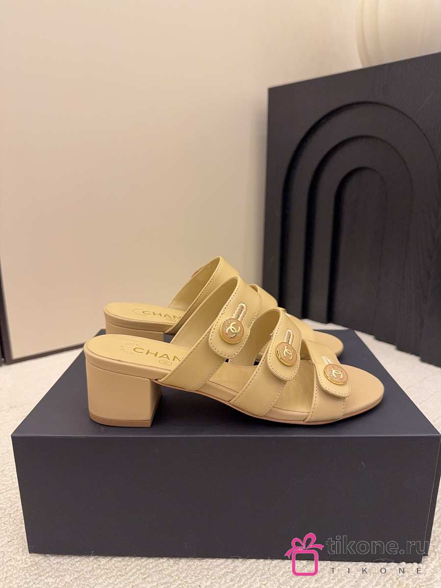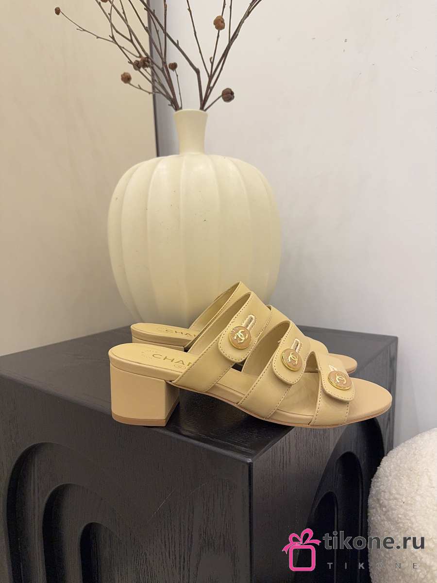 Chanel Mules Shiny Calfskin Beige 40mm