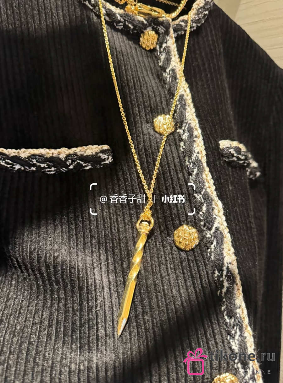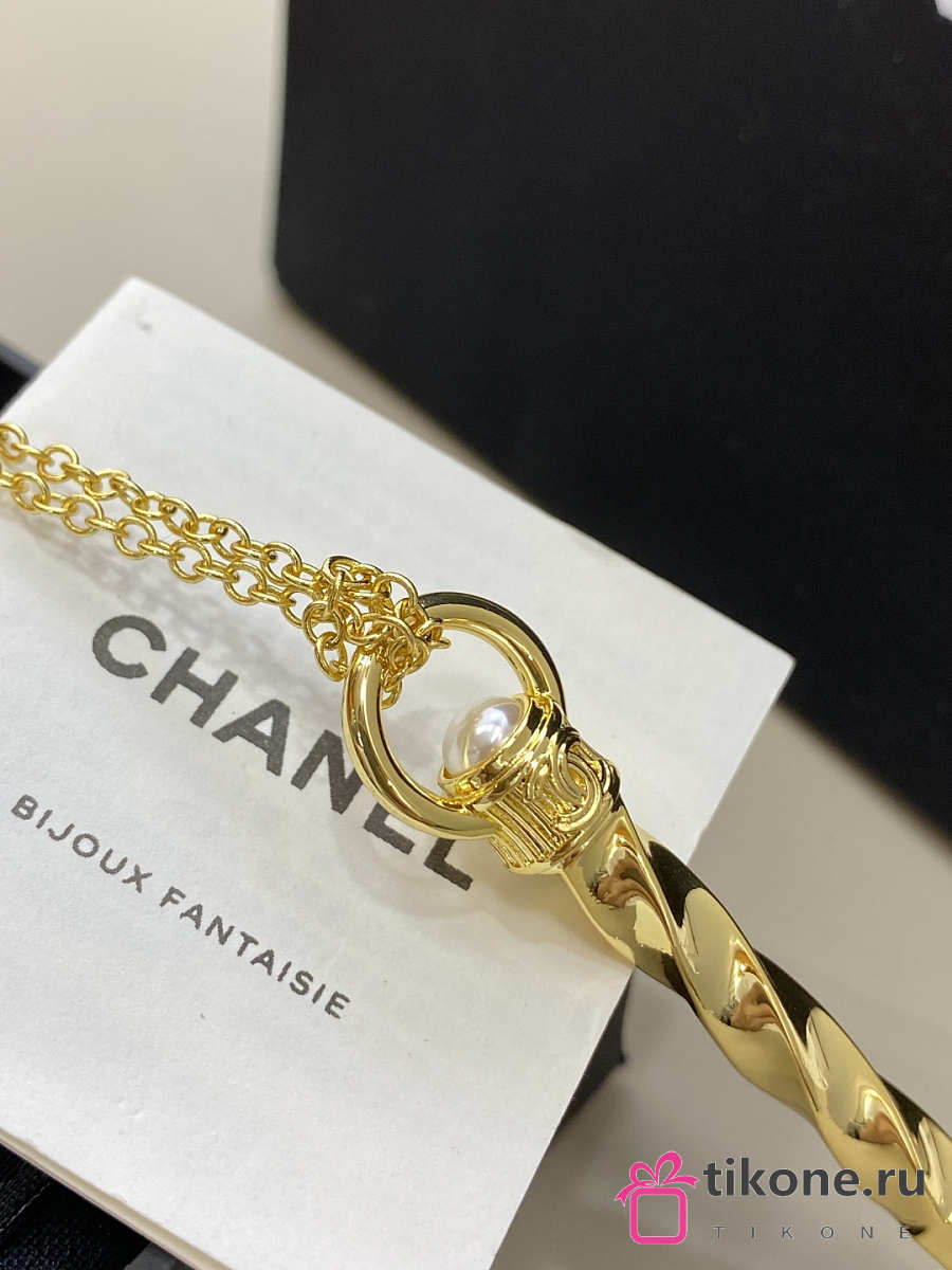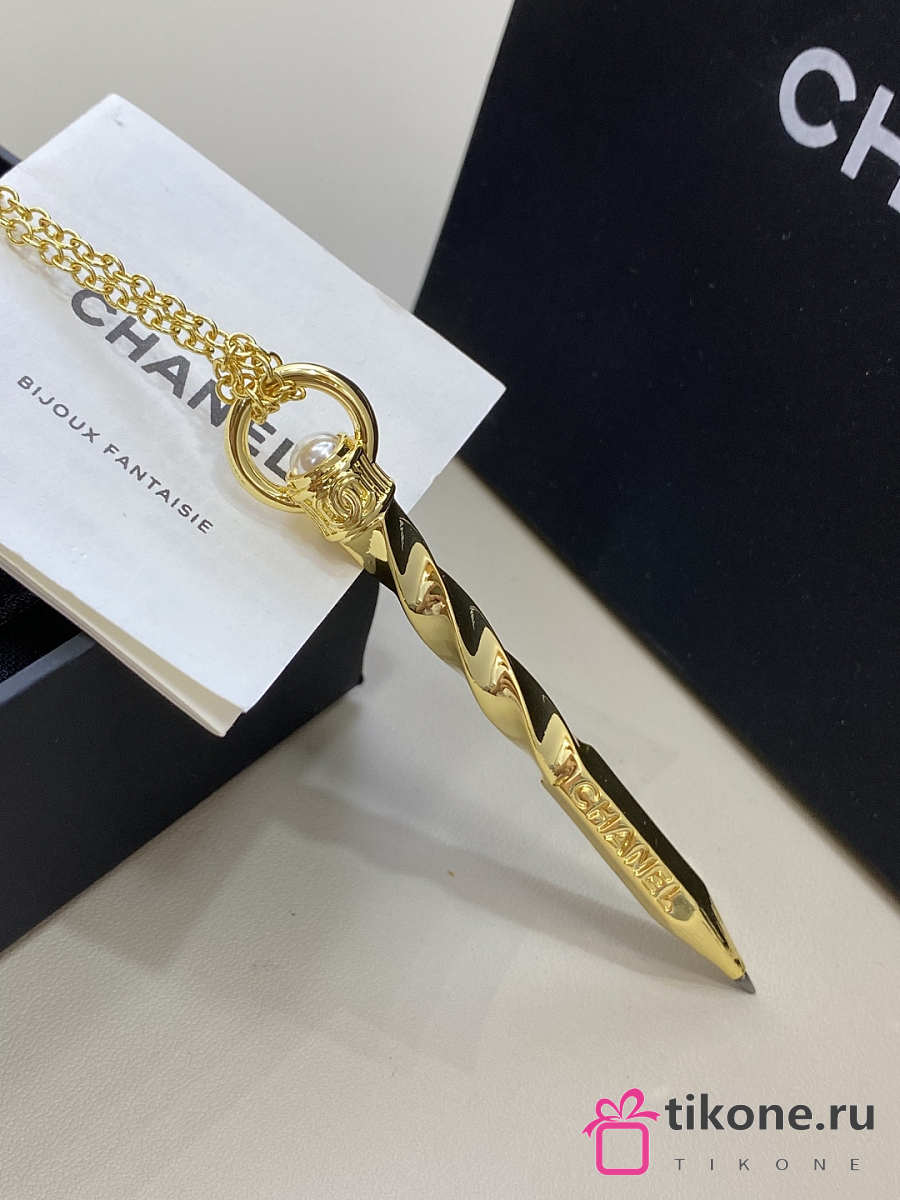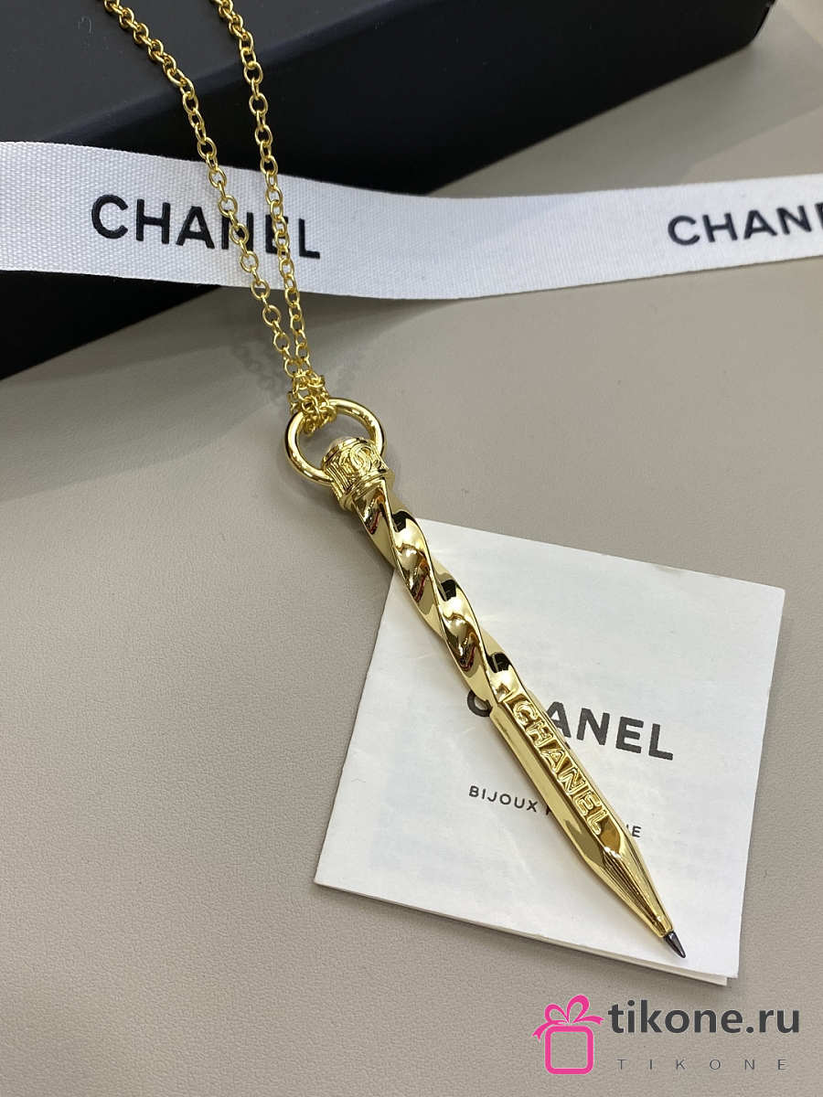 Chanel Necklace Gold with Twisted Engraved Pen Pendant