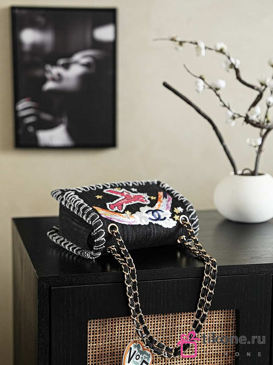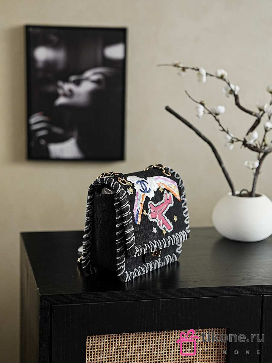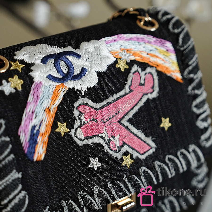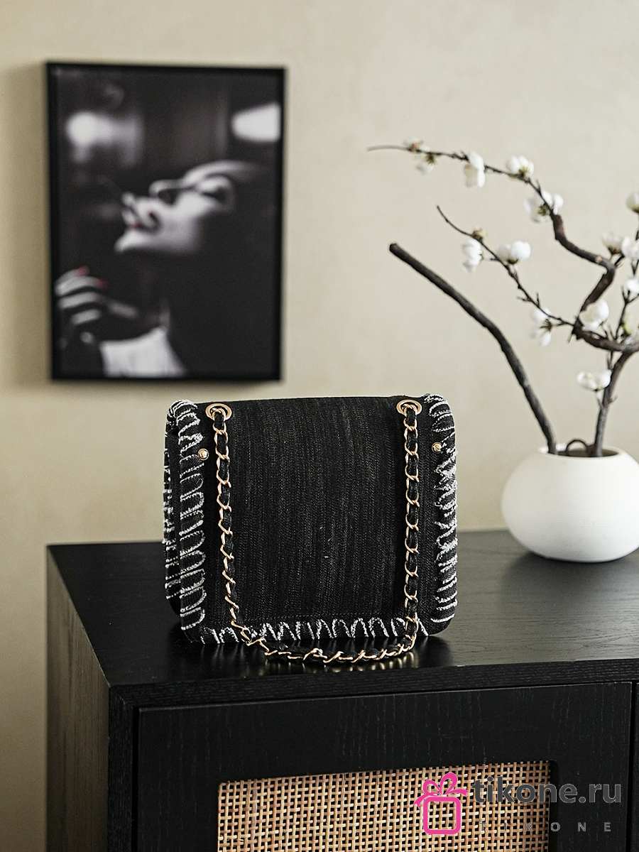 Chanel Flap Bag Quilted Gradient Sequins & Ruthenium Finish Metal Gold & Black - 21x14x8cm
