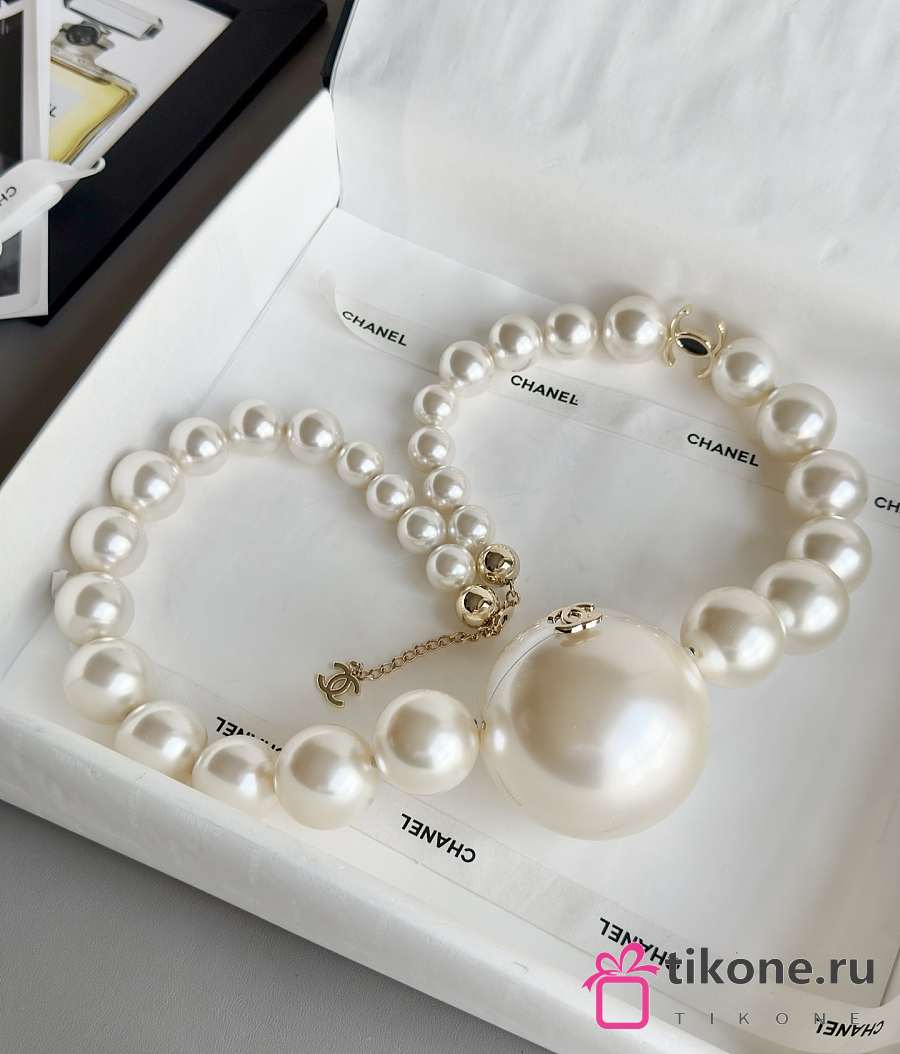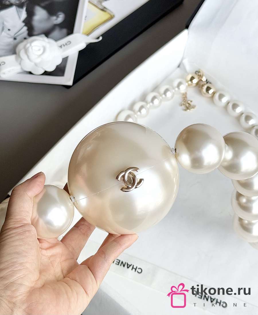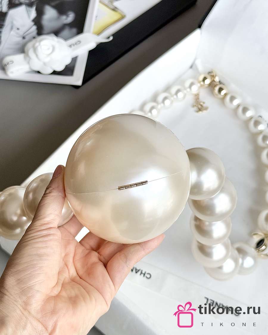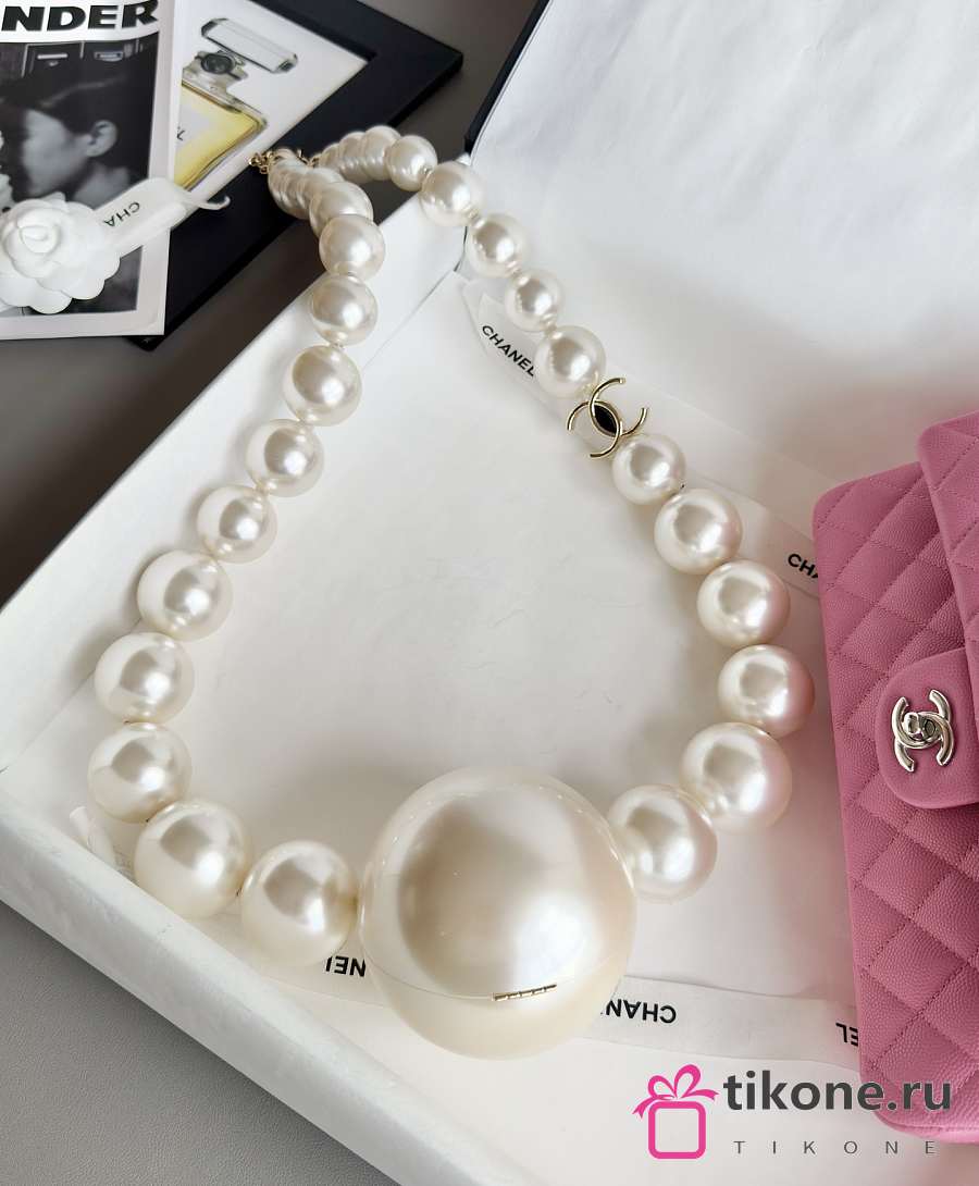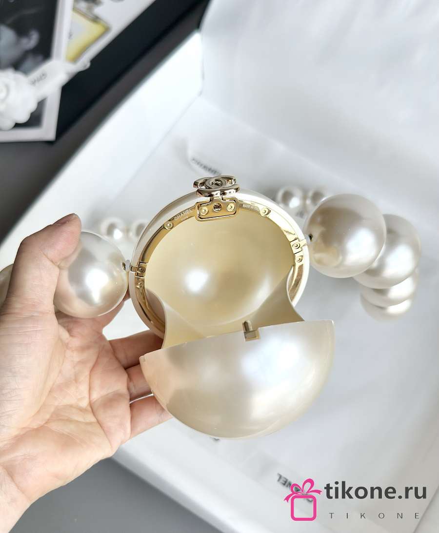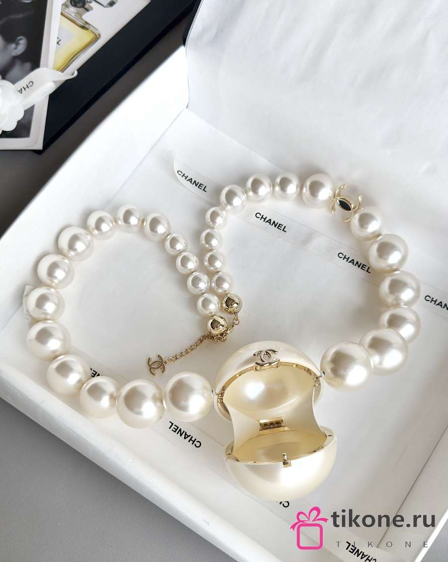 Chanel Pearl Necklace Minaudiere Plexi & Gold-Tone Metal Pearly White - 8.5cm
