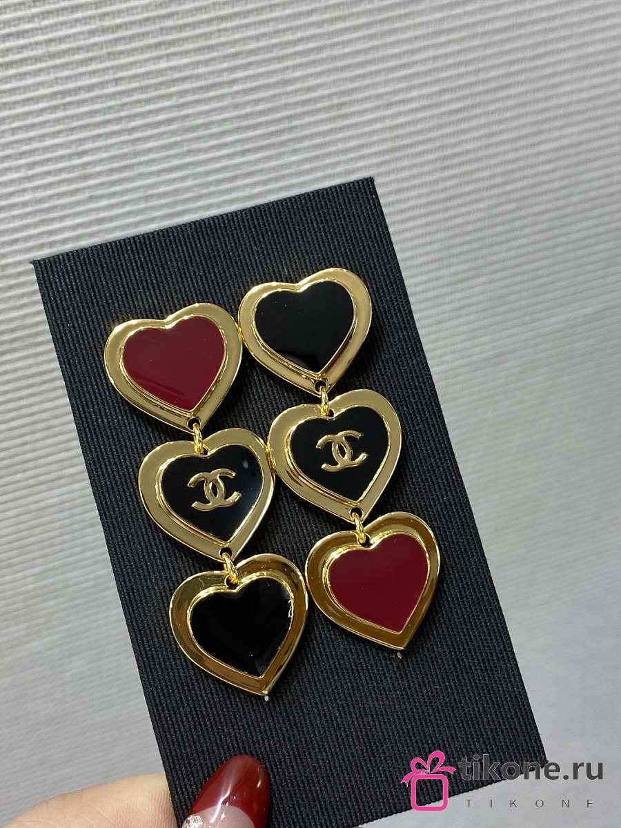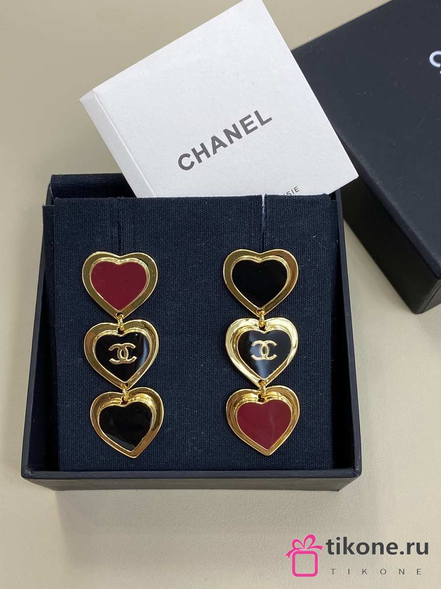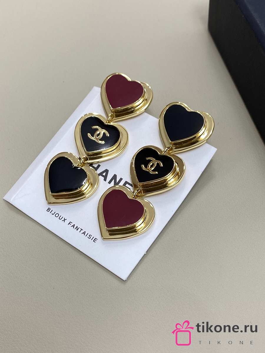 Chanel Pendant Earrings Golden Black & Dark Red Metal & Resin