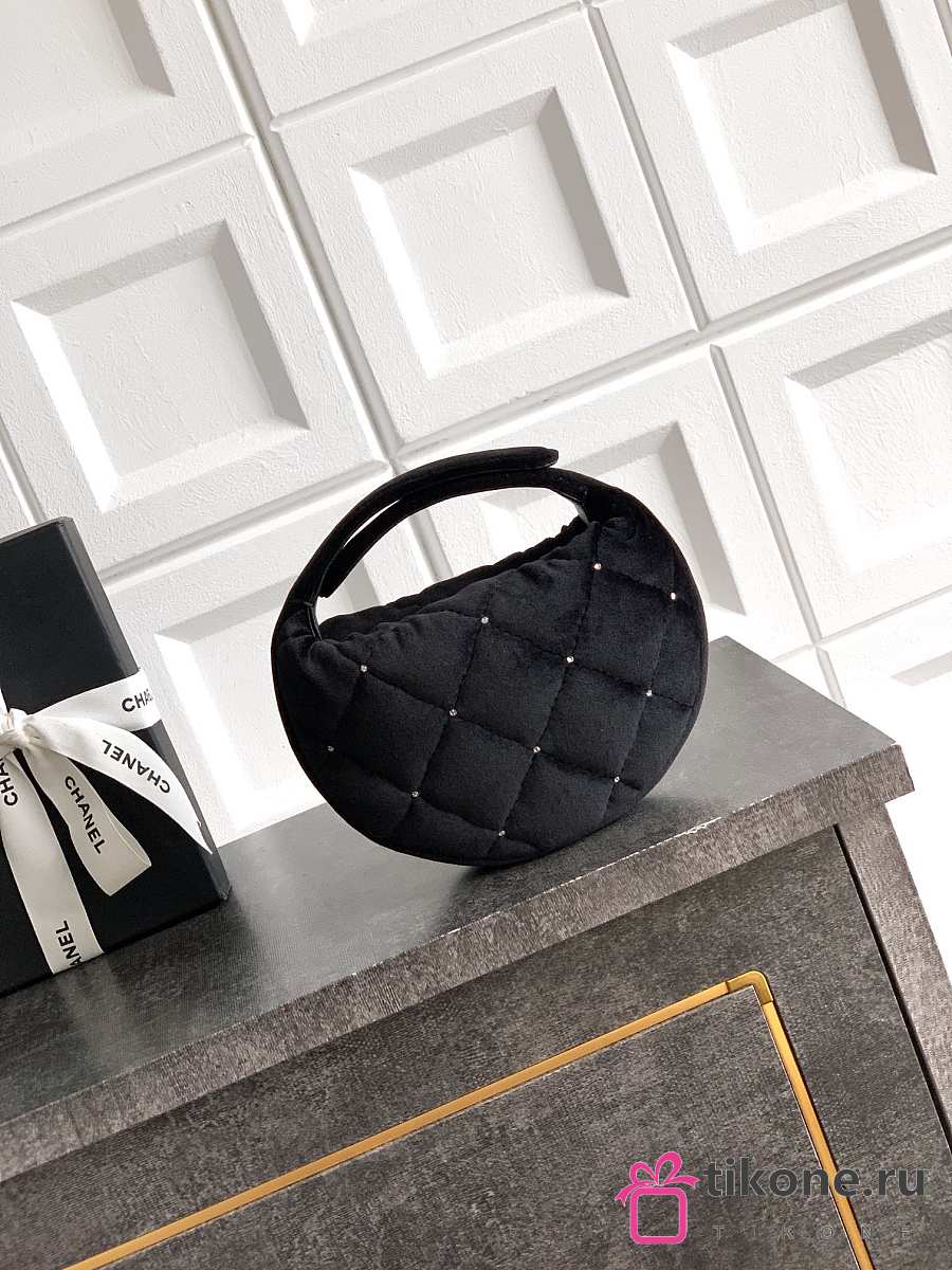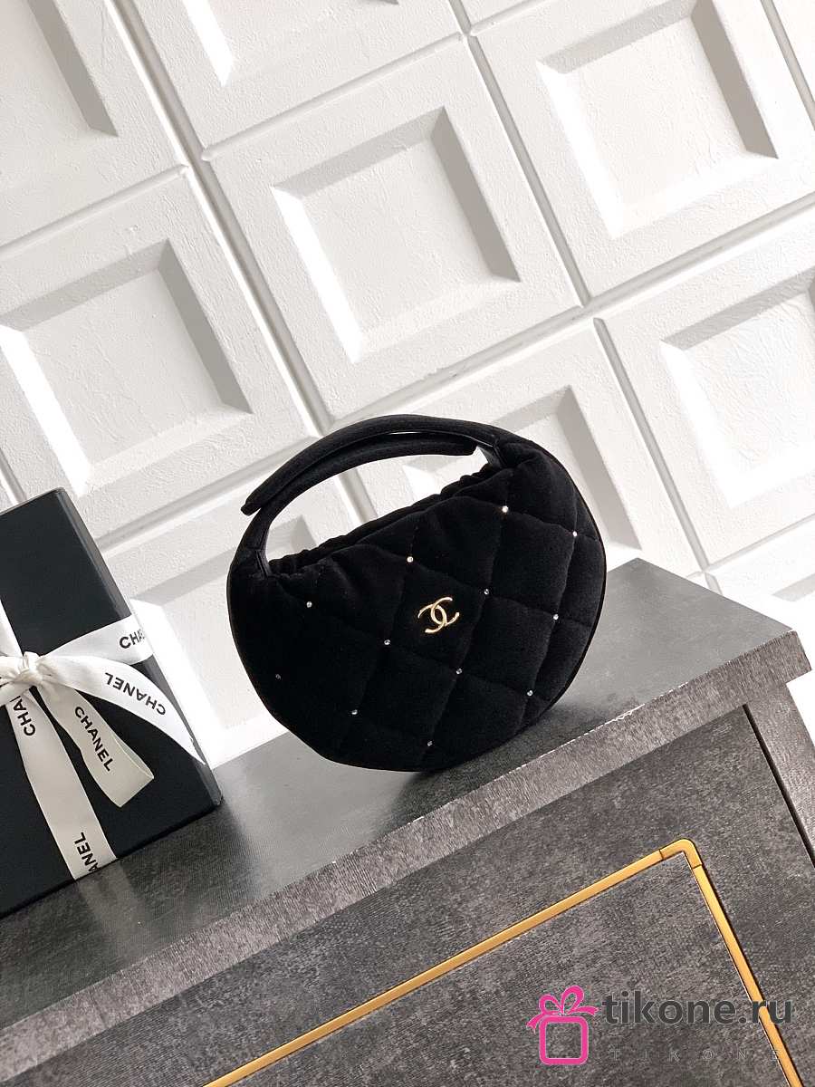 Chanel Pouch Velvet, Strass & Gold-Tone Metal Black - 11x19x8cm