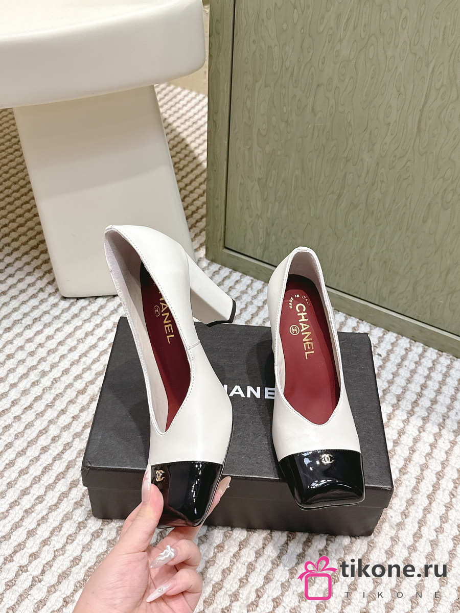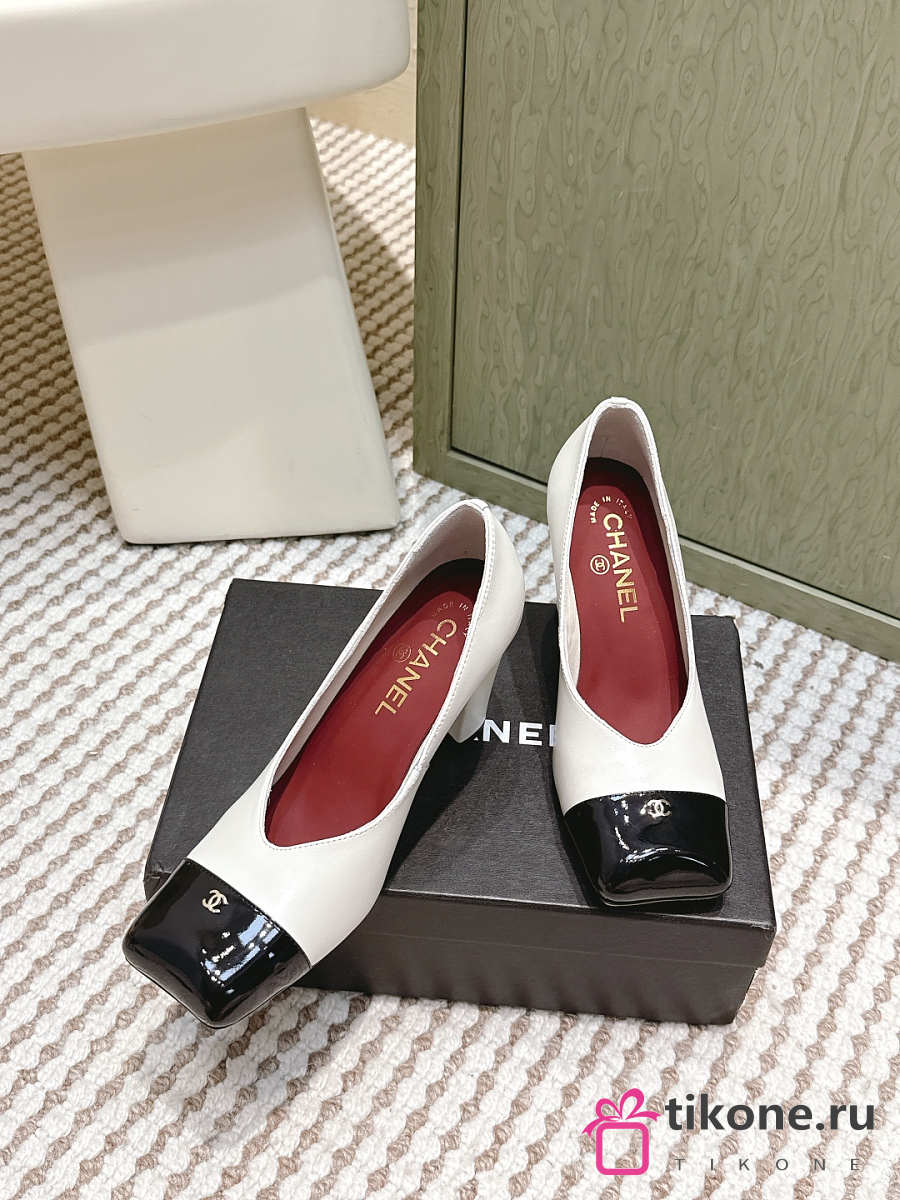 Chanel Pumps Lambskin & Patent Calfskin White & Black 90mm
