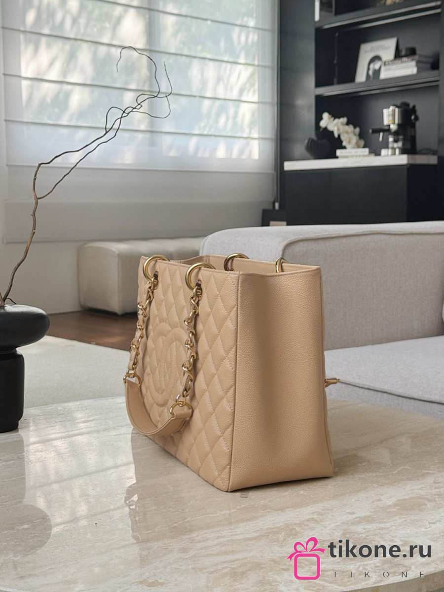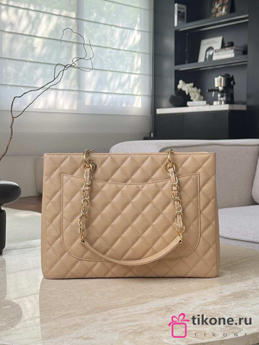 Chanel Quilted Caviar Leather Grand Shopper Tote Beige Gold Hardware - 33.5x24x12.5cm